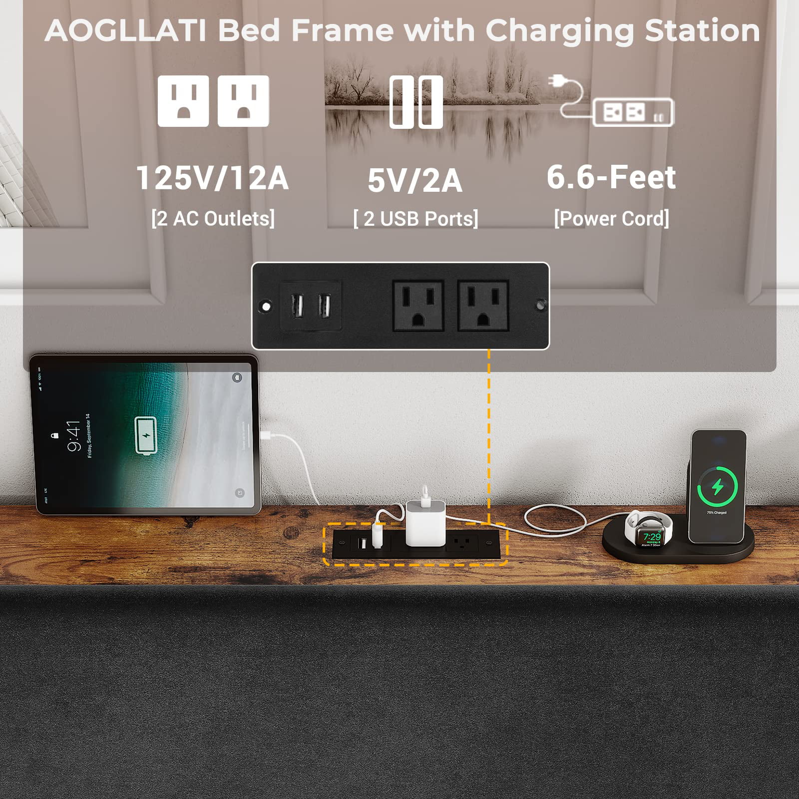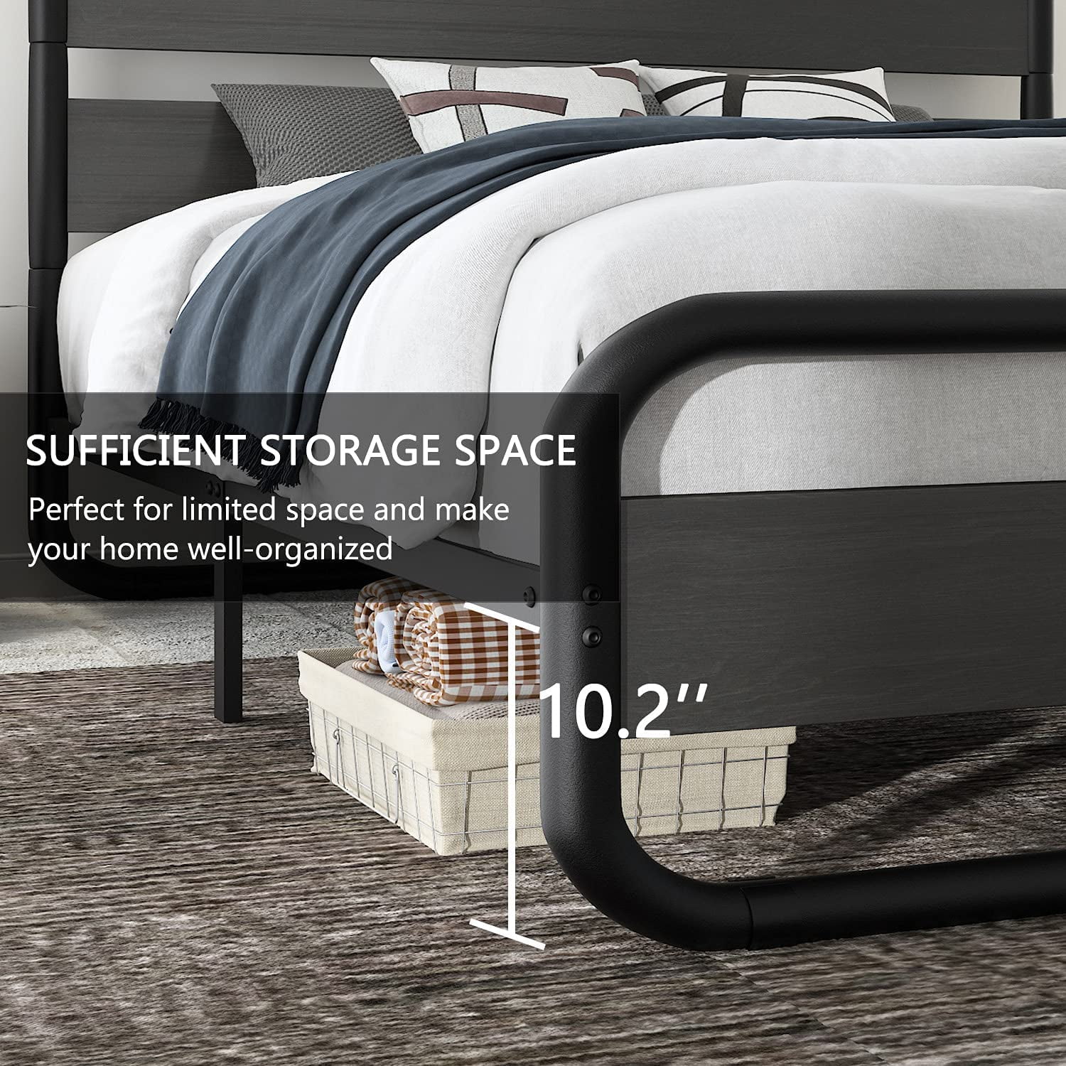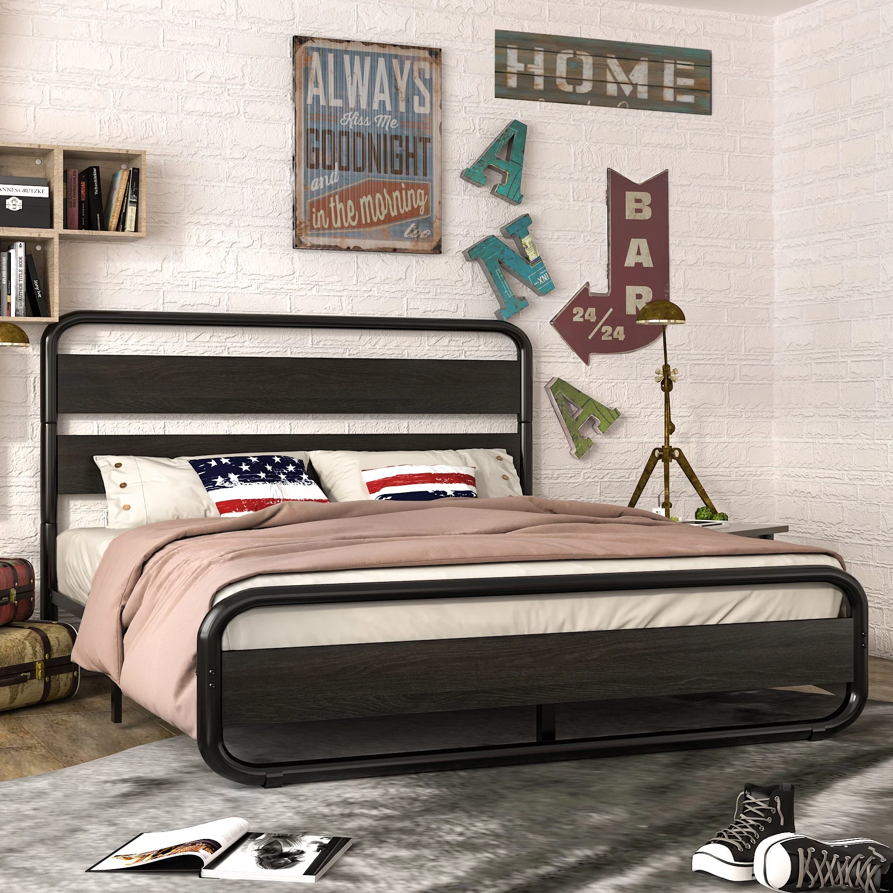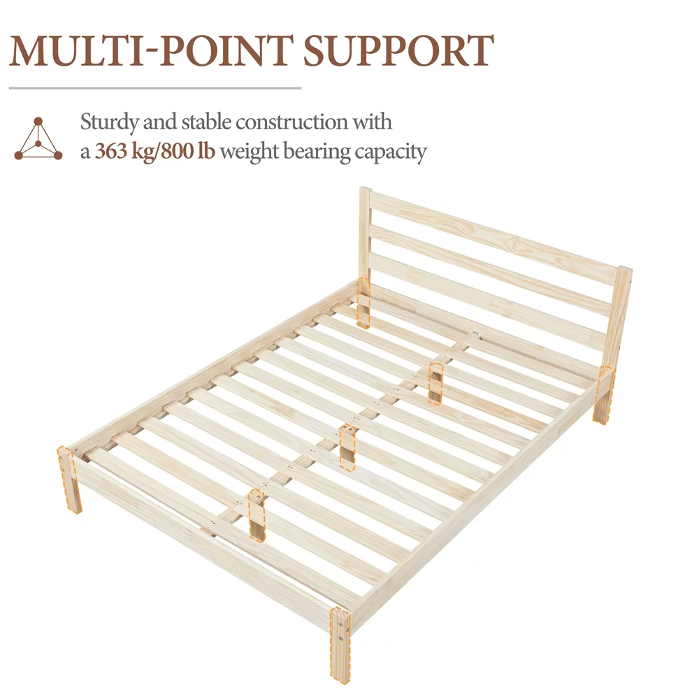 Amolife Queen Size Platform Bed Frame with Wood Headboard,Rustic Country Style Mattress Foundation,Light Brown