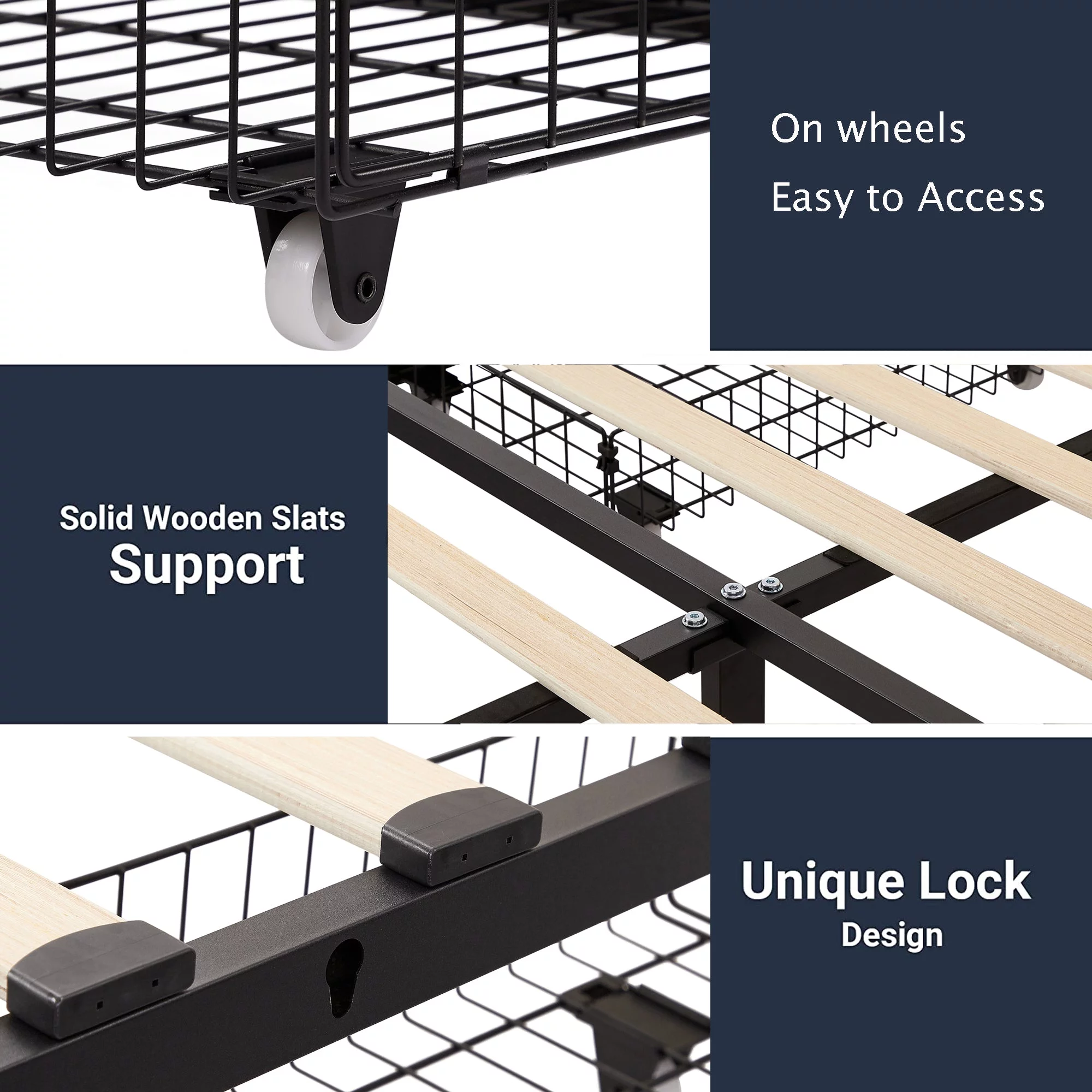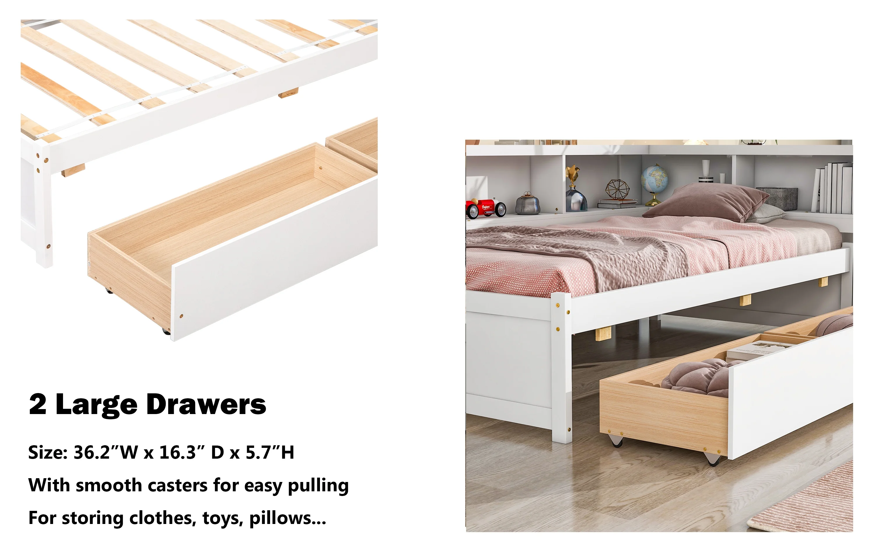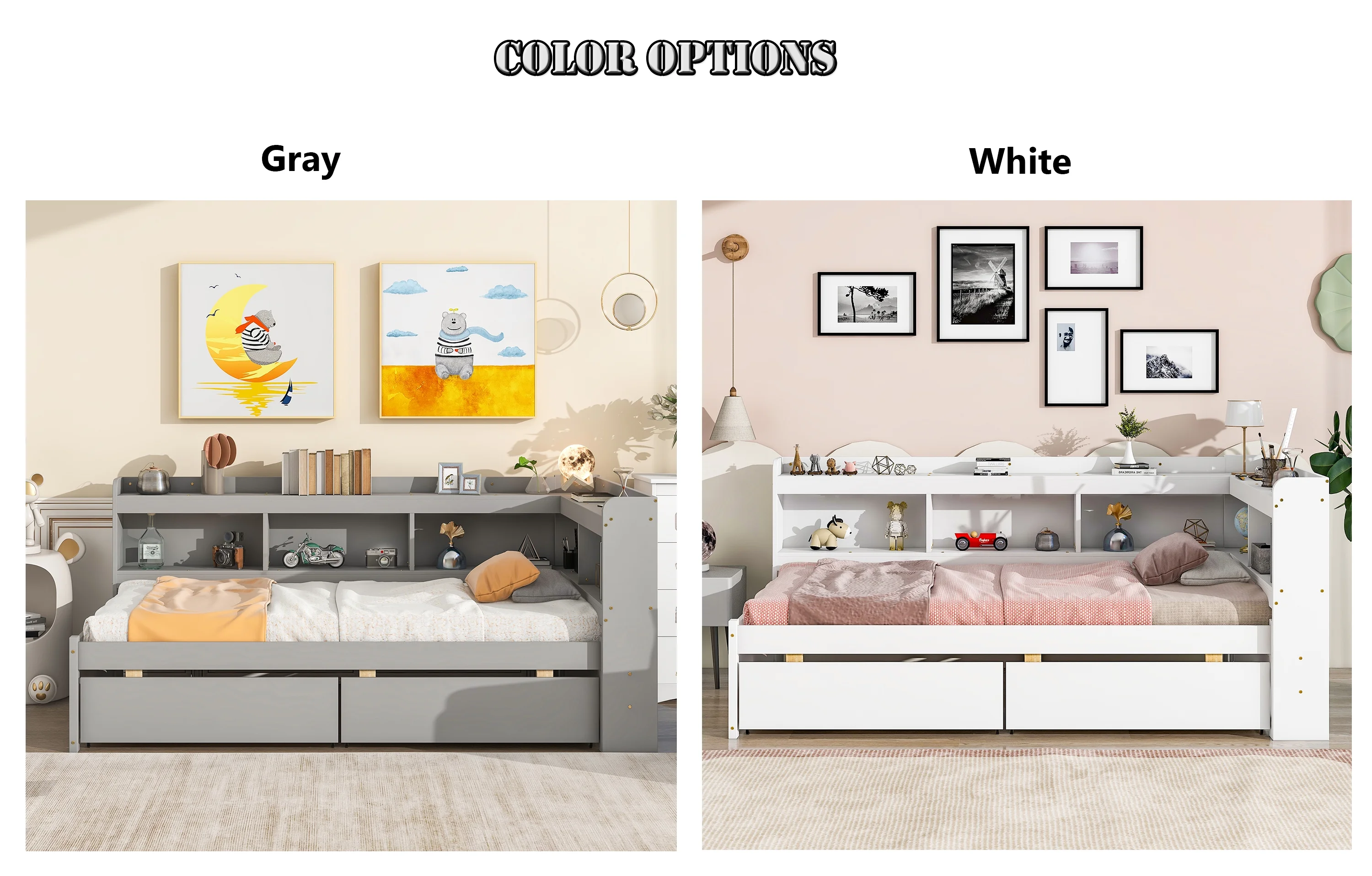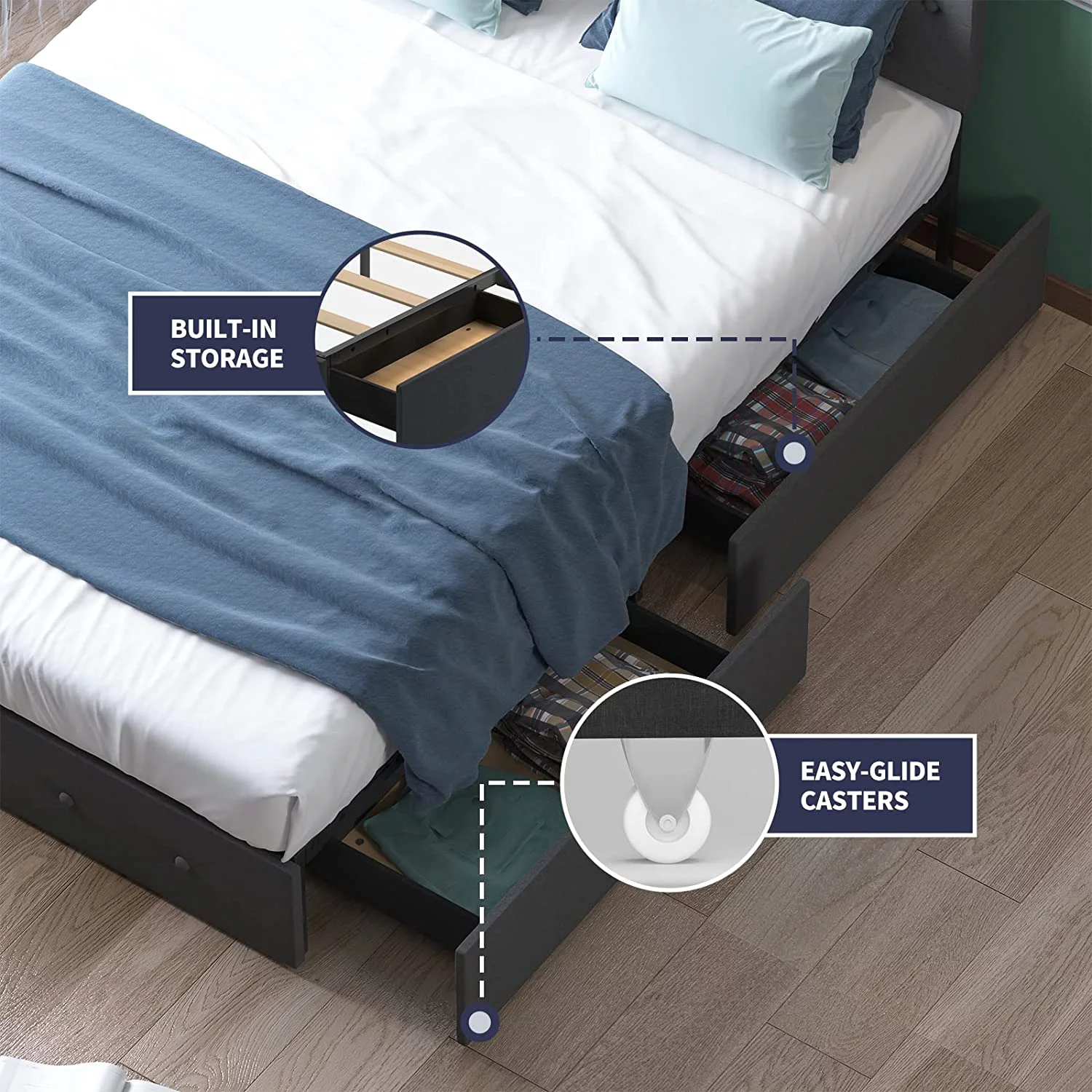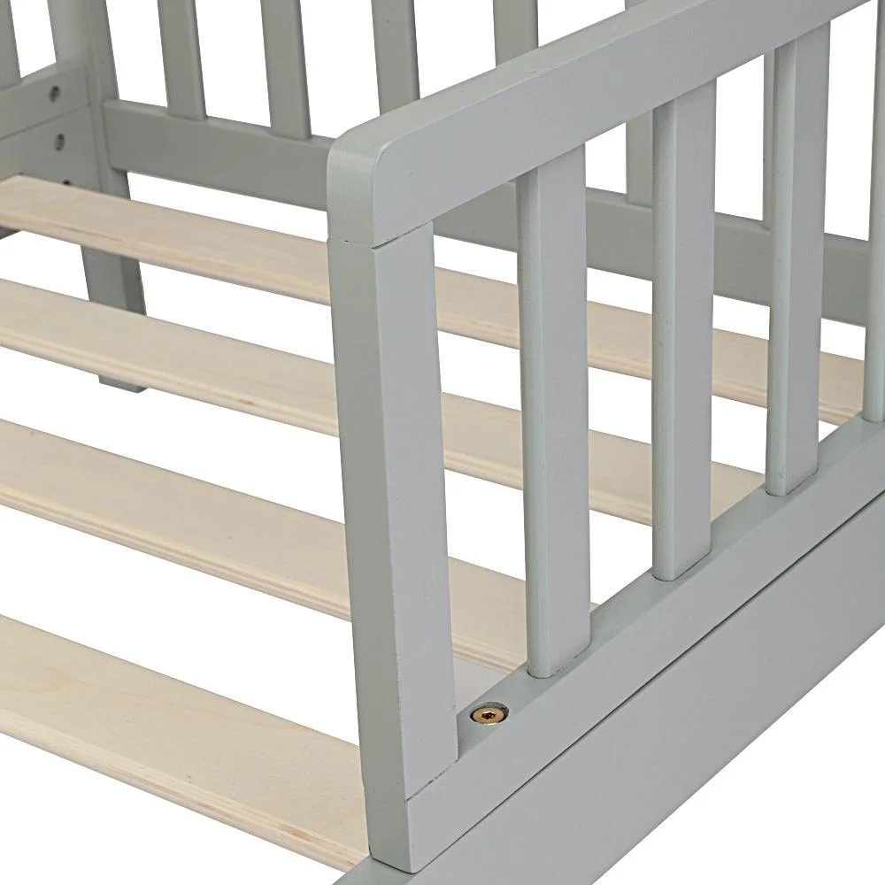 UBesGoo Toddler & Kids Bed Wood Bed Frame w/Two Side Guardrails Bedroom Furniture Gray