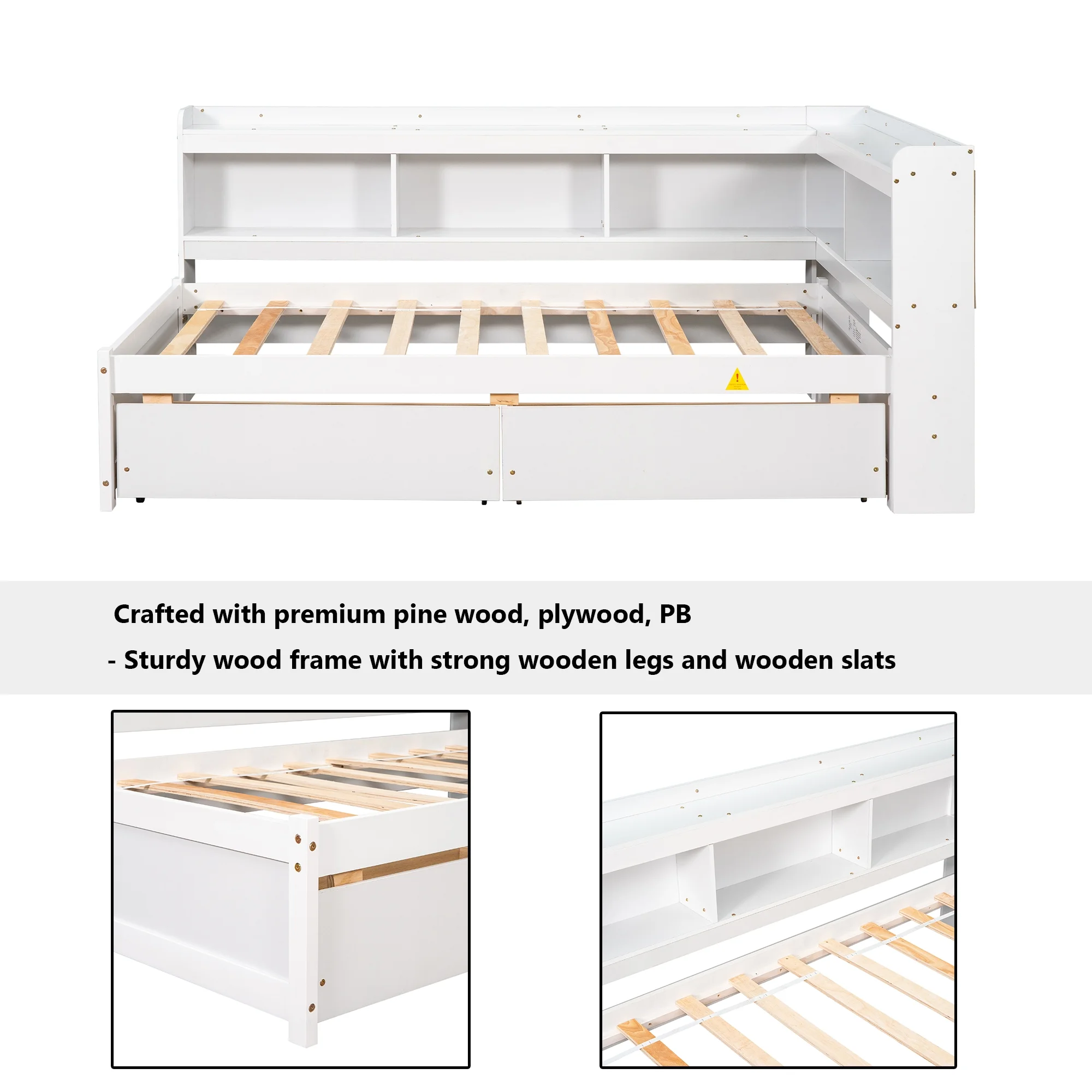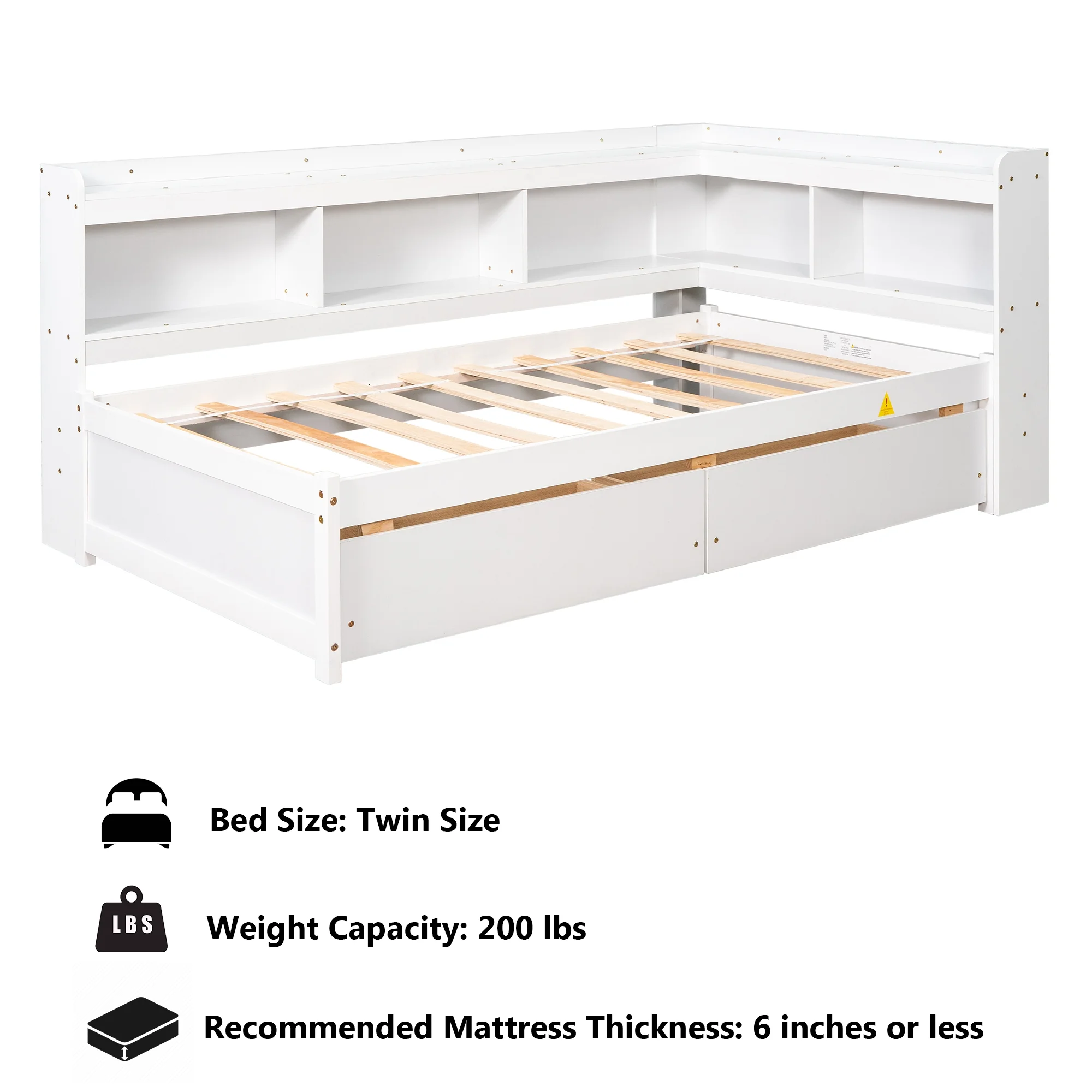 EUROCO Wood Twin Size Platform Bed for Kids, Canopy Tent Bed for Living Room, White