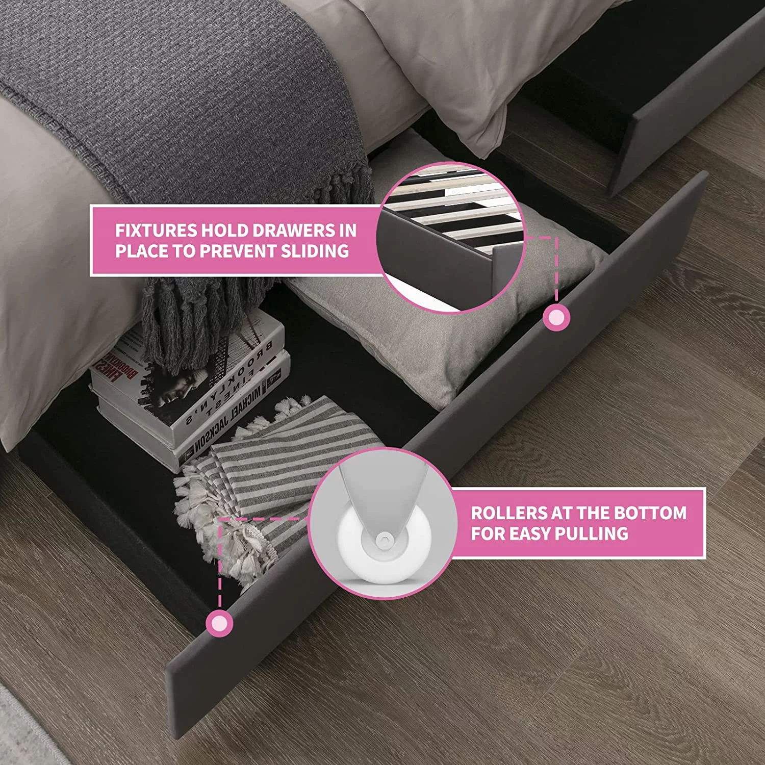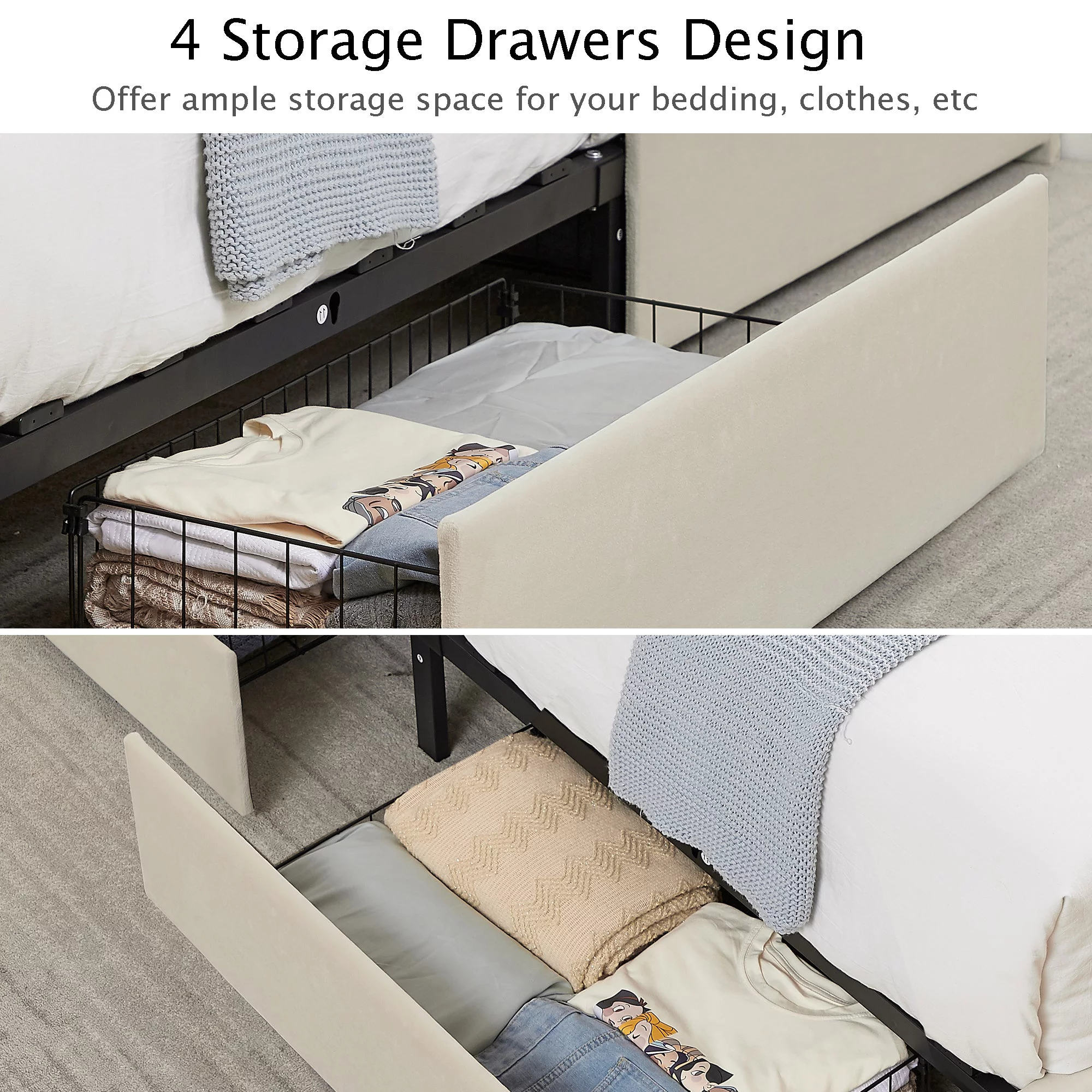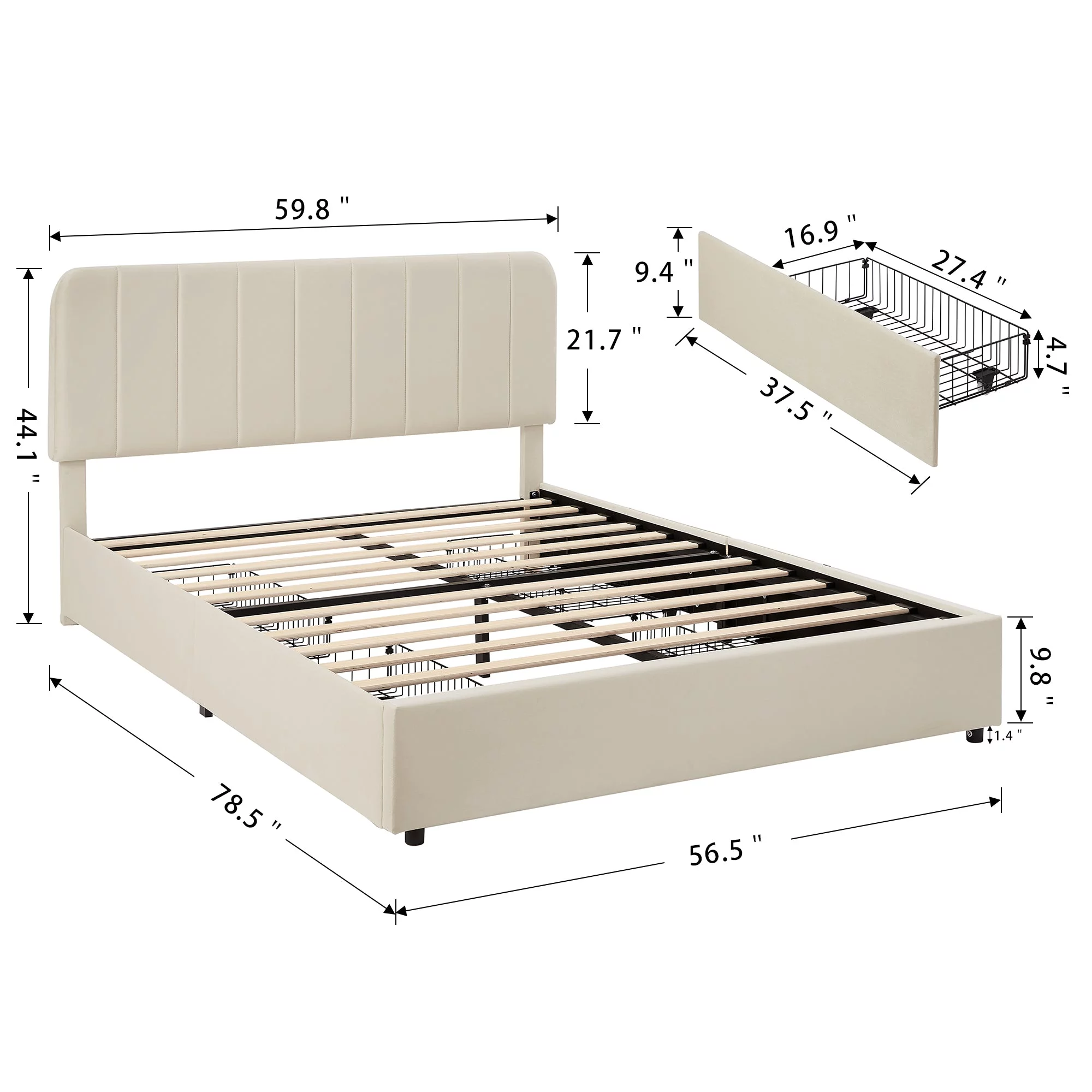 Modern 6pc King PU Upholstered LED Headboard Bed Storage Bedroom Wood Furniture Set Beige Finish