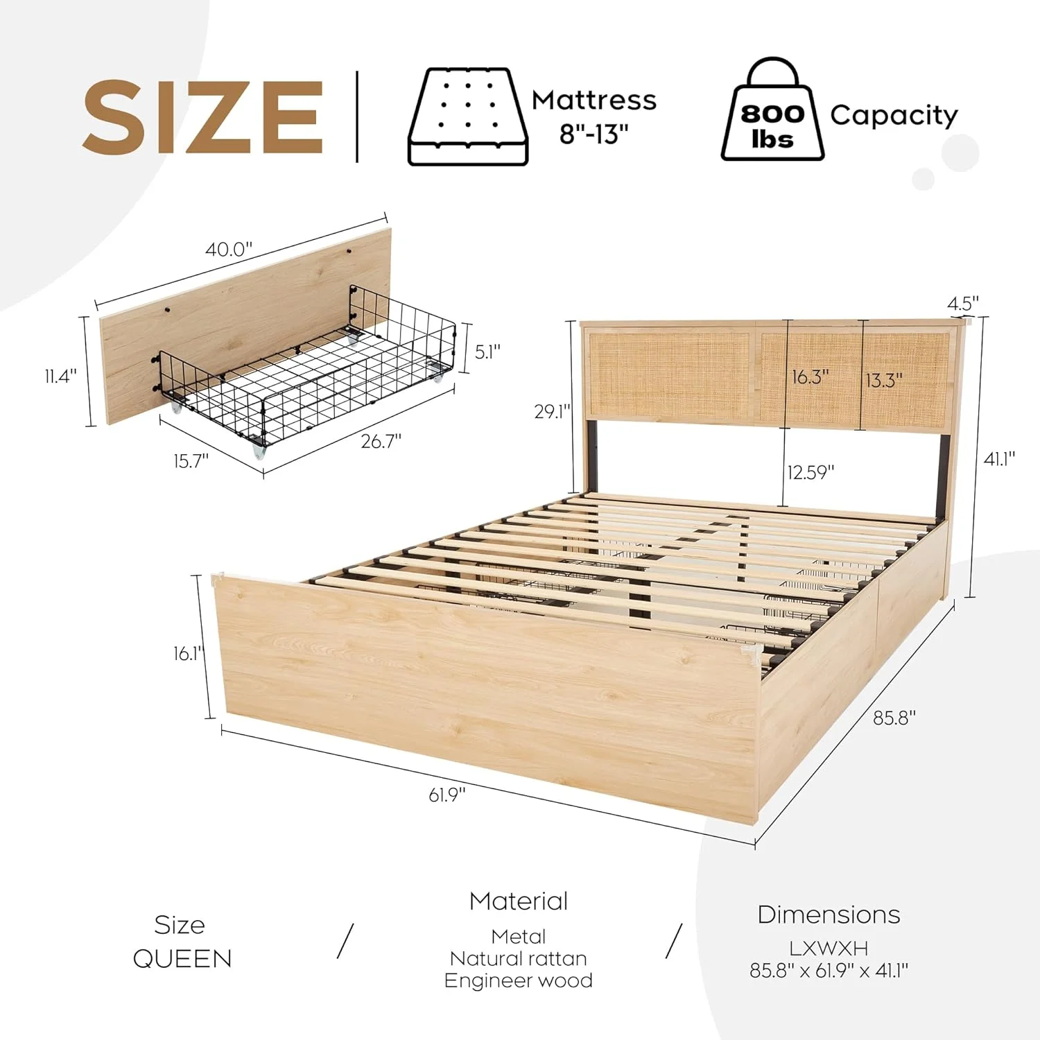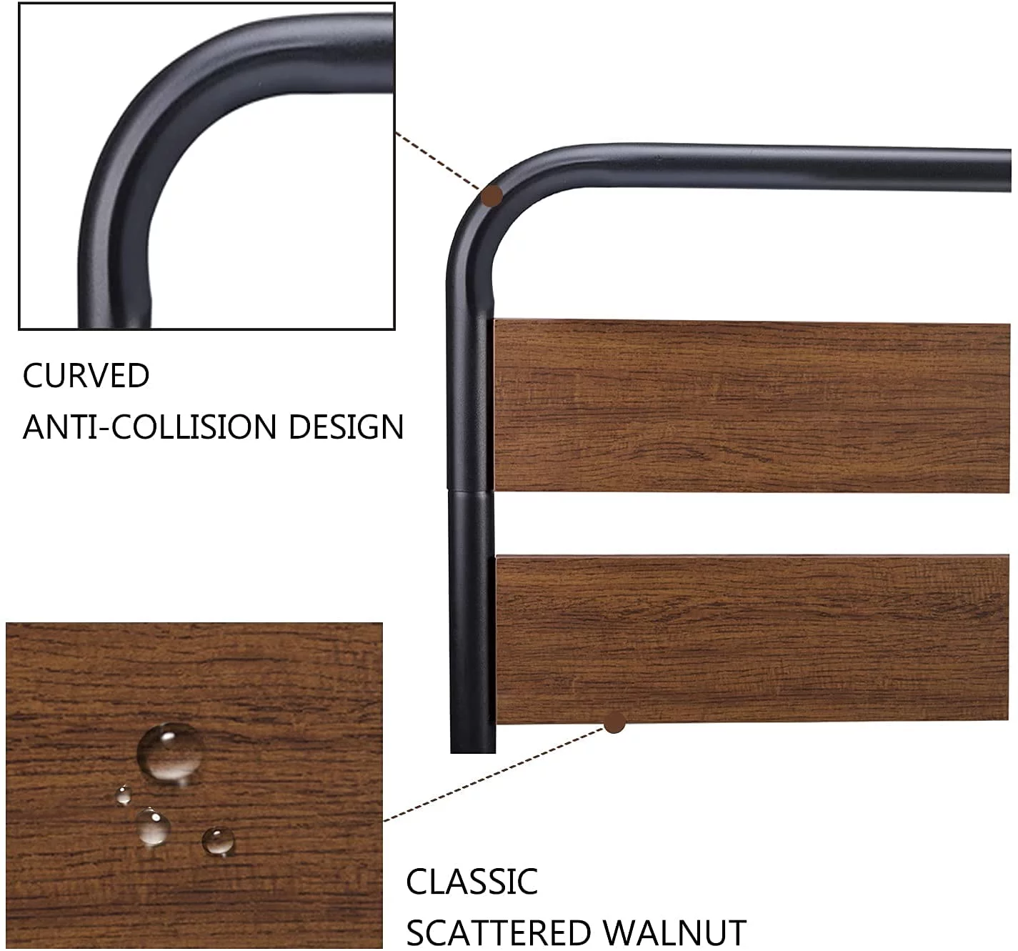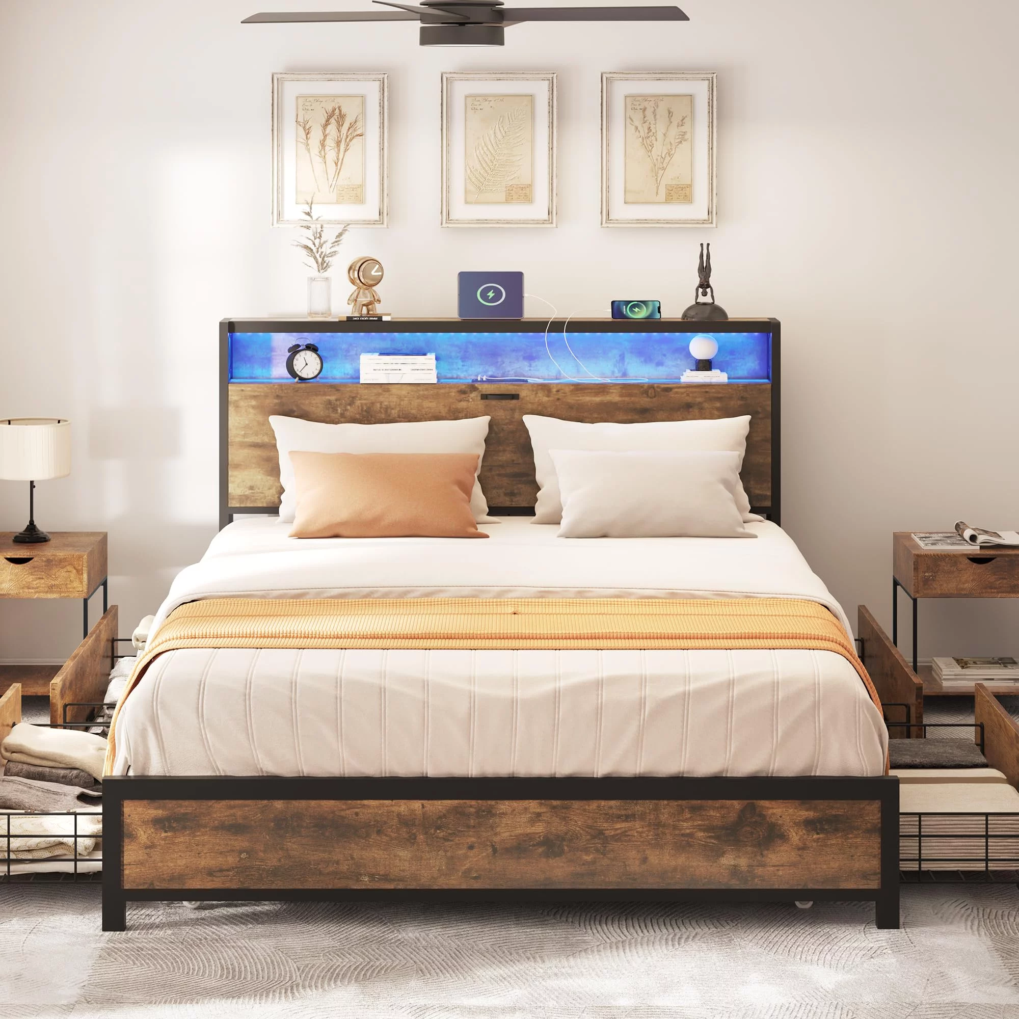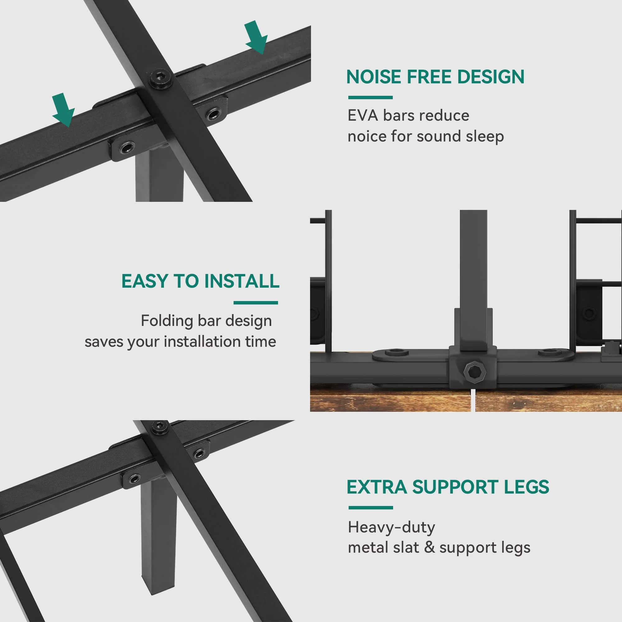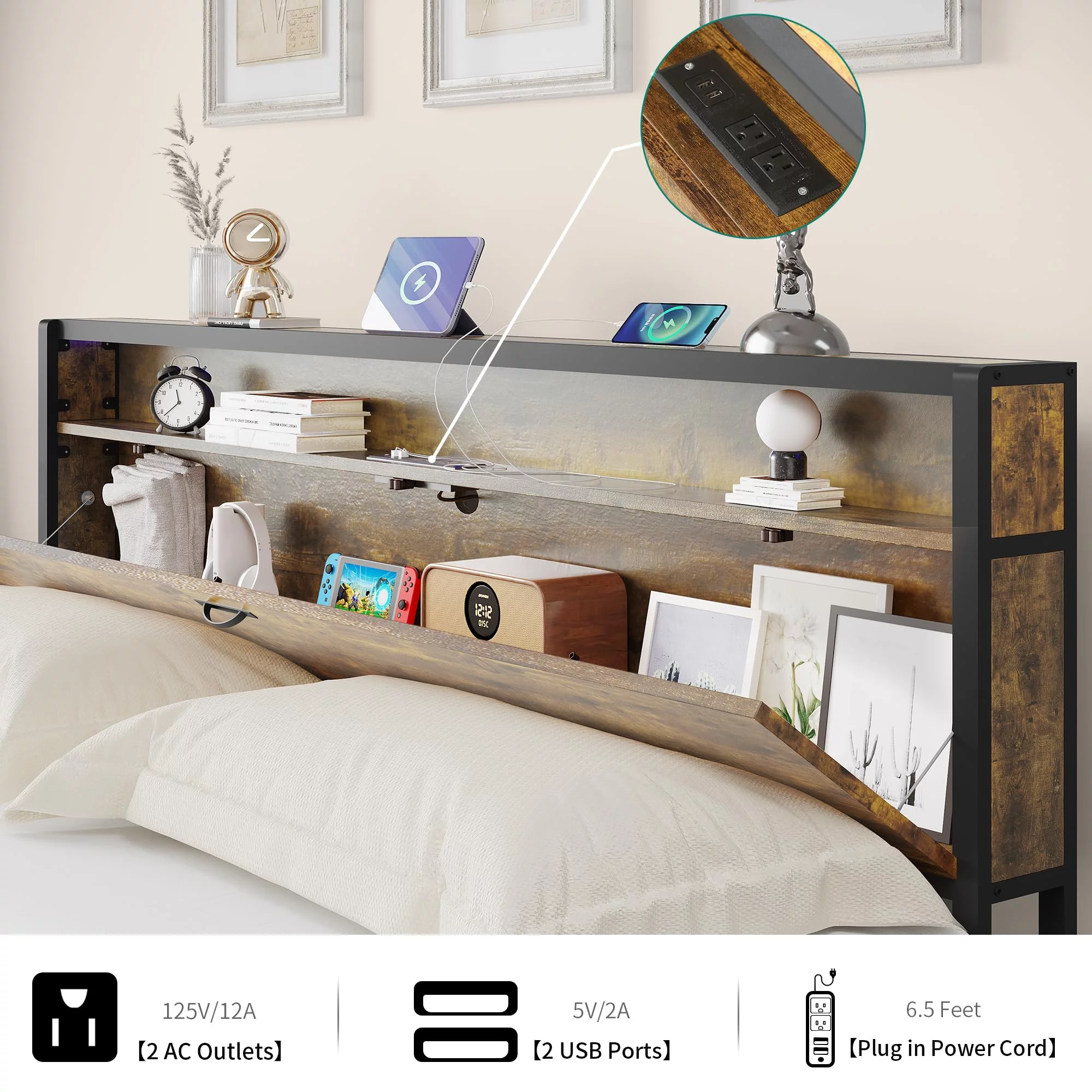 Allewie Walnut Queen Size Metal Platform Bed Frame with Wooden Headboard, Noise free