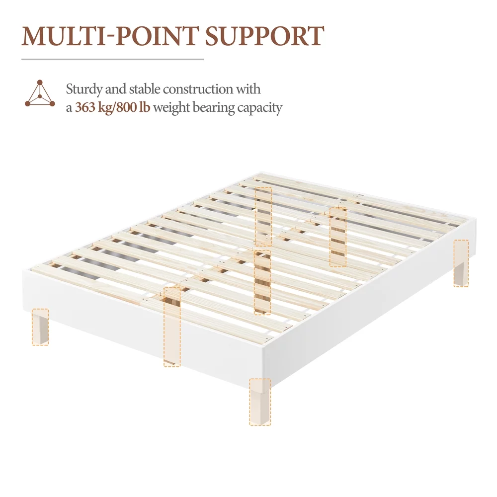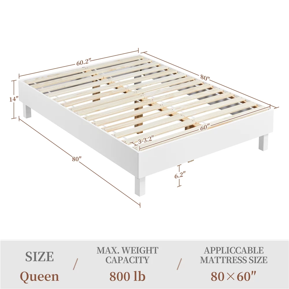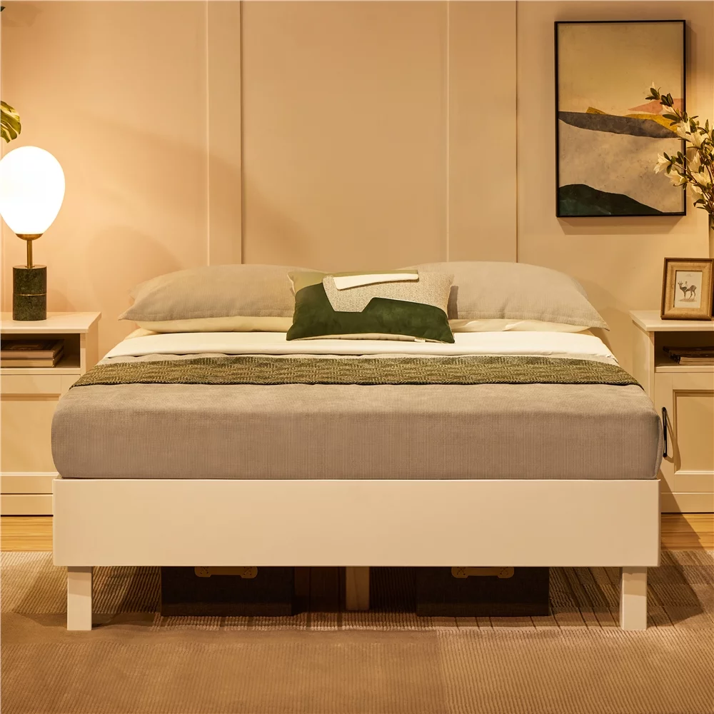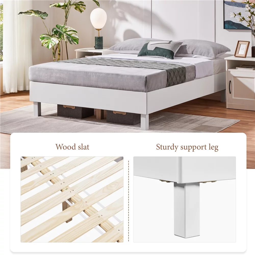 Yaheetech Wooden Platform Bed Frame with Slat Support, No Box Spring Needed,Queen,White