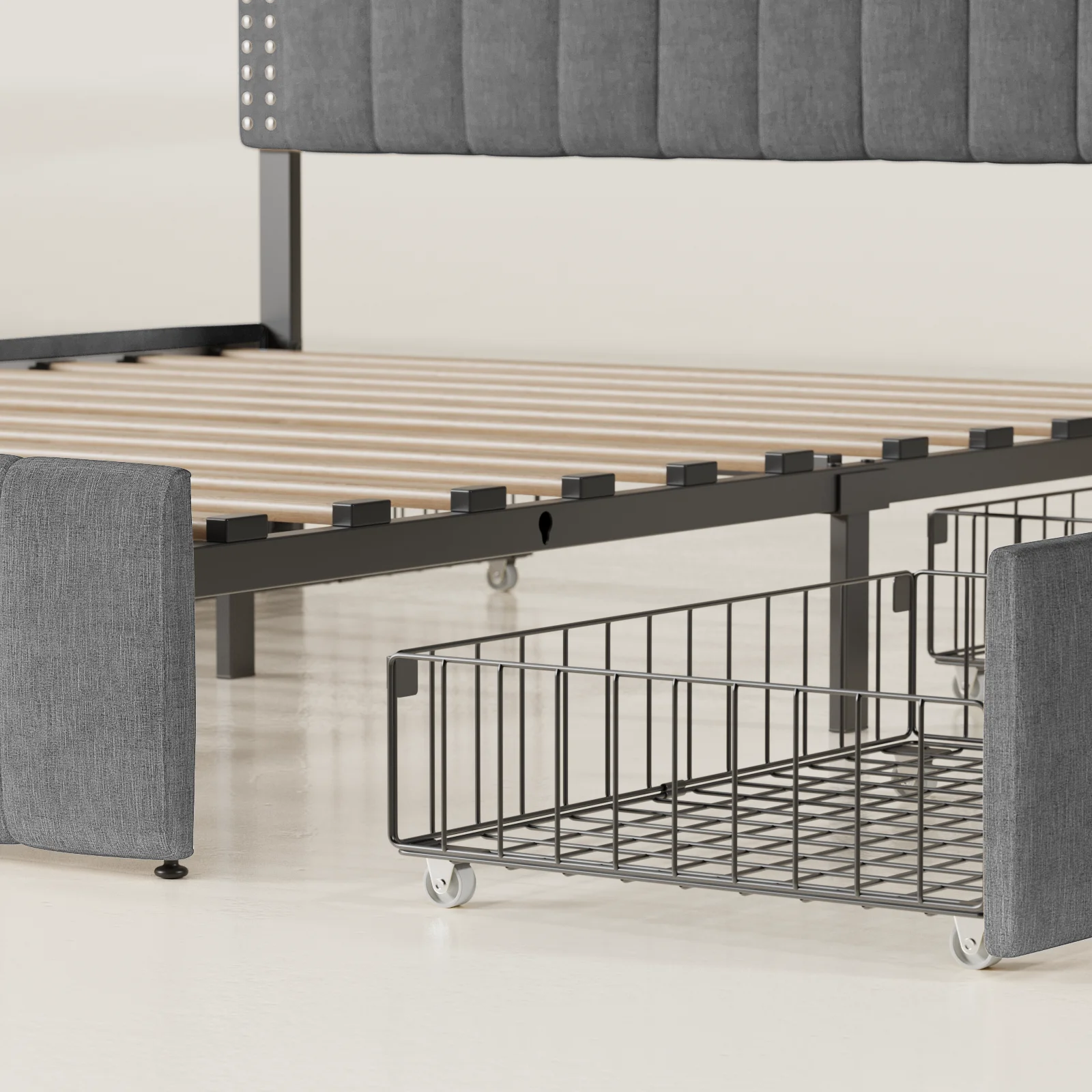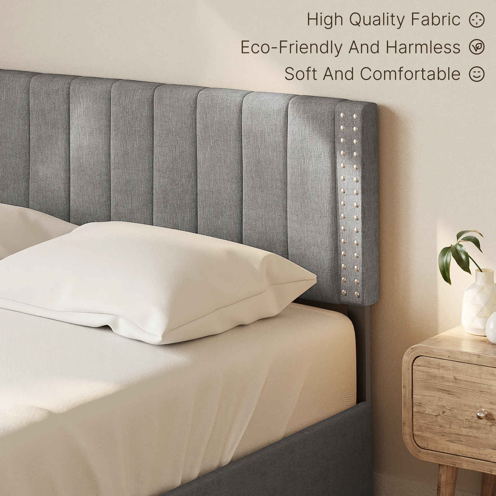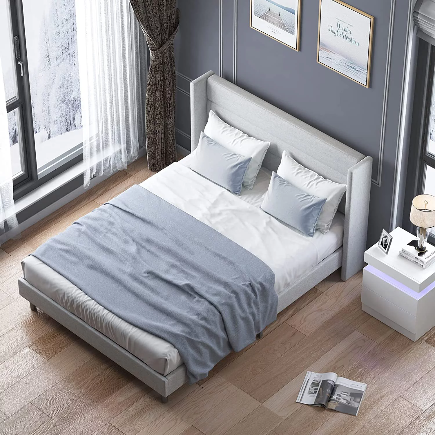 Yaheetech Upholstered Platform Bed Frame with Wooden Slat Support,Queen,Light Gray