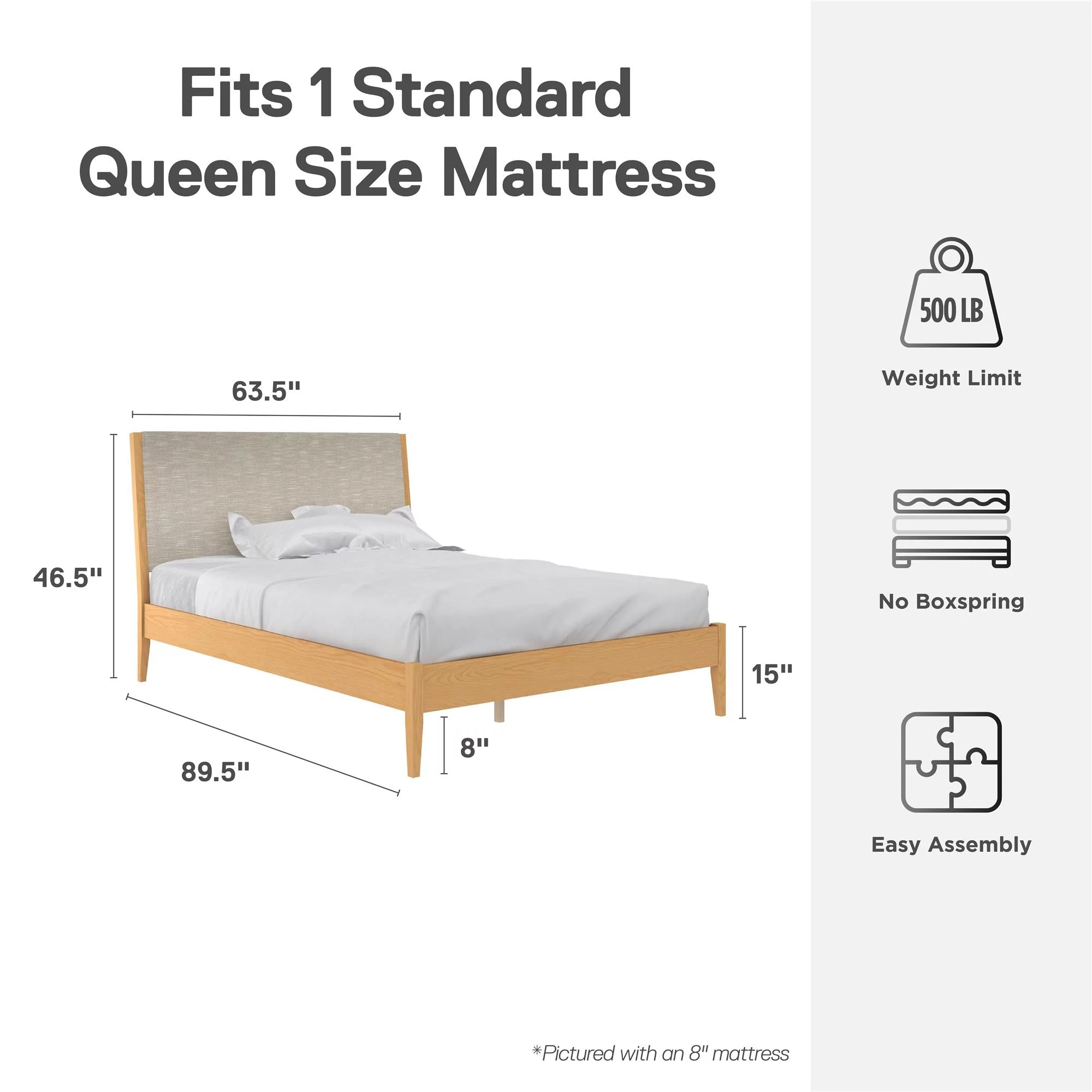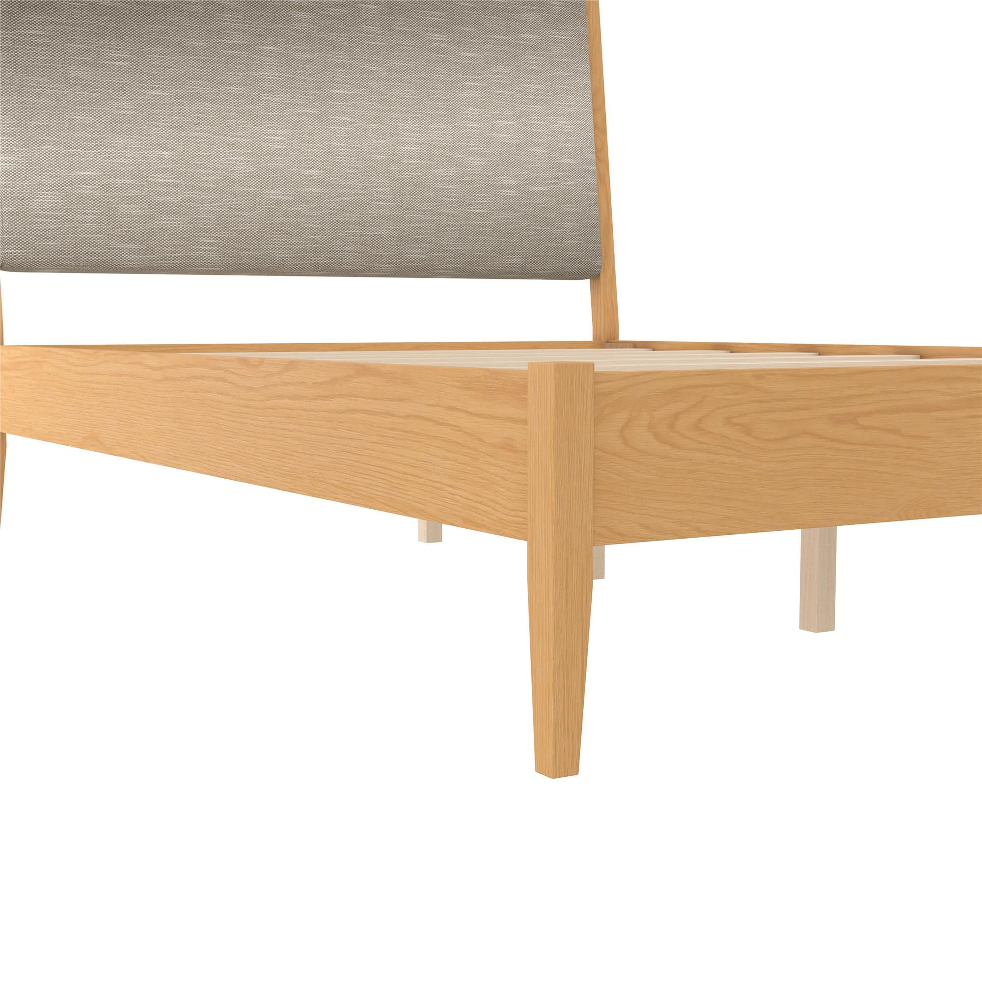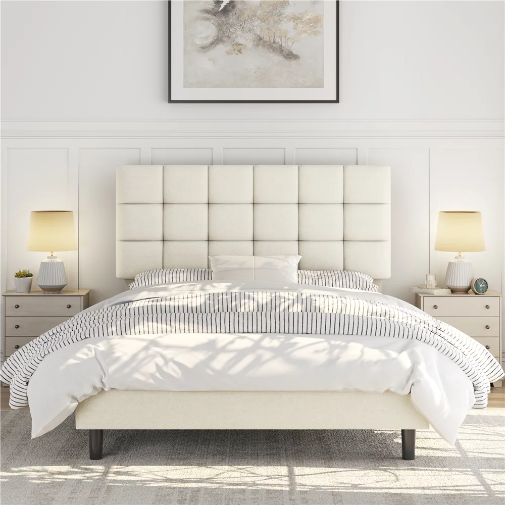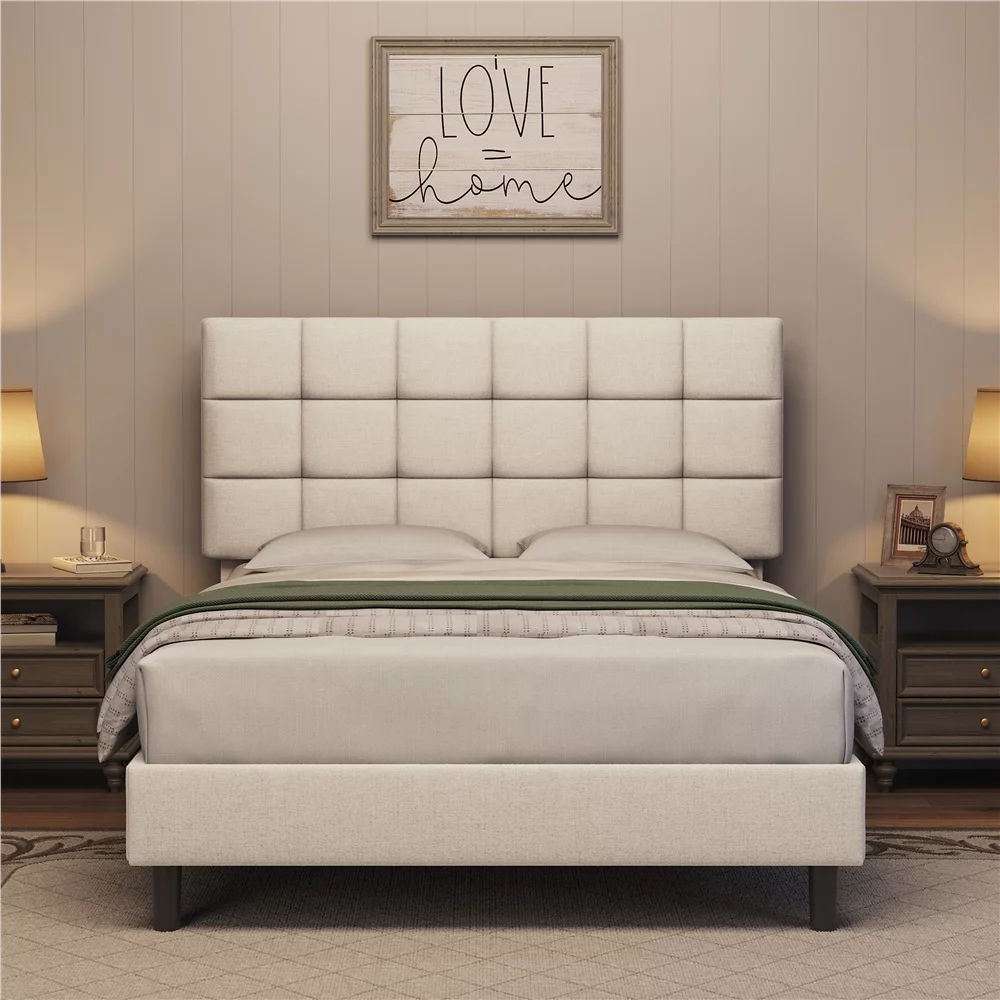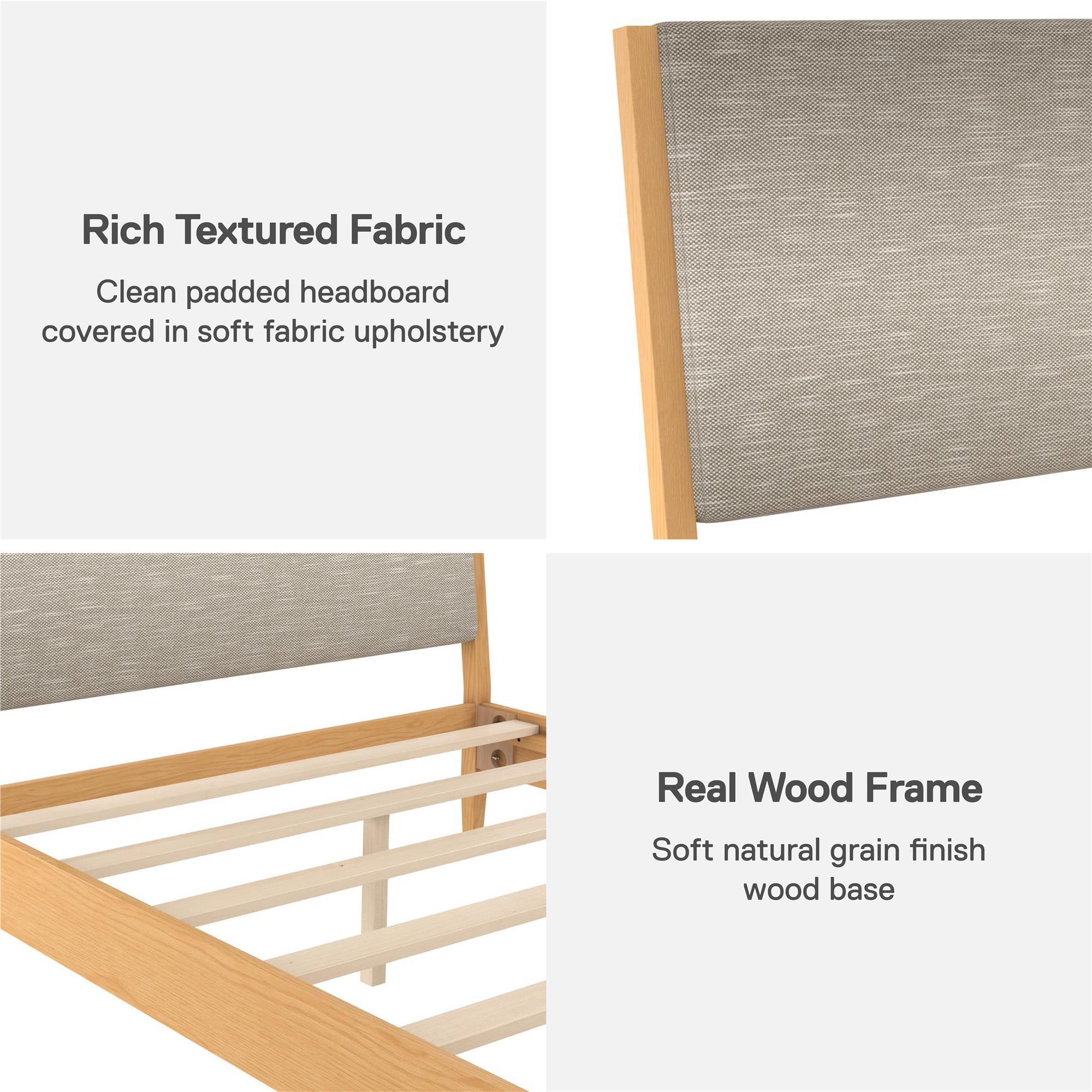 DHP Dacin Wood Bed Frame with Upholstered Headboard, Queen, Beige Linen