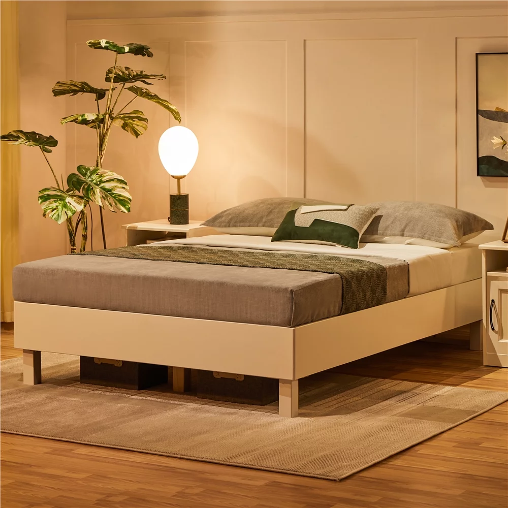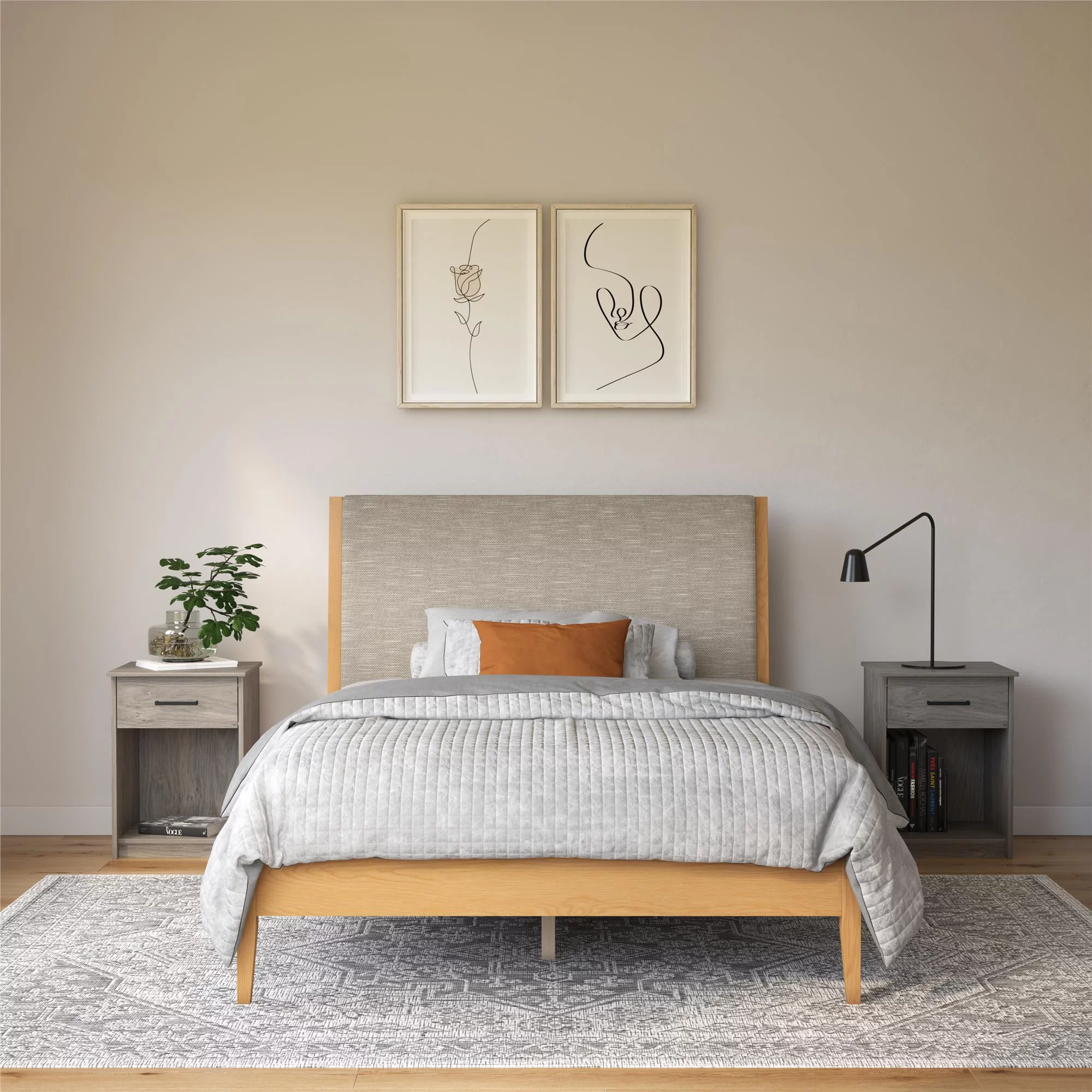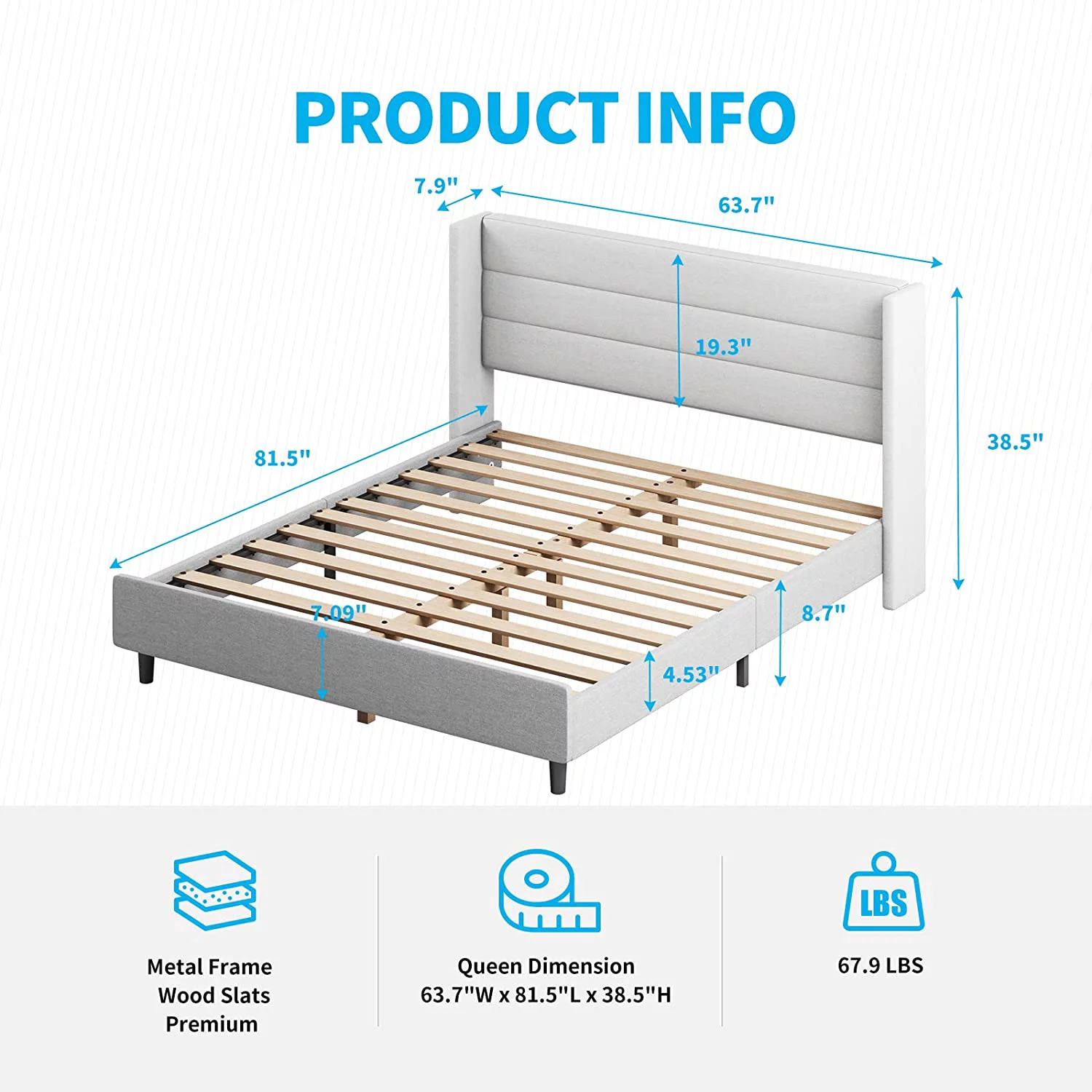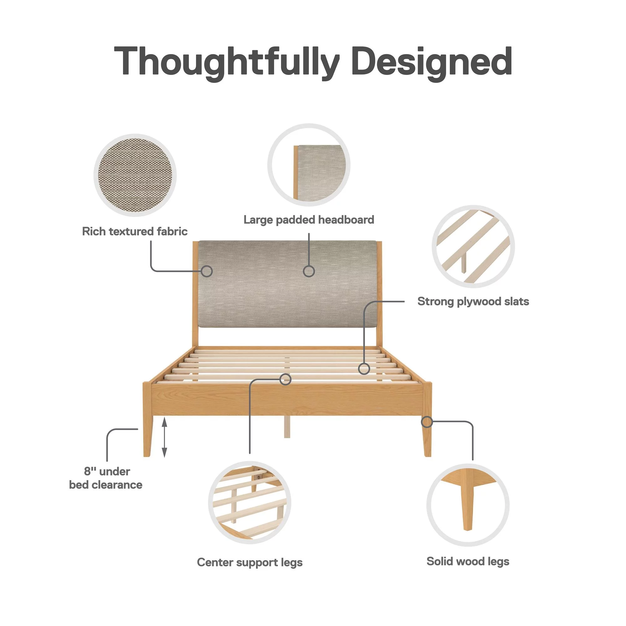 DHP Dacin Wood Bed Frame with Upholstered Headboard, Queen, Beige Linen