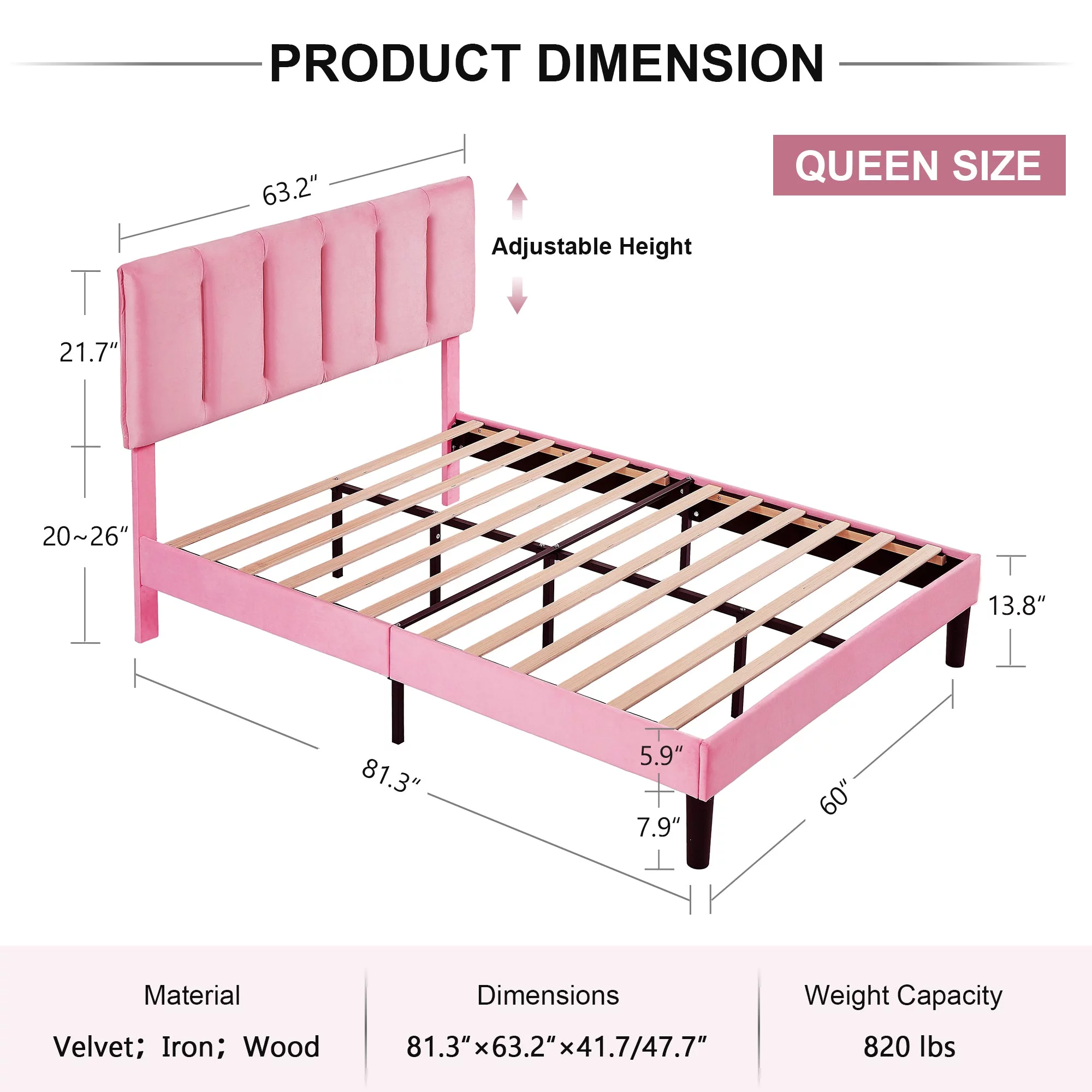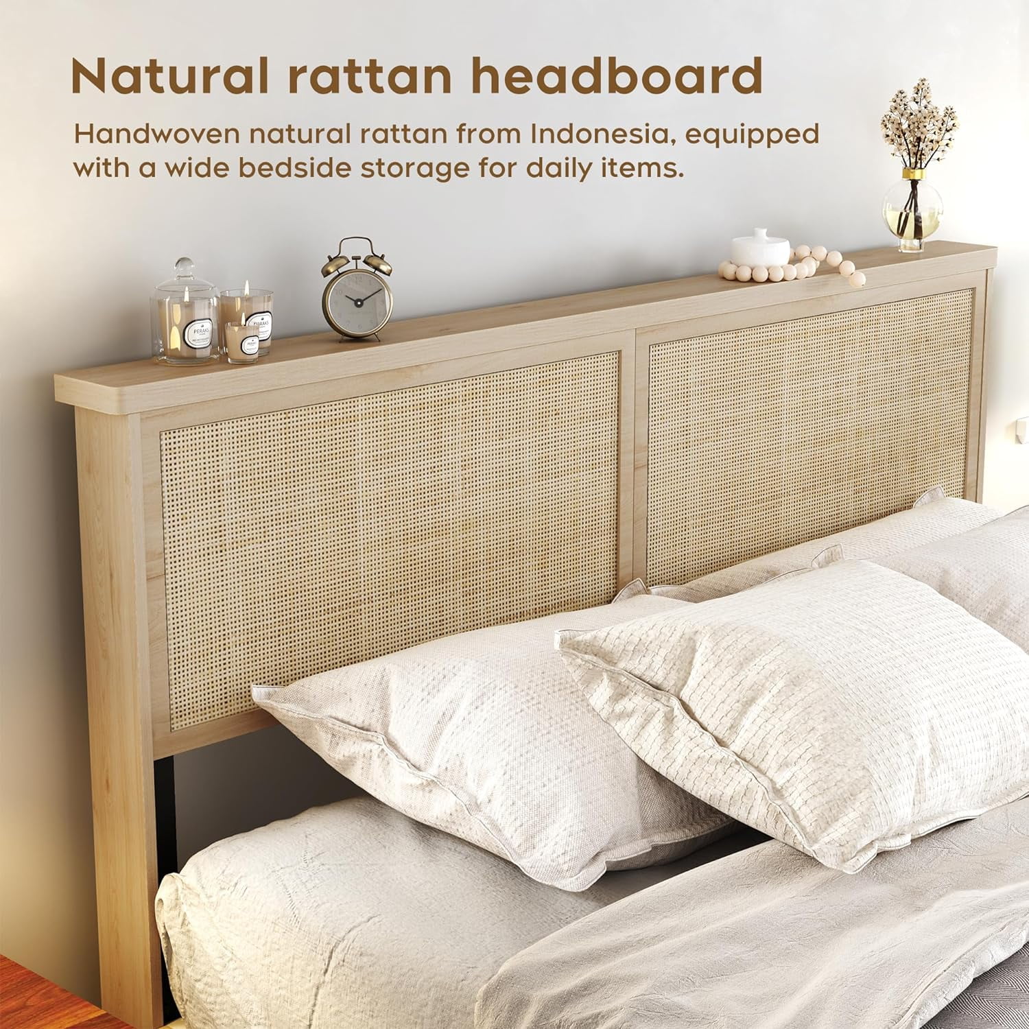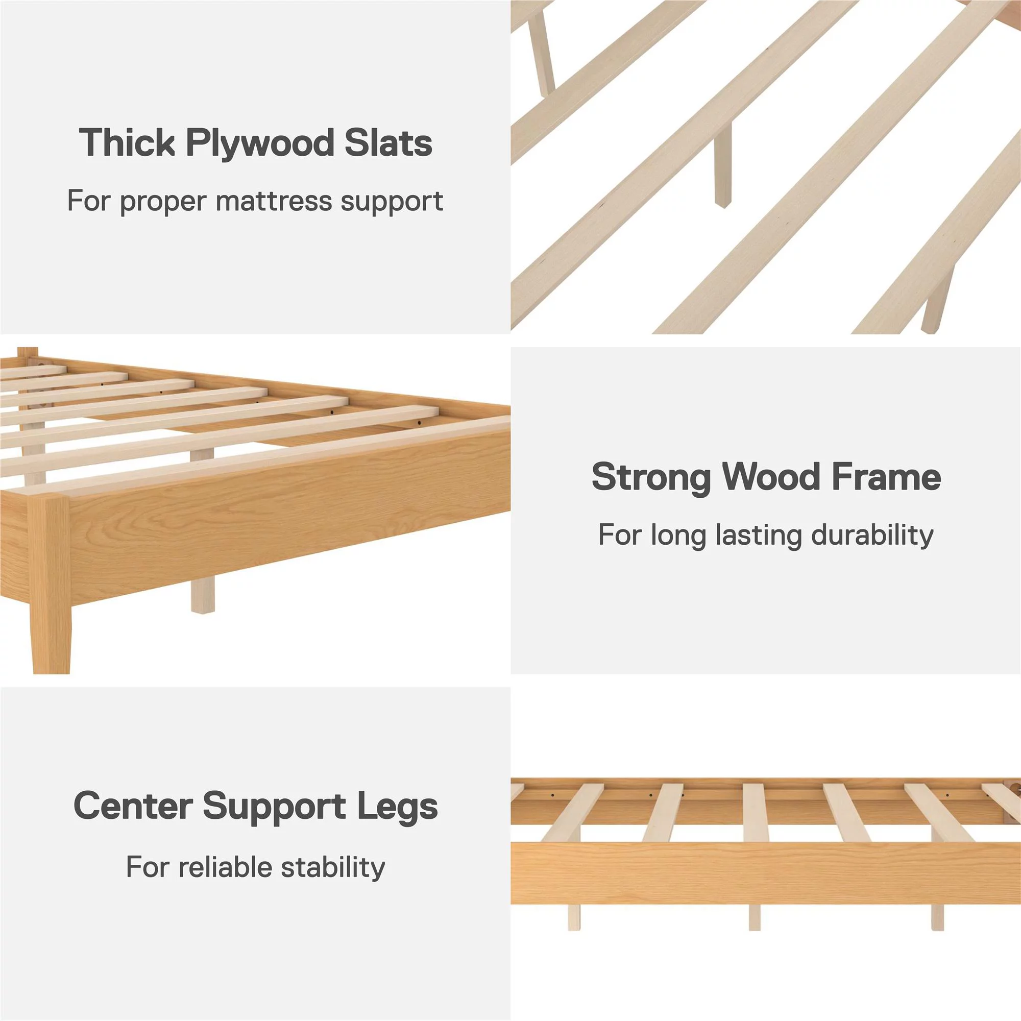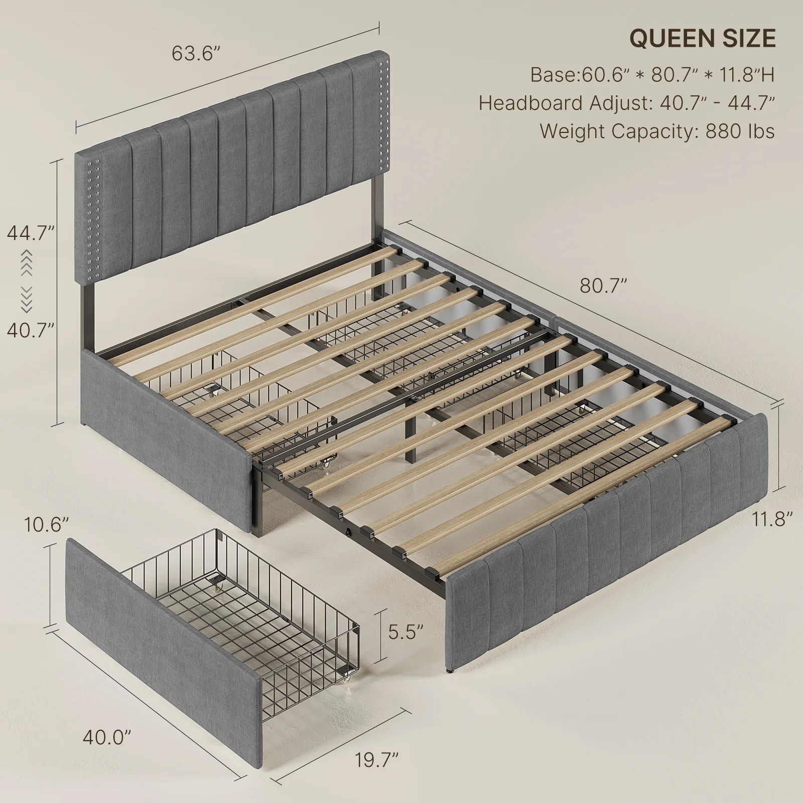 DHP Dacin Wood Bed Frame with Upholstered Headboard, Queen, Beige Linen