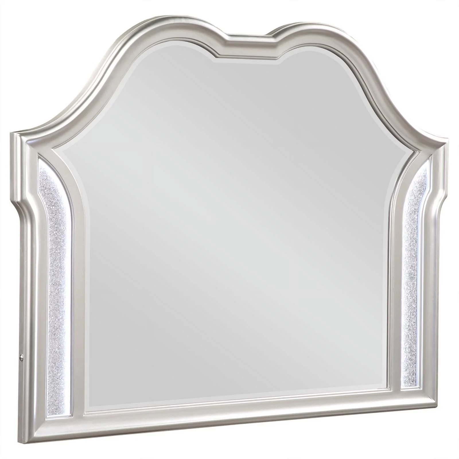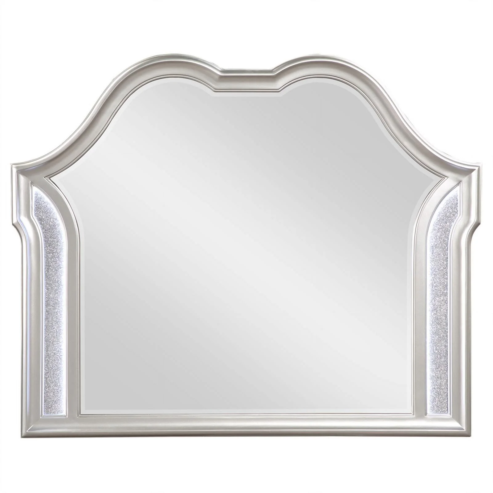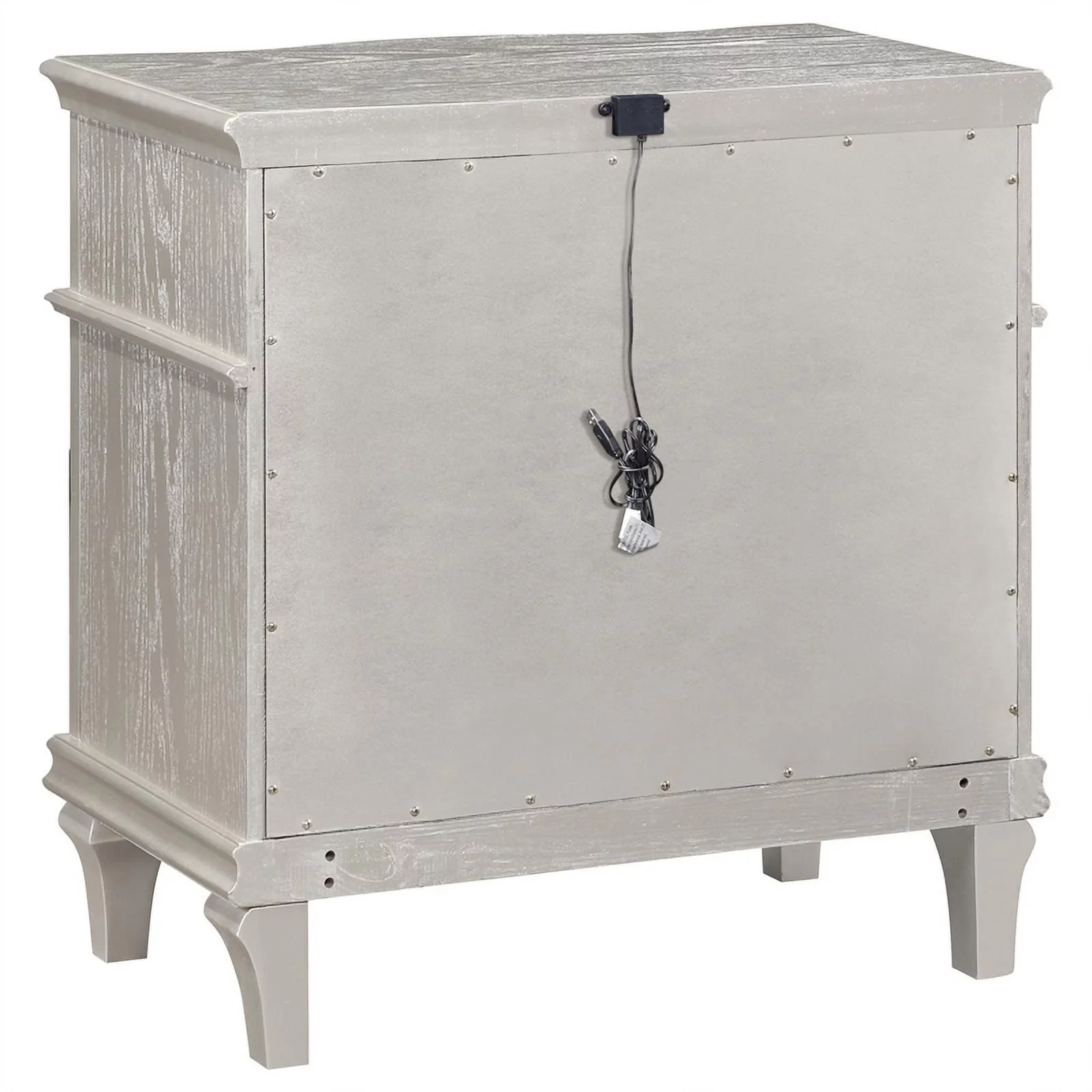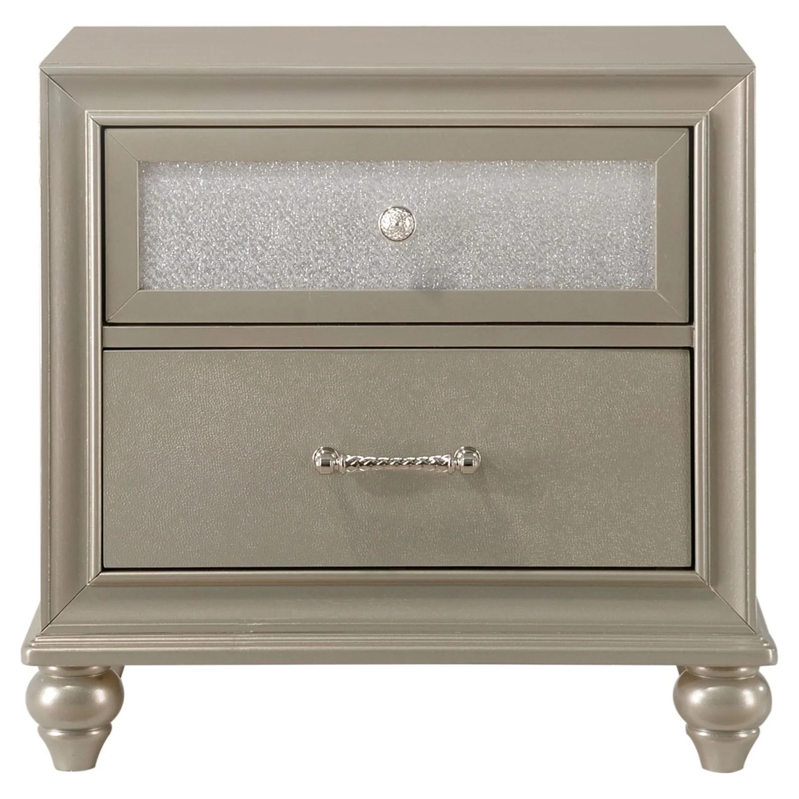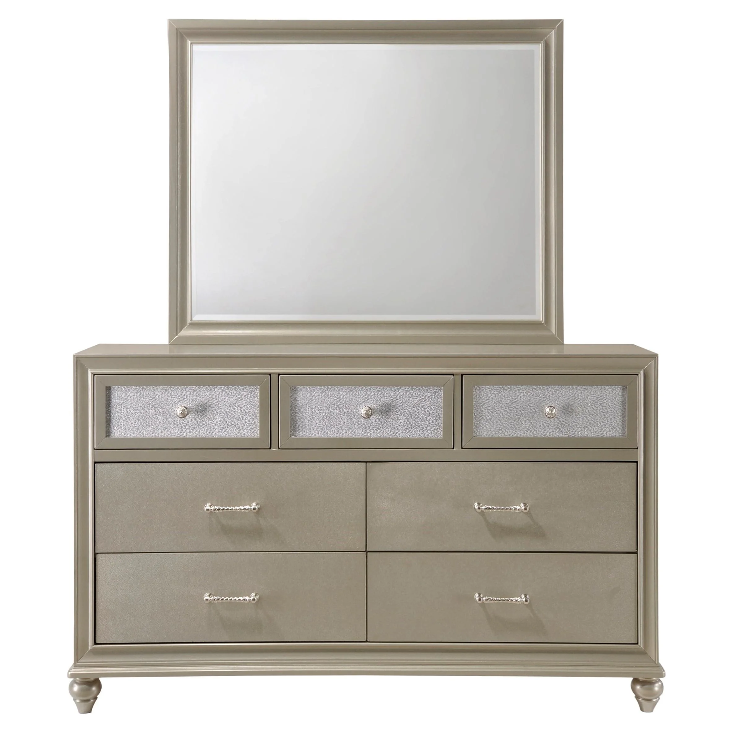 Modern Champagne Faux Finish 4pc King Size Bedroom Set Bed Dresser Mirror Nightstand Button Tufting Faux Gems