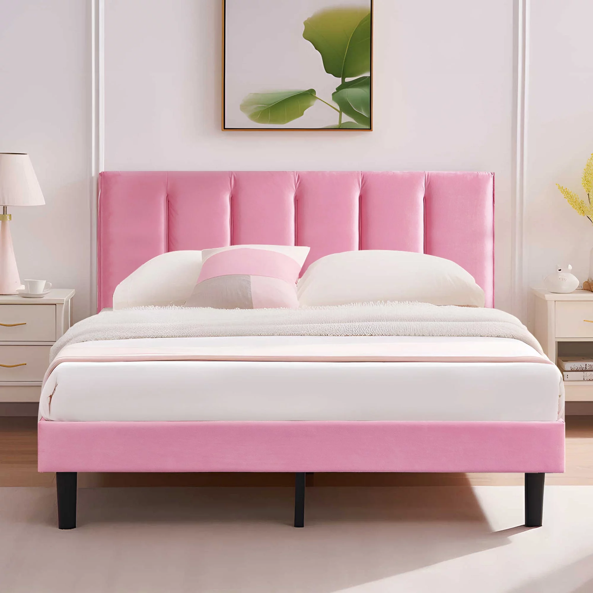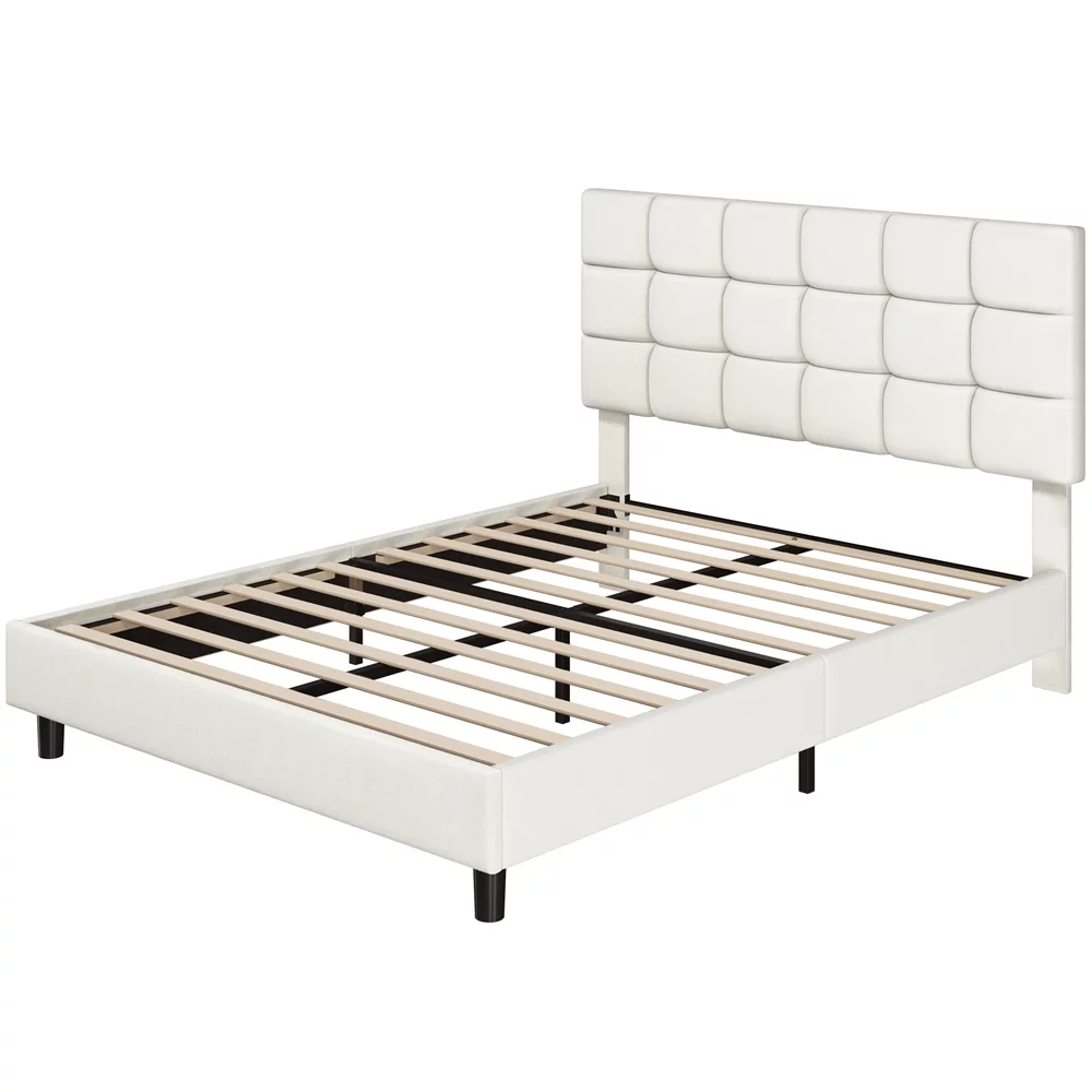 Yaheetech Upholstered Platform Bed Frame with Wooden Slats Support,Full,Beige