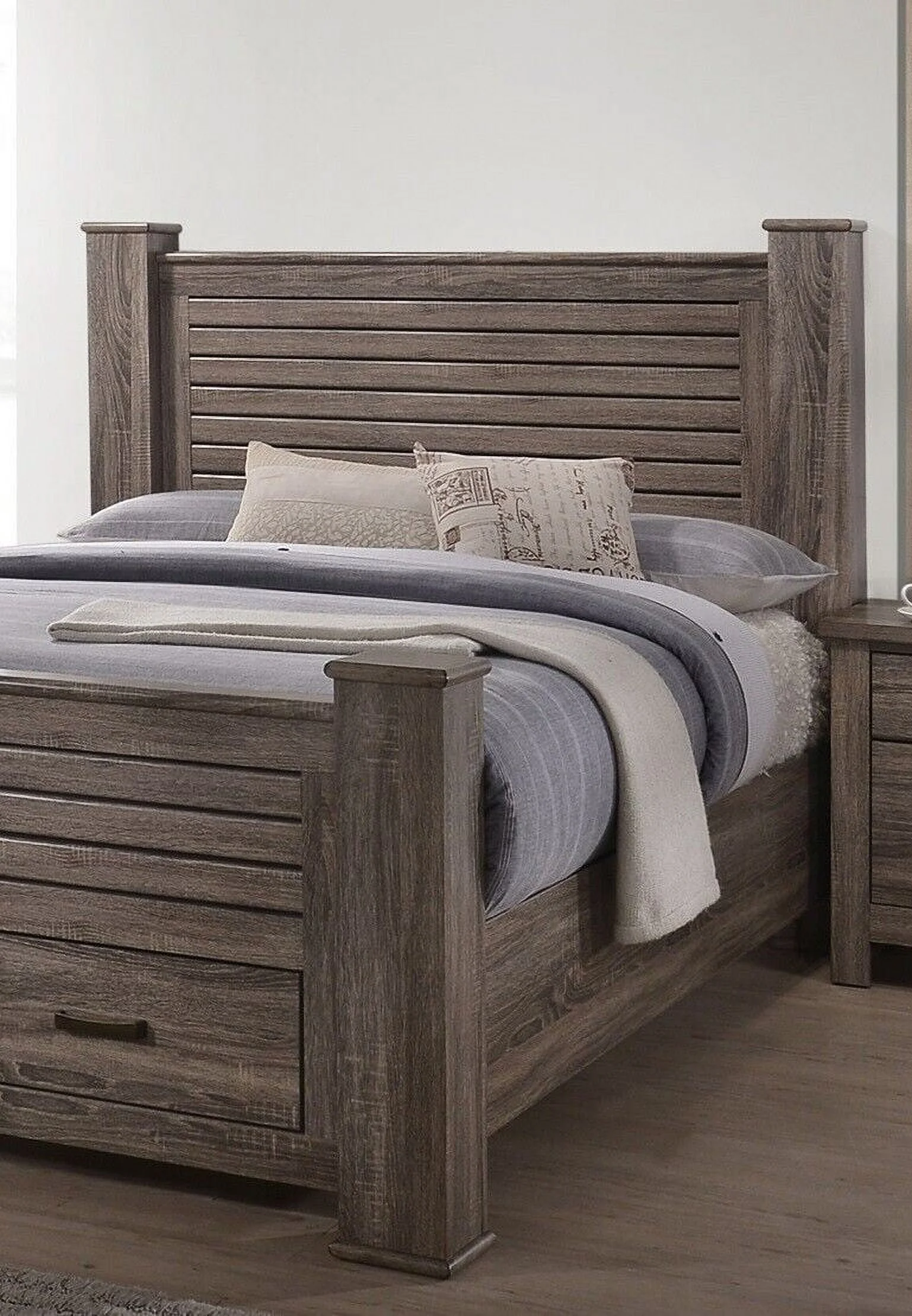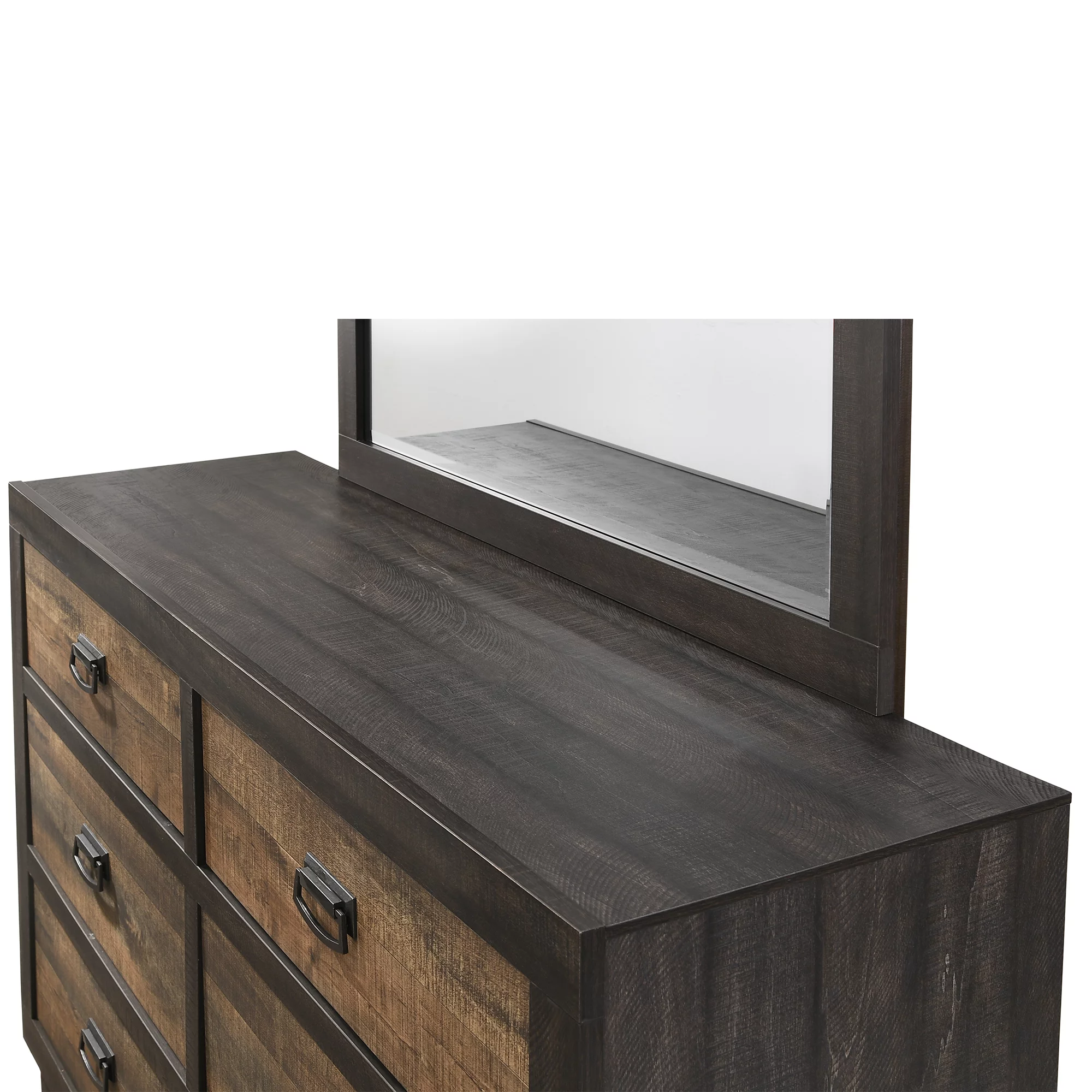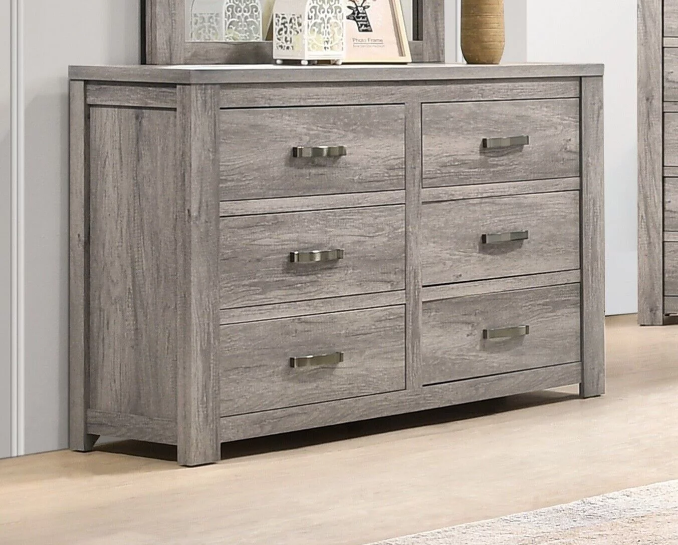 Beautiful Weathered Antique Finish 6pc Bedroom Set California King Size Bed Dresser Mirror 2x Nightstands Chest Furniture