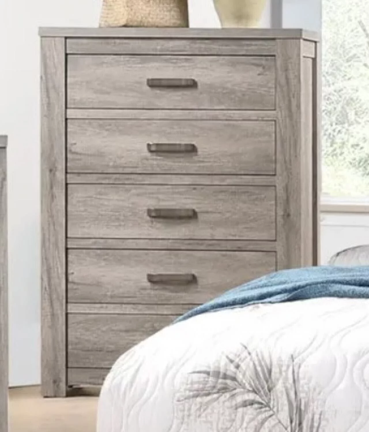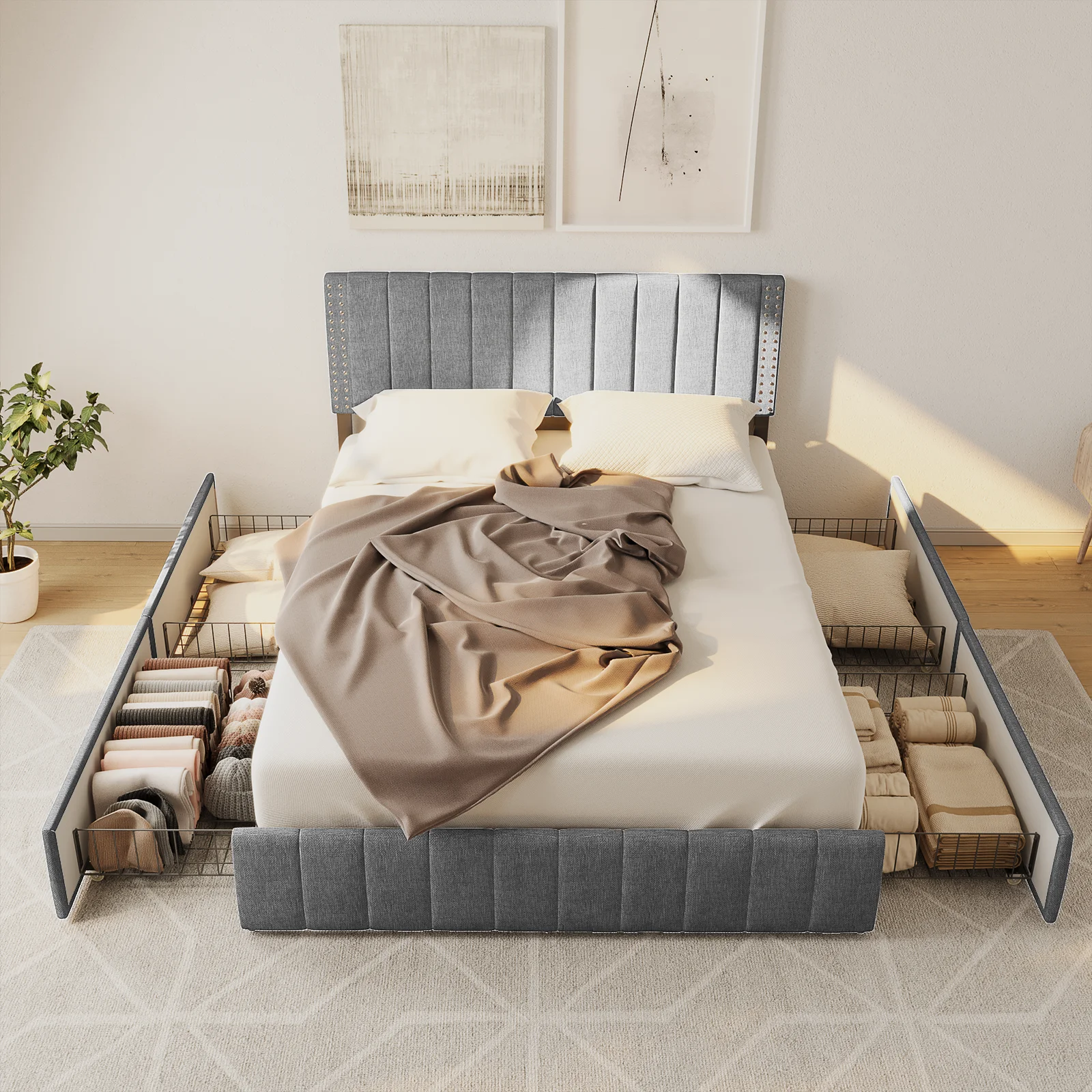 Contemporary King Size 4pc Bedroom Set Storage Drawers Bed Dresser 2x Nightstands Grey Finish Wooden Furniture
