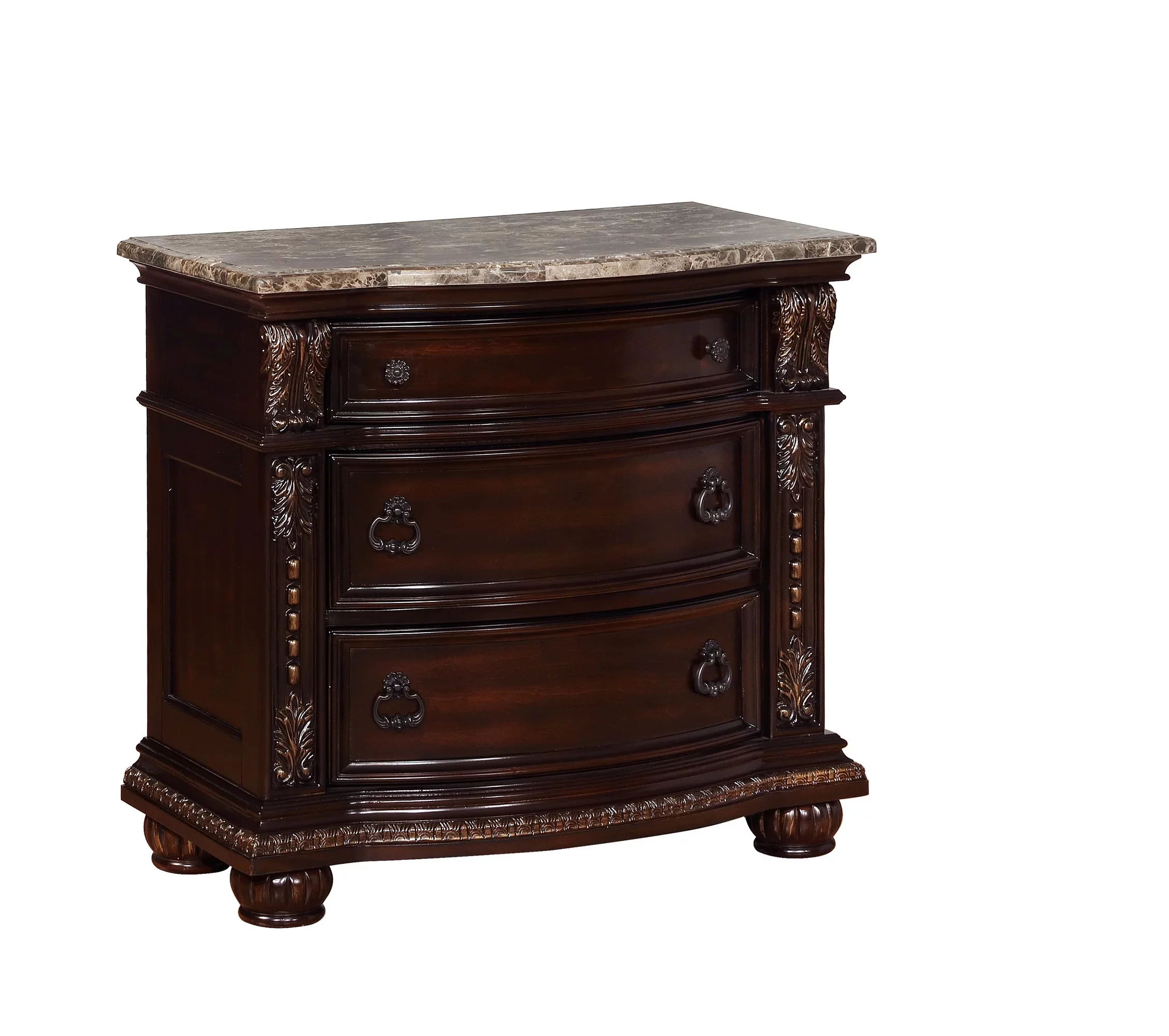 New Formal Traditional Design Marble Top King Size 4 Pieces Set Bedroom Furniture, Bed, Dresser, Mirror, Nightstand