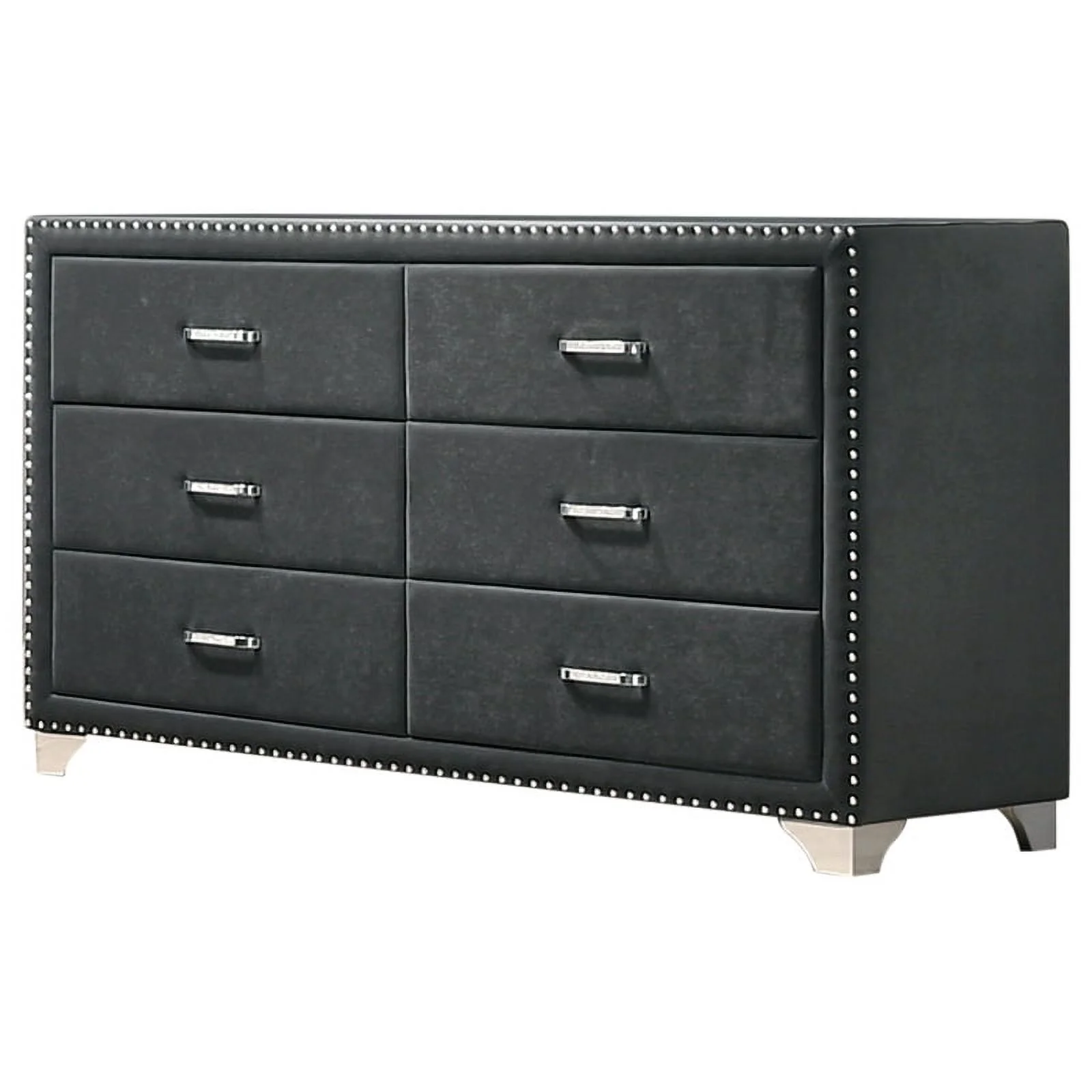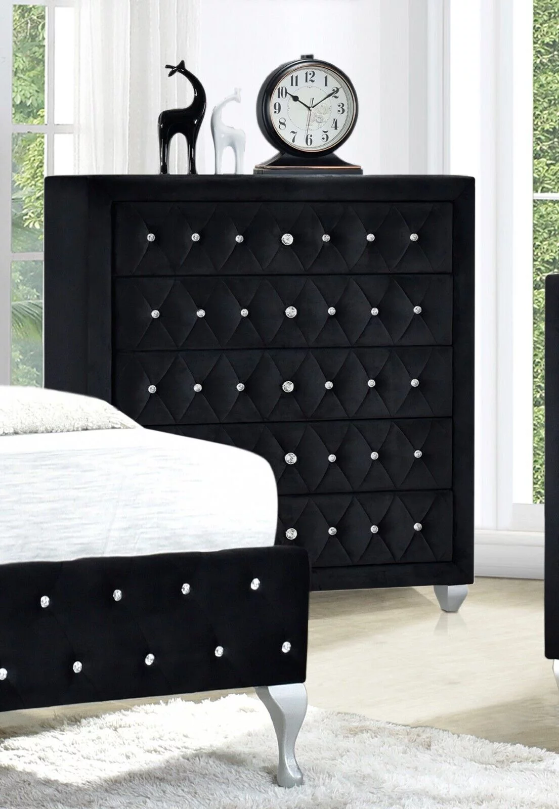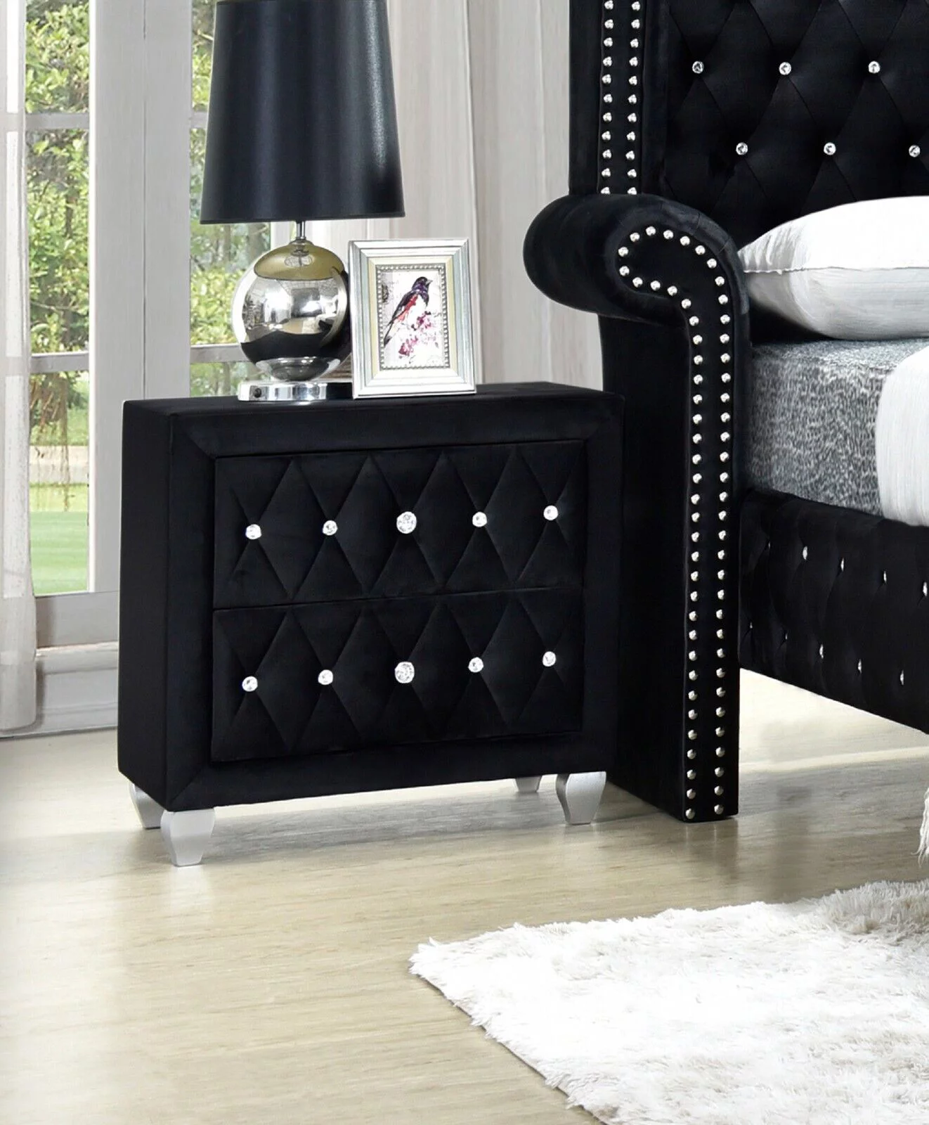 Modern 6Pc King Size Bed Dresser Mirror Nightstand Chest Set Master Bedroom Furniture Black Velvet