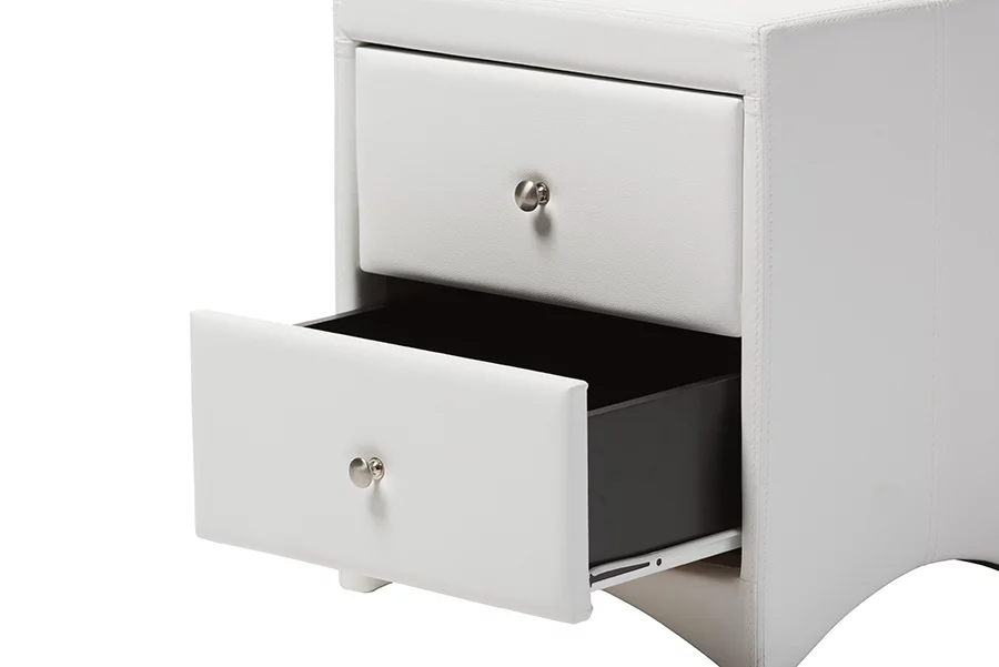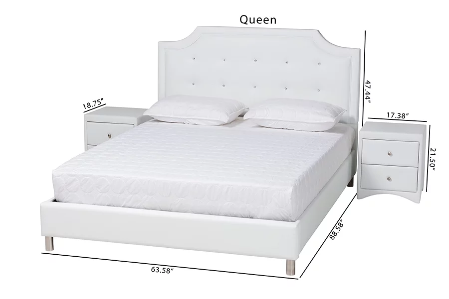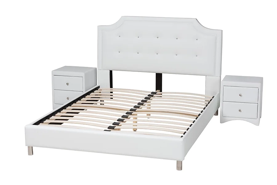 Baxton Studio Carlotta Contemporary Glam White Faux Leather Upholstered King Size 3-Piece Bedroom Set