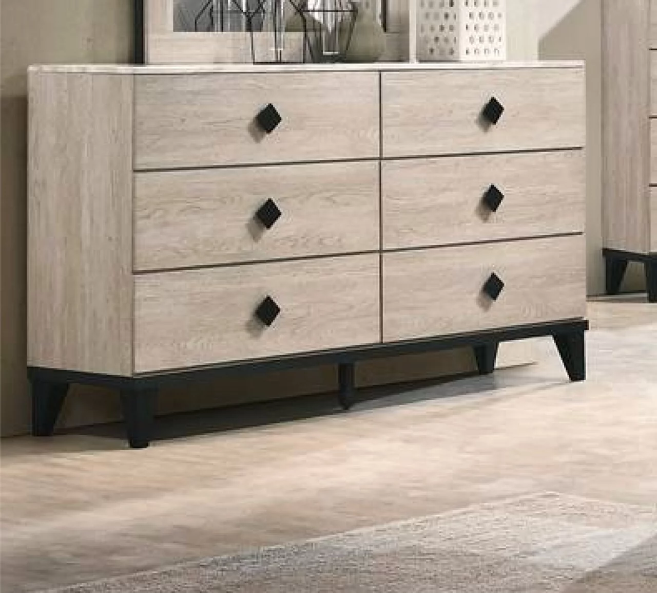Transitional Wooden 6pc Bedroom Set Eastern king Size Bed w Drawers Dresser Mirror 2x Nightstands Chest Bedroom Furniture