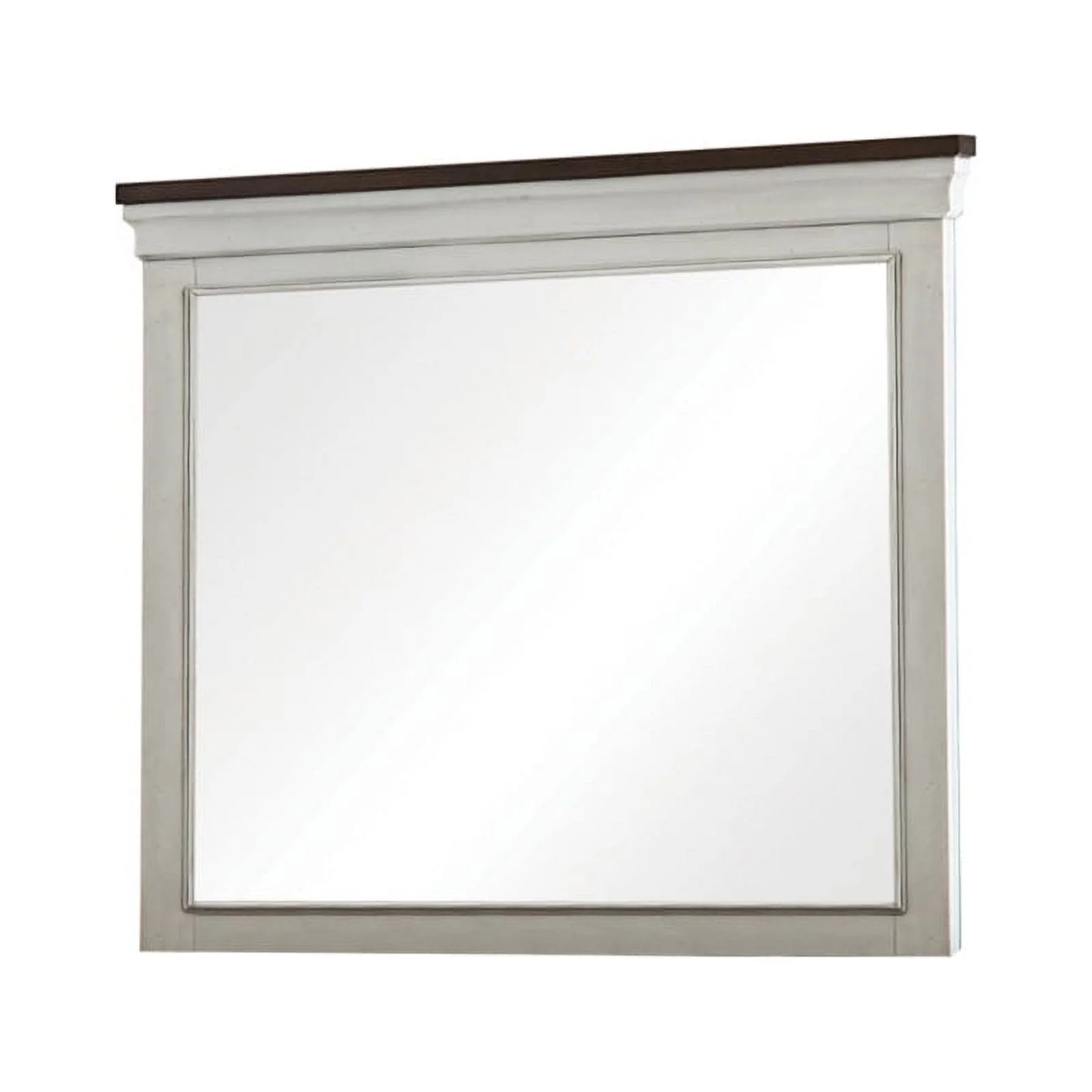 Laval Wood Bedroom Set, Upholstered King Bed, Dresser, Mirror, 2 Nightstands, Antique White and Oak