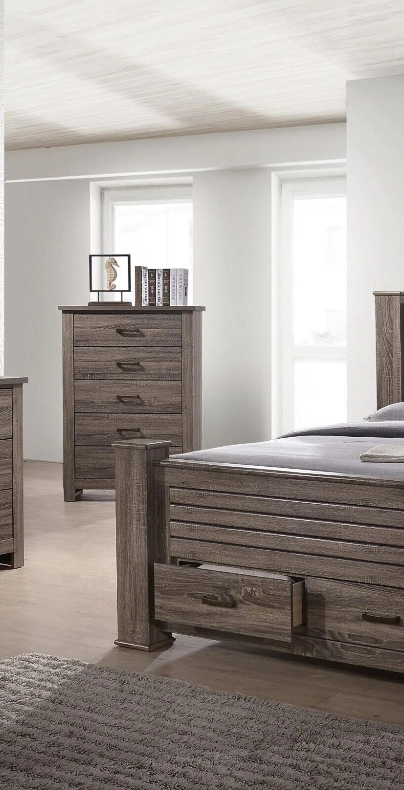 Modus Alexandra 5 PC King Storage Bedroom Set w Chest in Rustic Latte