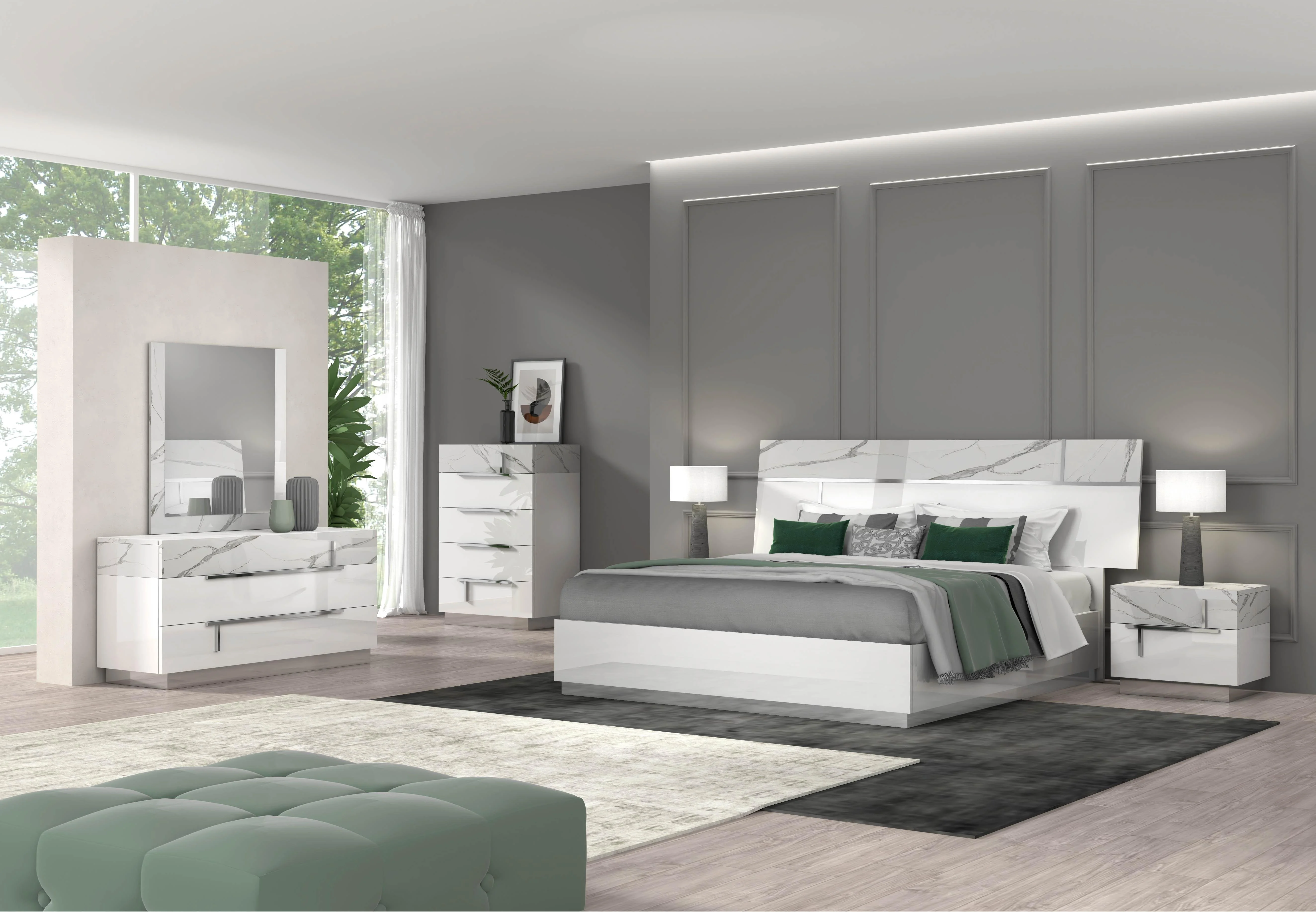 Milan Valencia 4-piece Wood King-size Bedroom Set in High Gloss White/Gray