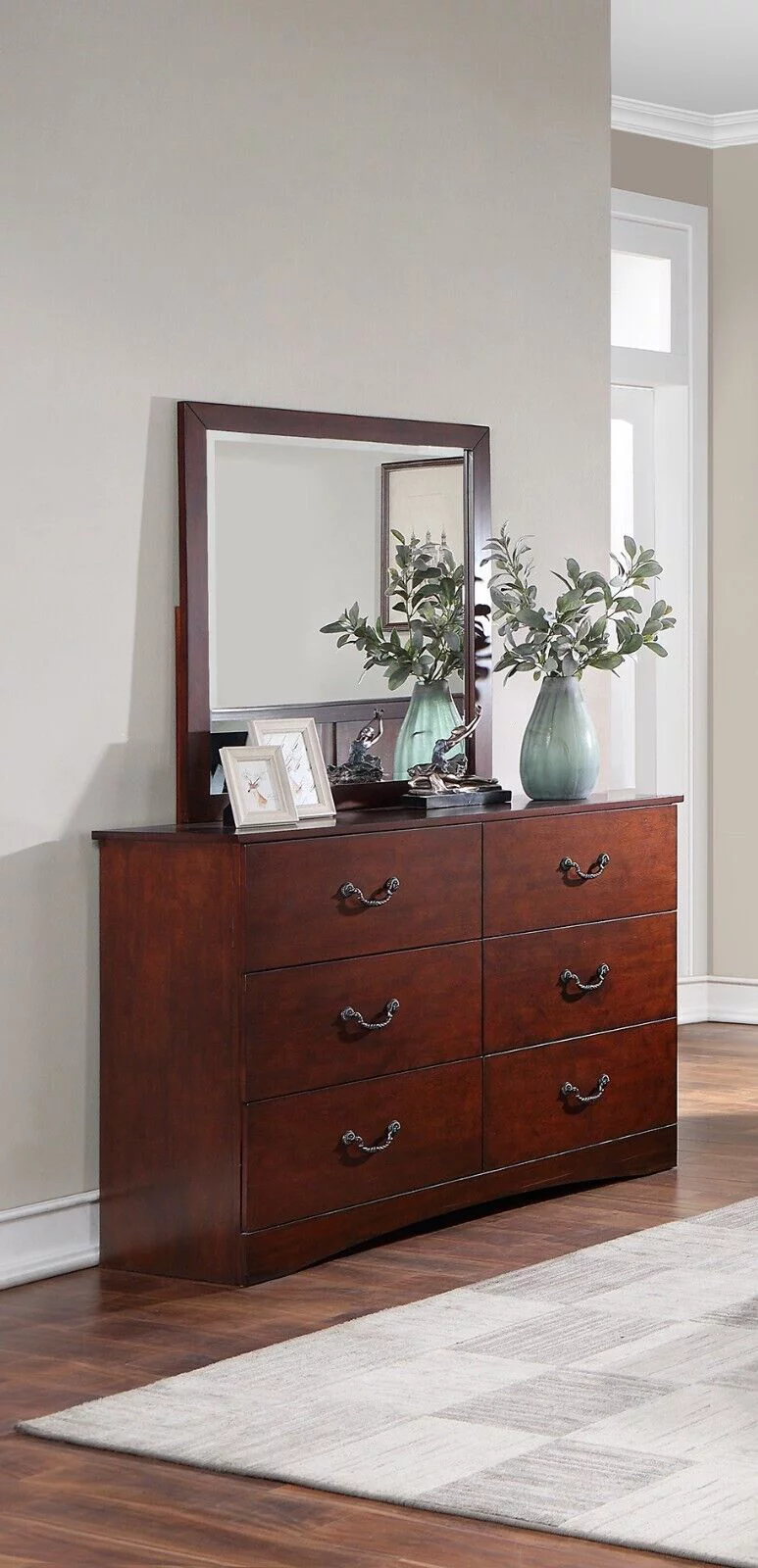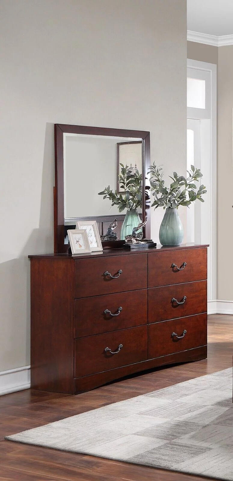 Bedroom Transitional Formal Cal King Bed Posts HB FB 4pc Set Dresser Mirror Nightstand Wooden Furniture