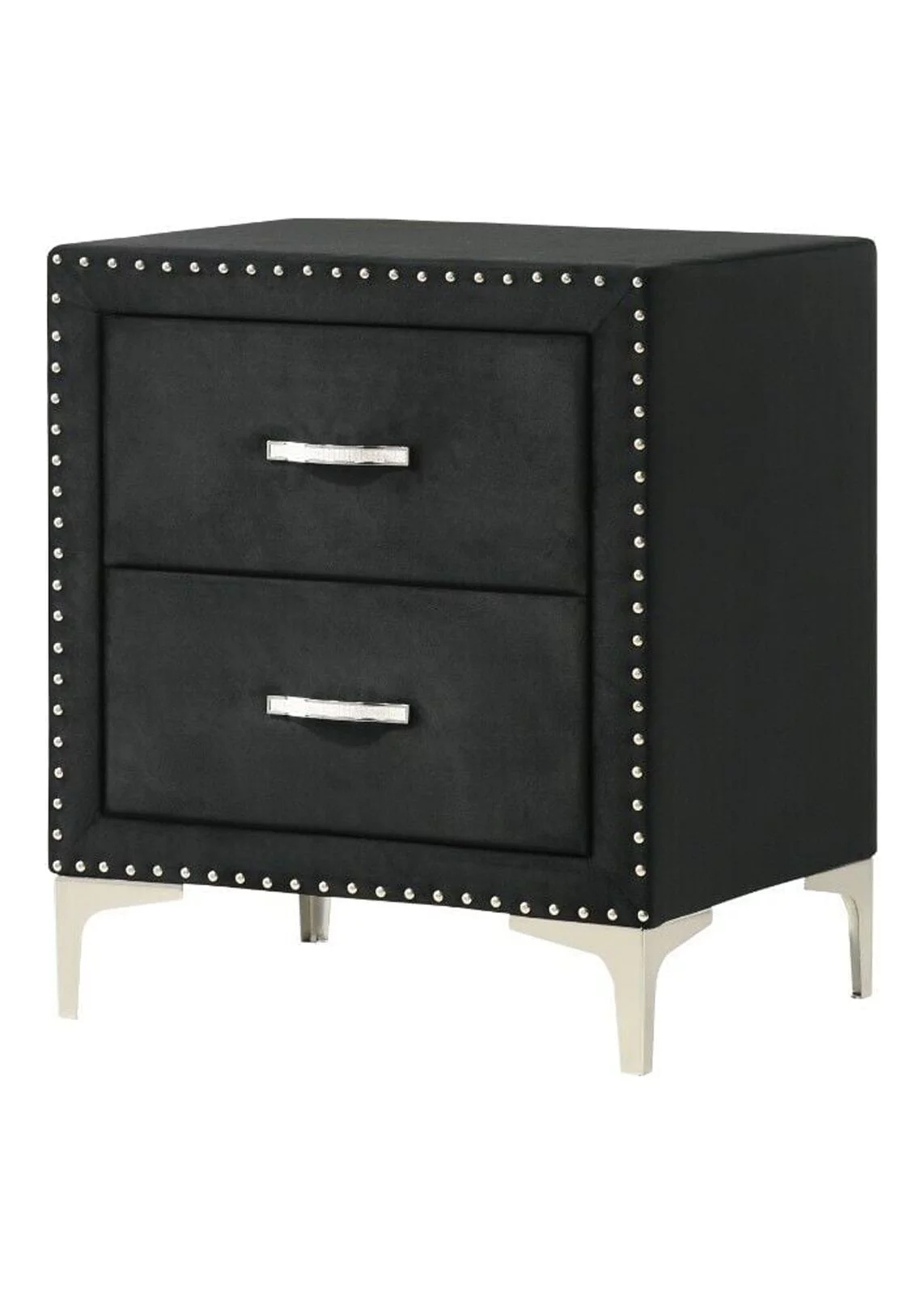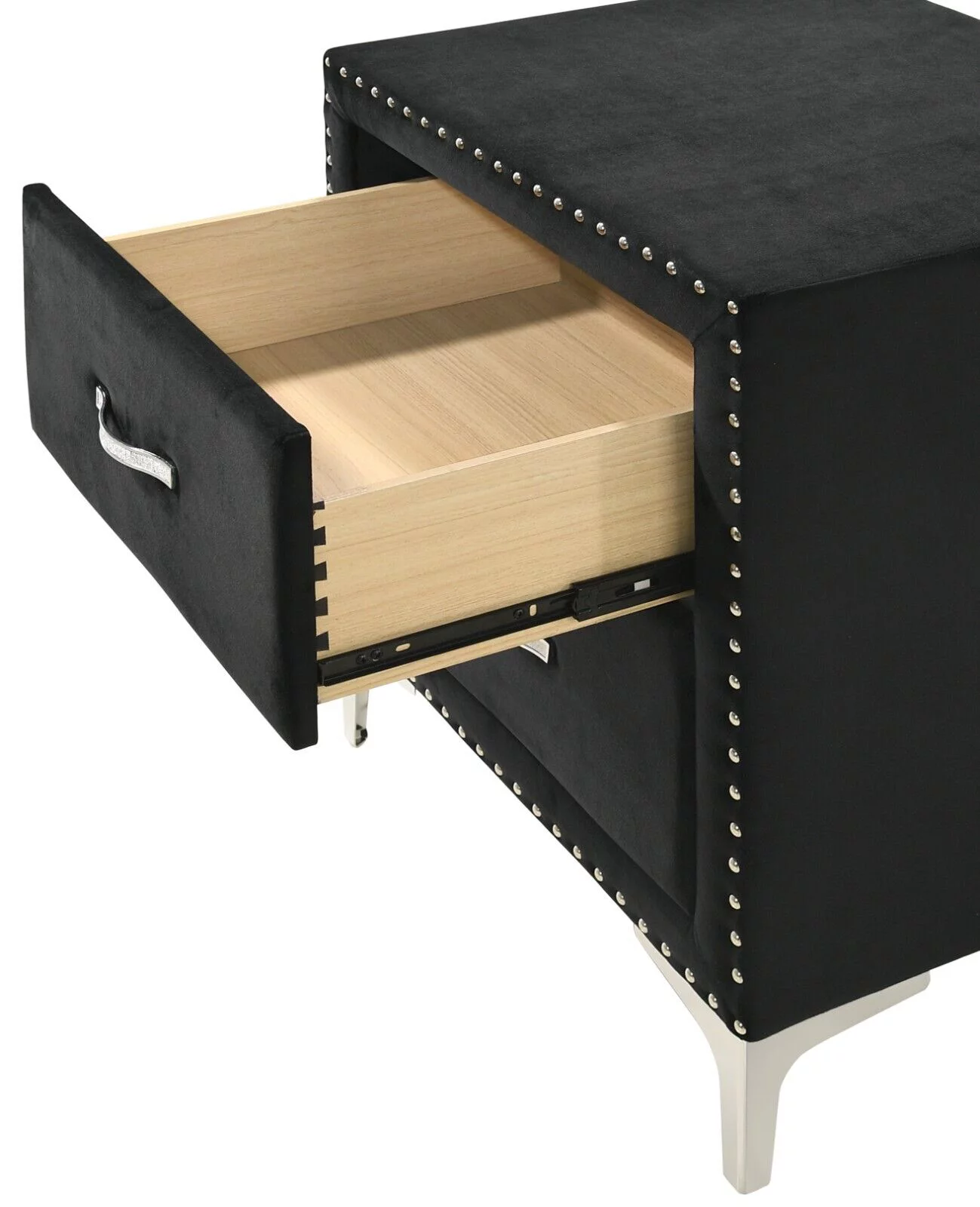 Modern Glamourous Style 3pc King Size Bed Chest Nightstand Bedroom Set Black Velvet Upholstery Furniture