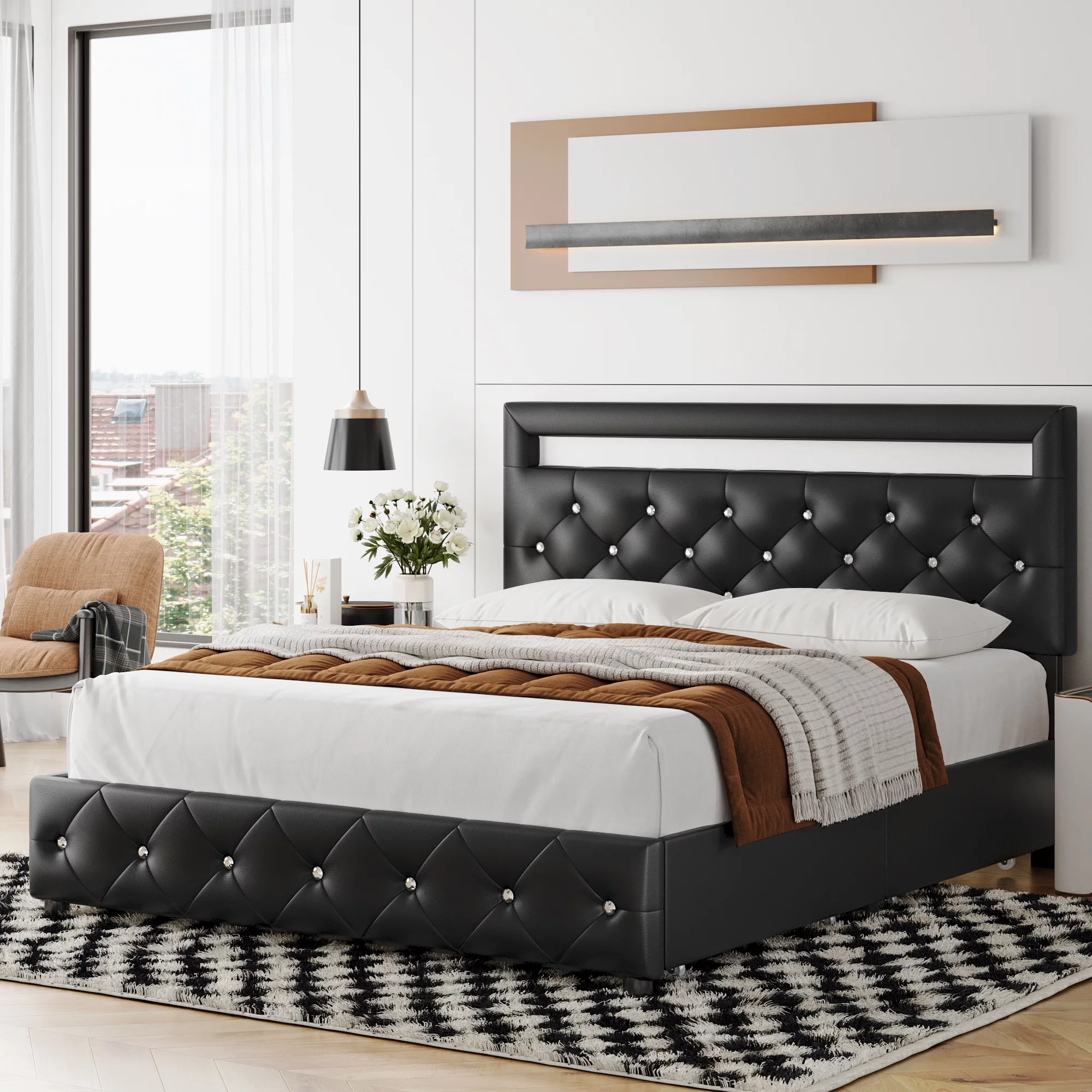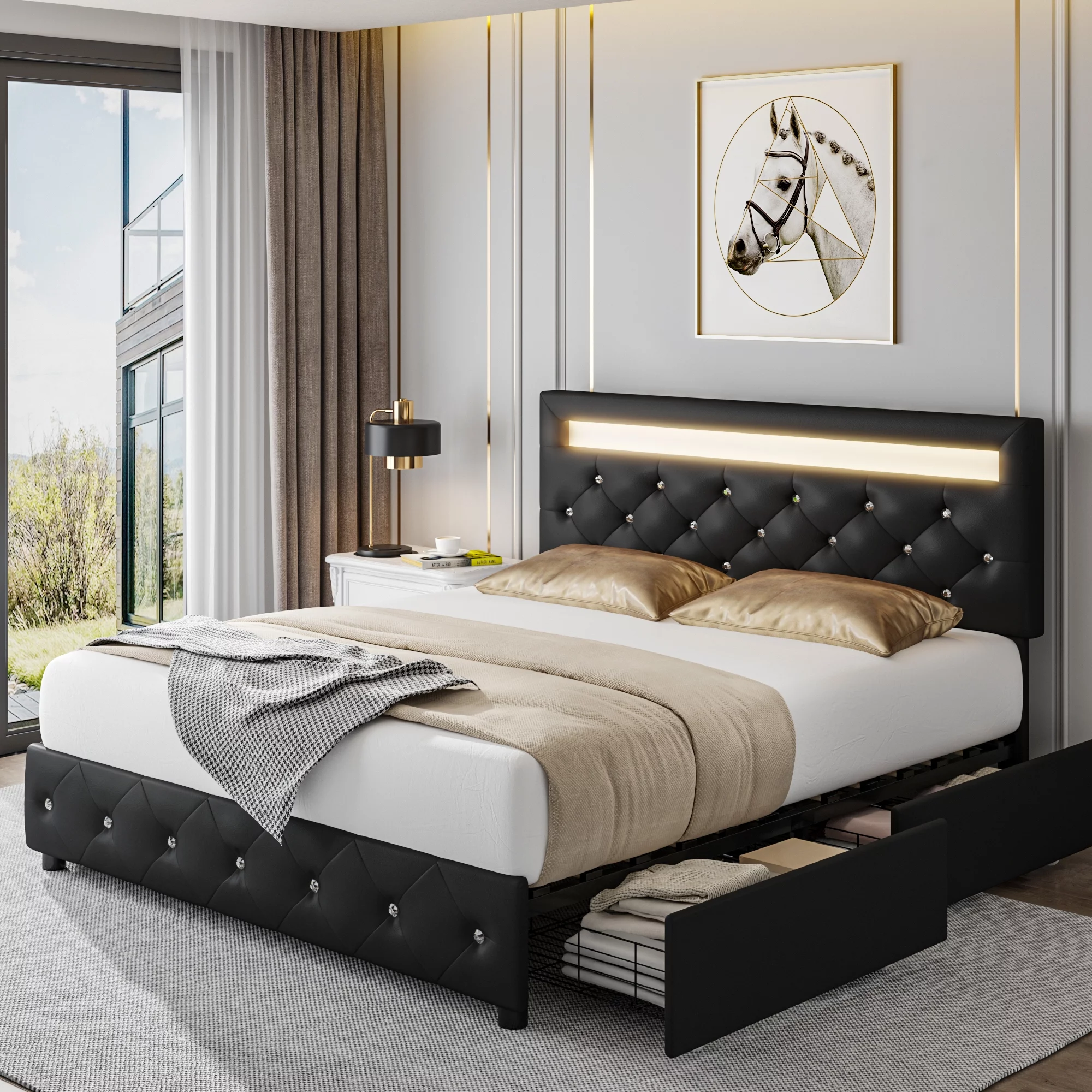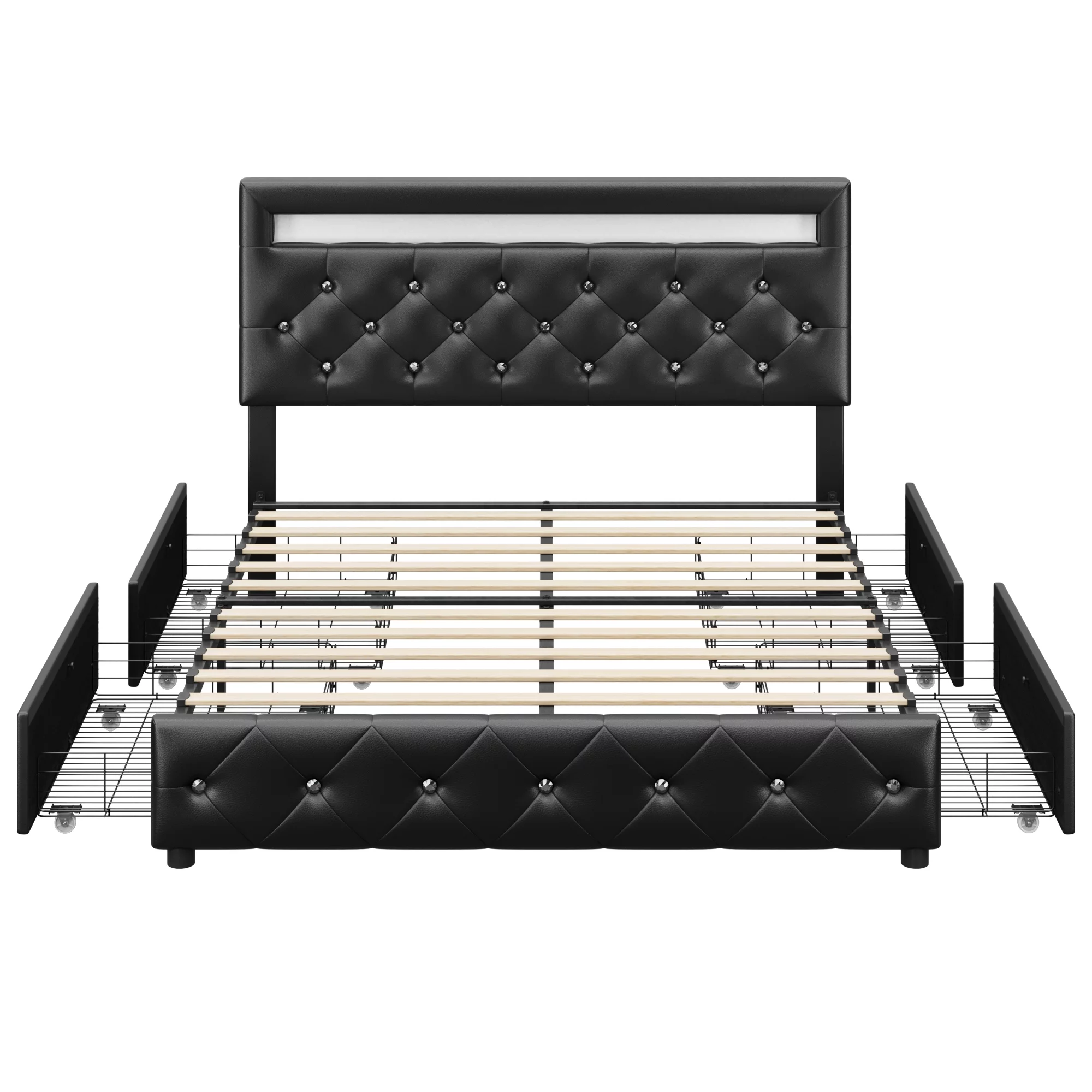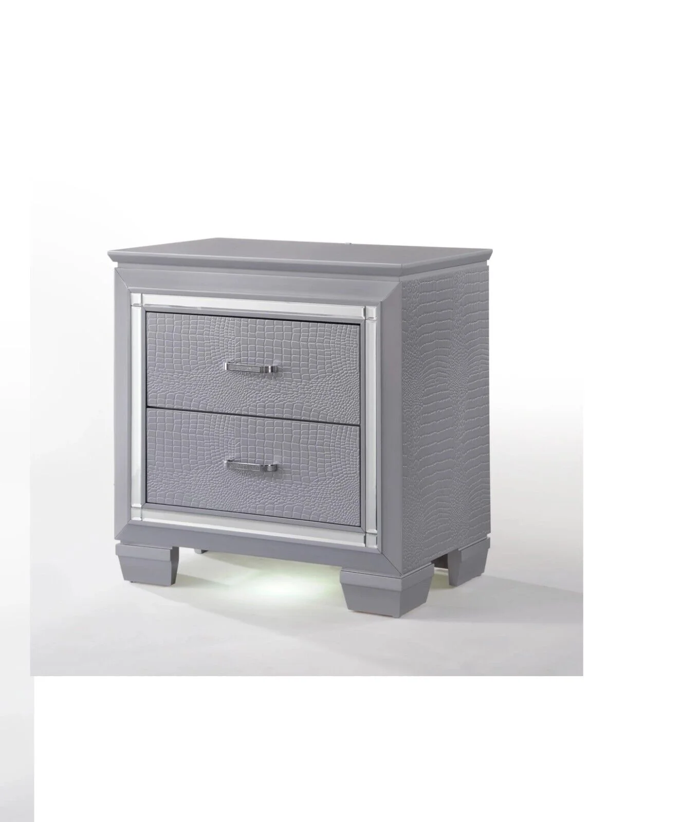 Beautiful 3pc Queen Size LED Upholstered HB Bed Chest Nightstand Wood Bedroom Furniture Set