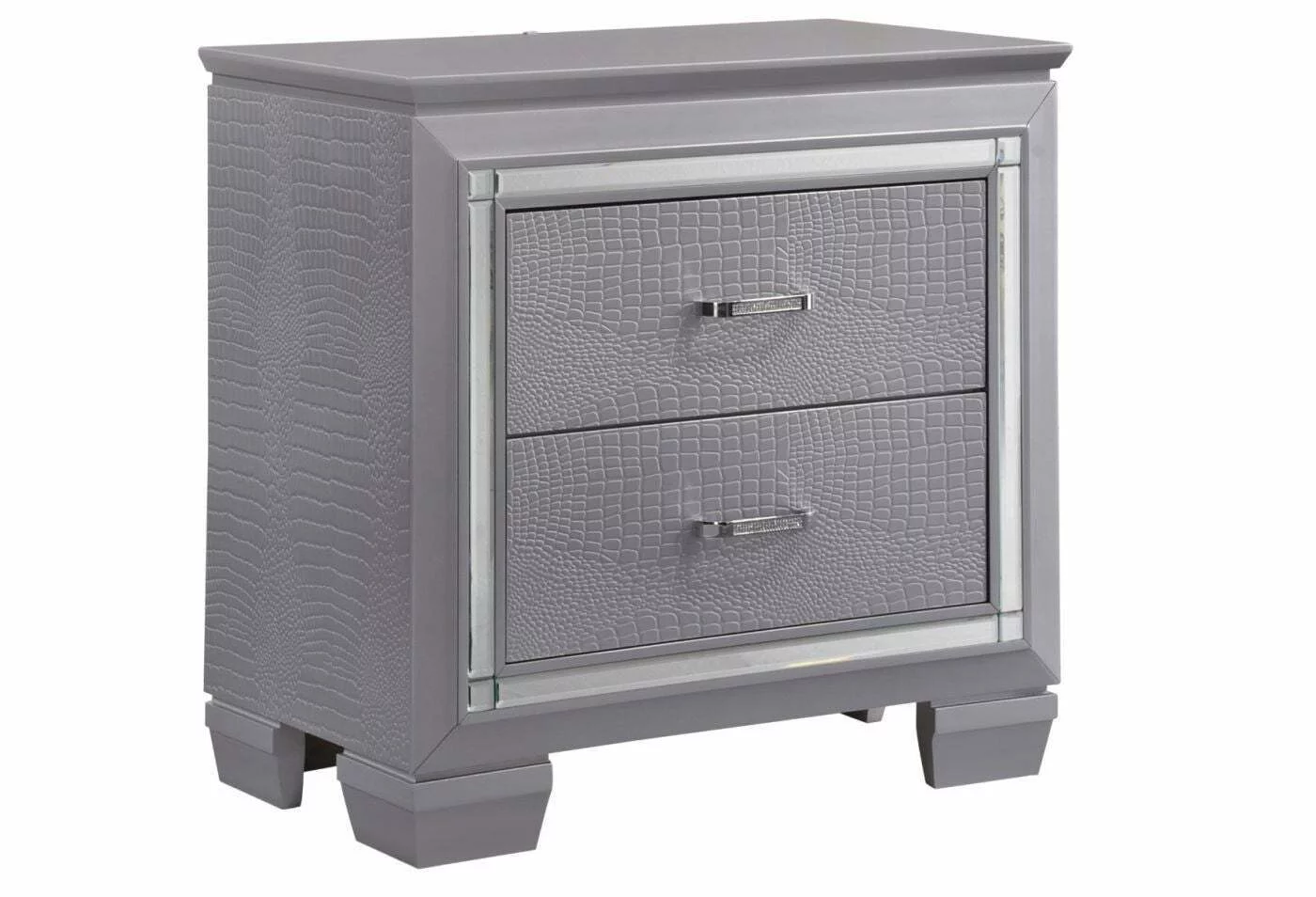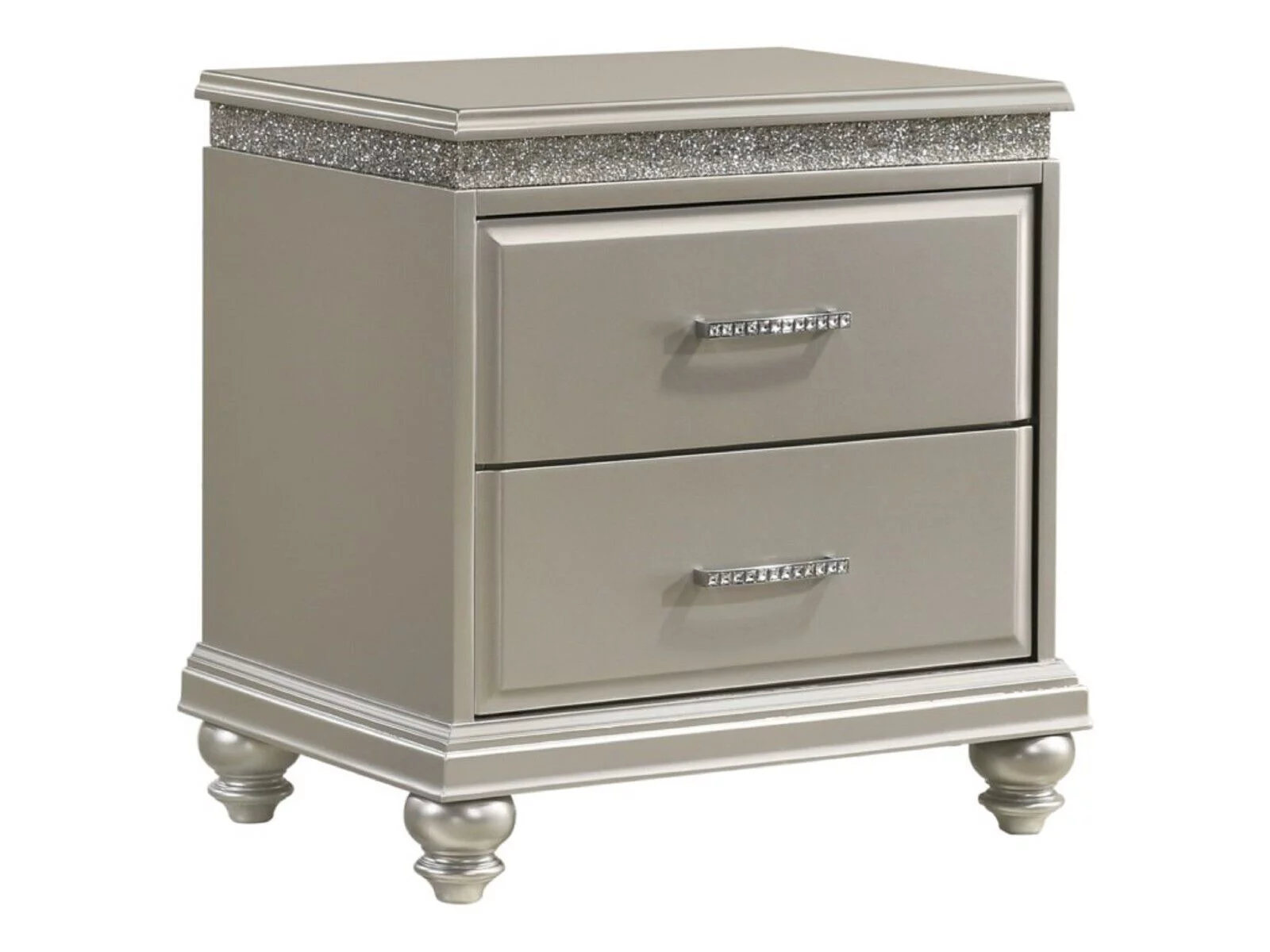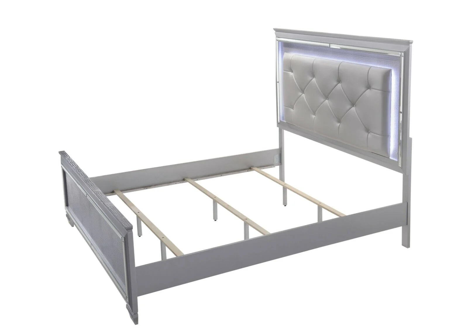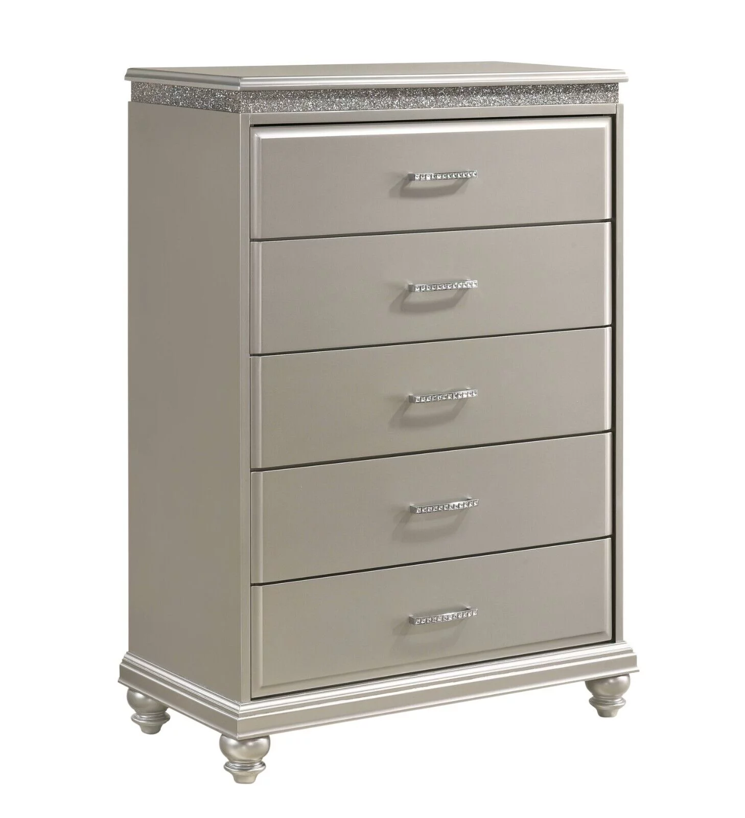 6pc Traditional Style King Panel Bed Dresser Mirror Nightstand Chest Wooden Bedroom Furniture Set Metallic Silver Finish