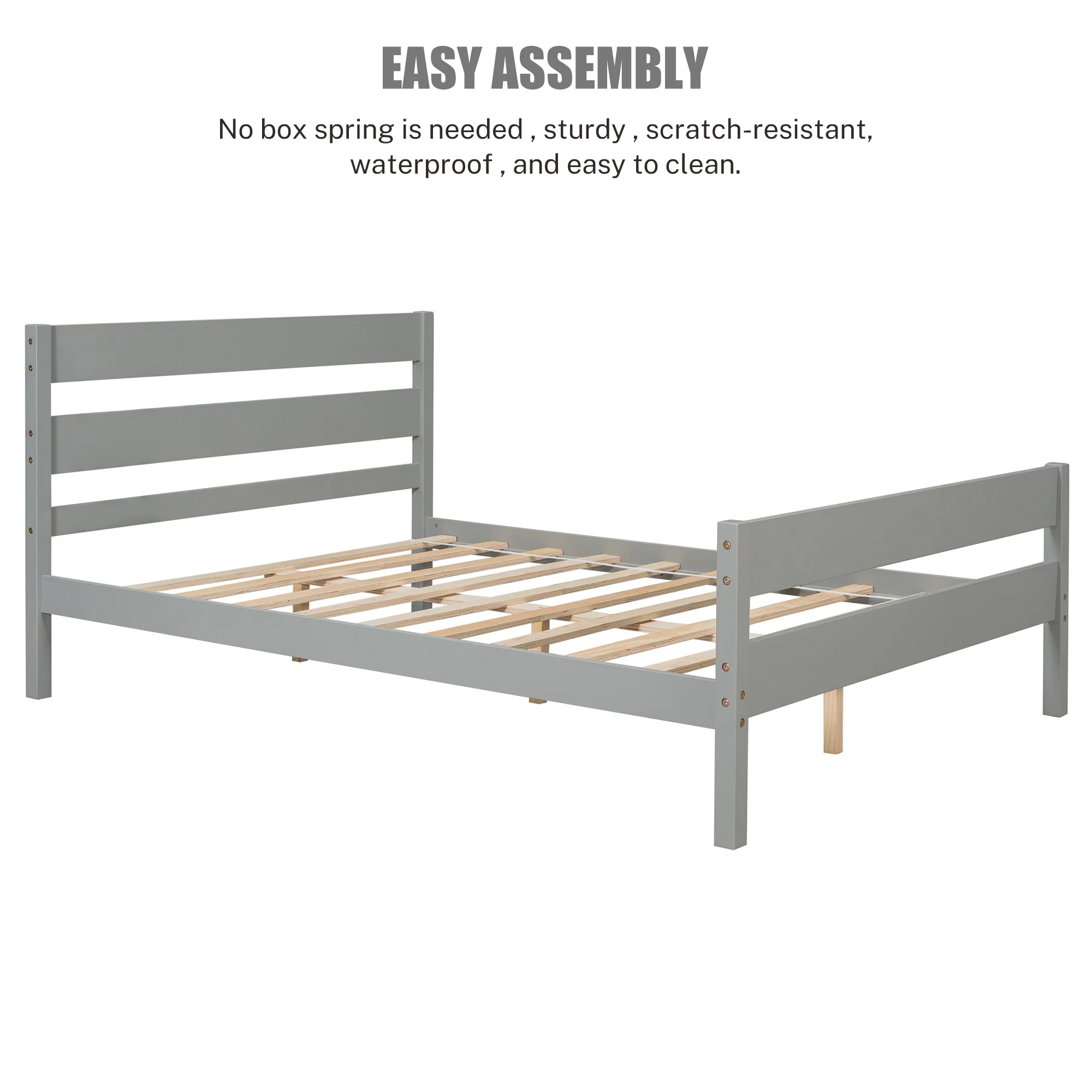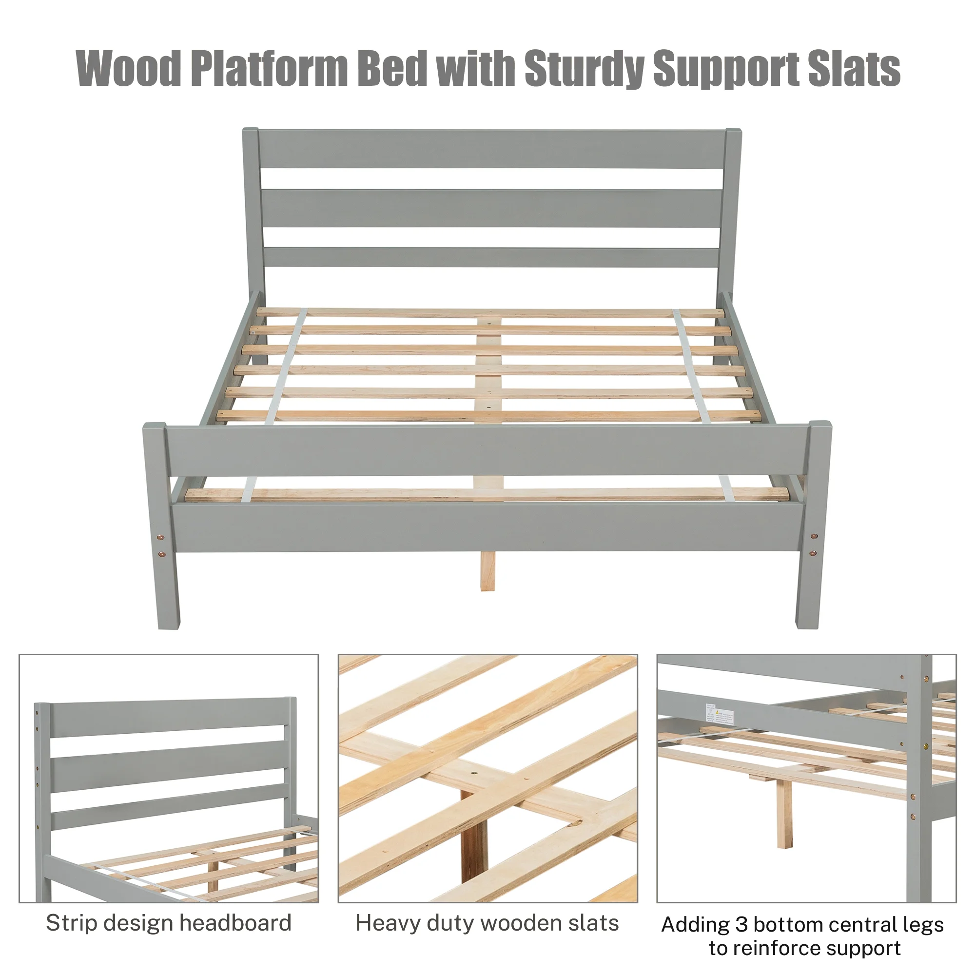 Easyfashion Wooden Platform Bed Frame with Paneled Headboard,Queen,Wood