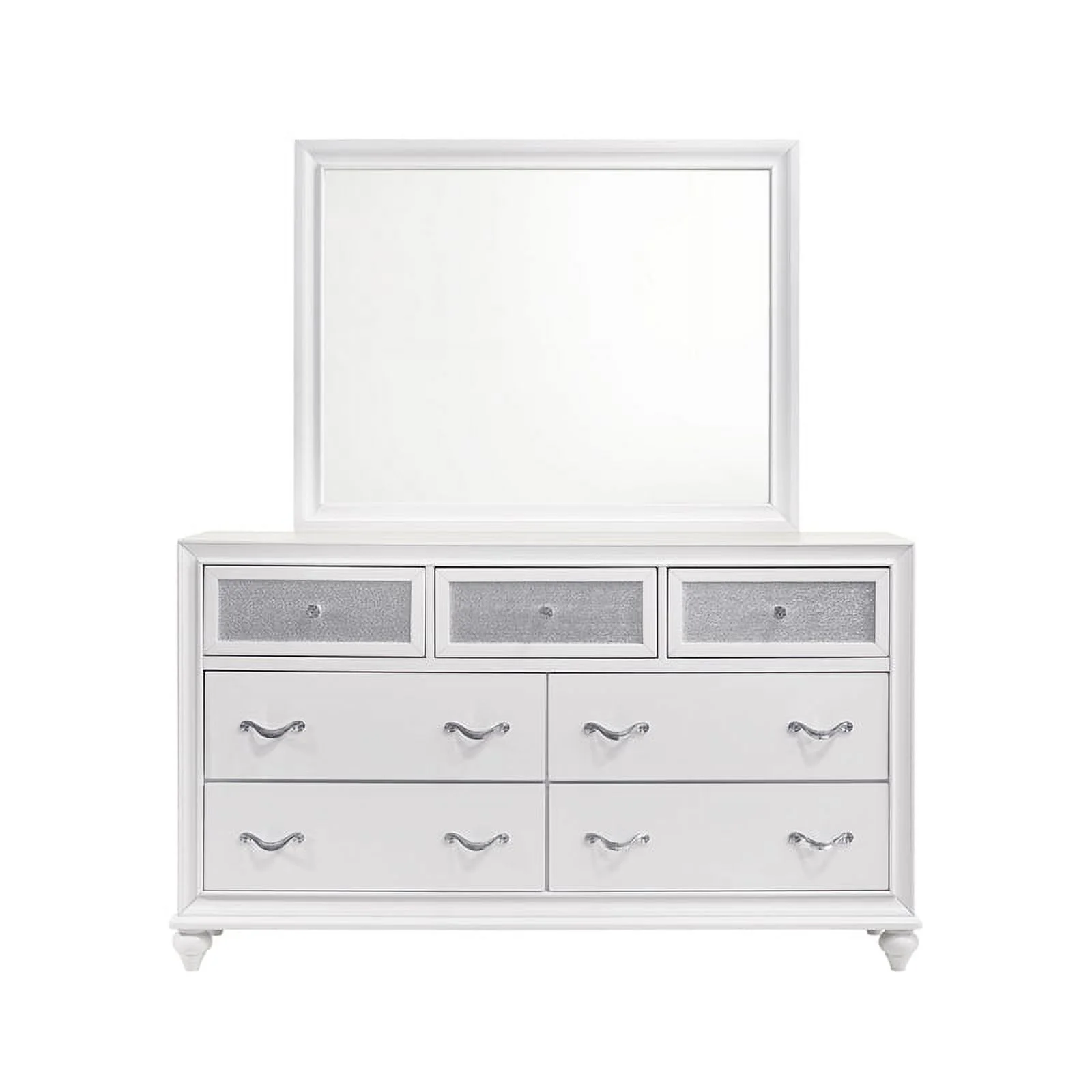 Transitional Style Bedroom White Finish 4pc Bedroom Set Eastern King Size Bed Dresser Mirror Nightstand Furniture