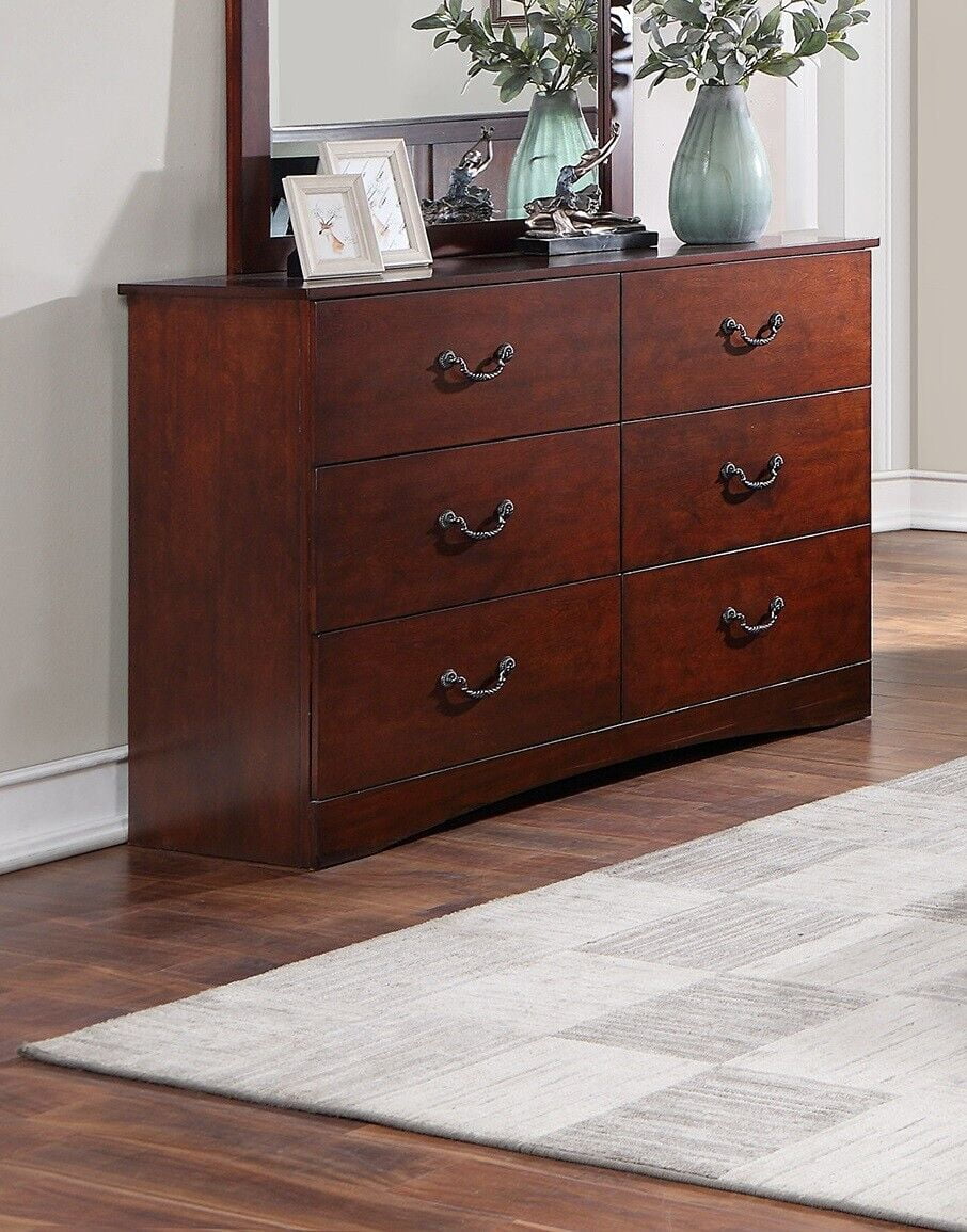 Traditional Formal 6pc Set King Size Faux Leather Upholstery Panel Bed Cherry Finish Marble Top Solid Wood Furniture