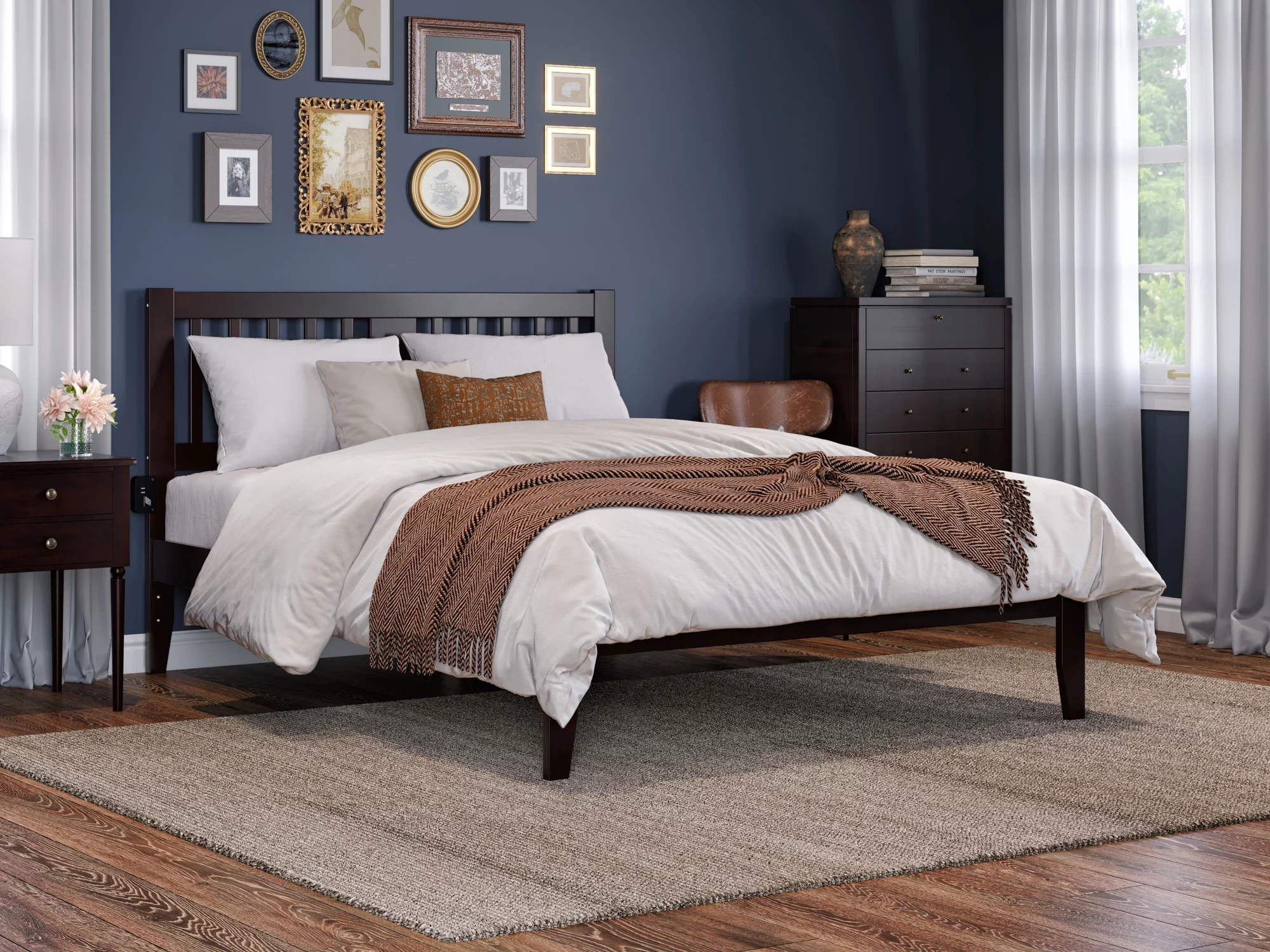 AFI Tahoe 14" Queen Wood Platform Bed Frame with Slatted Headboard, Espresso