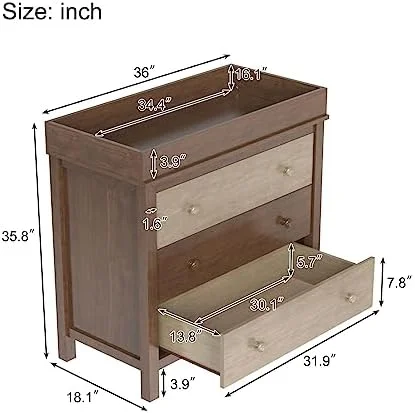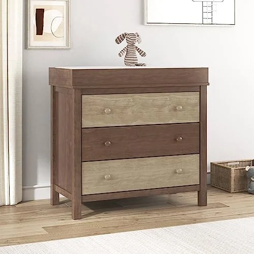 GEROBOOM 3-Drawer Changer Dresser with Removable Changing Tray Wooden Drawers of Chest Organizer for Nursery Bedroom
