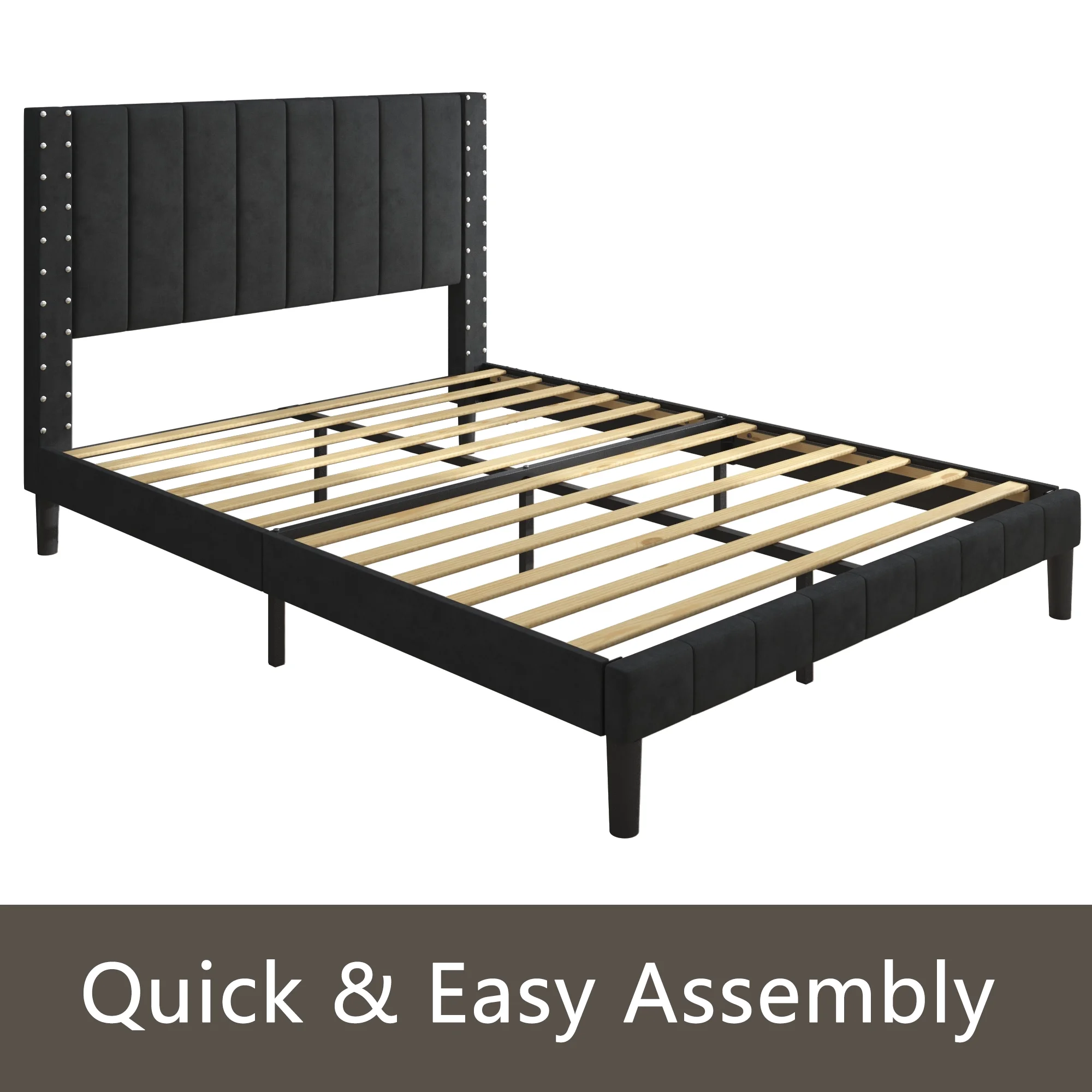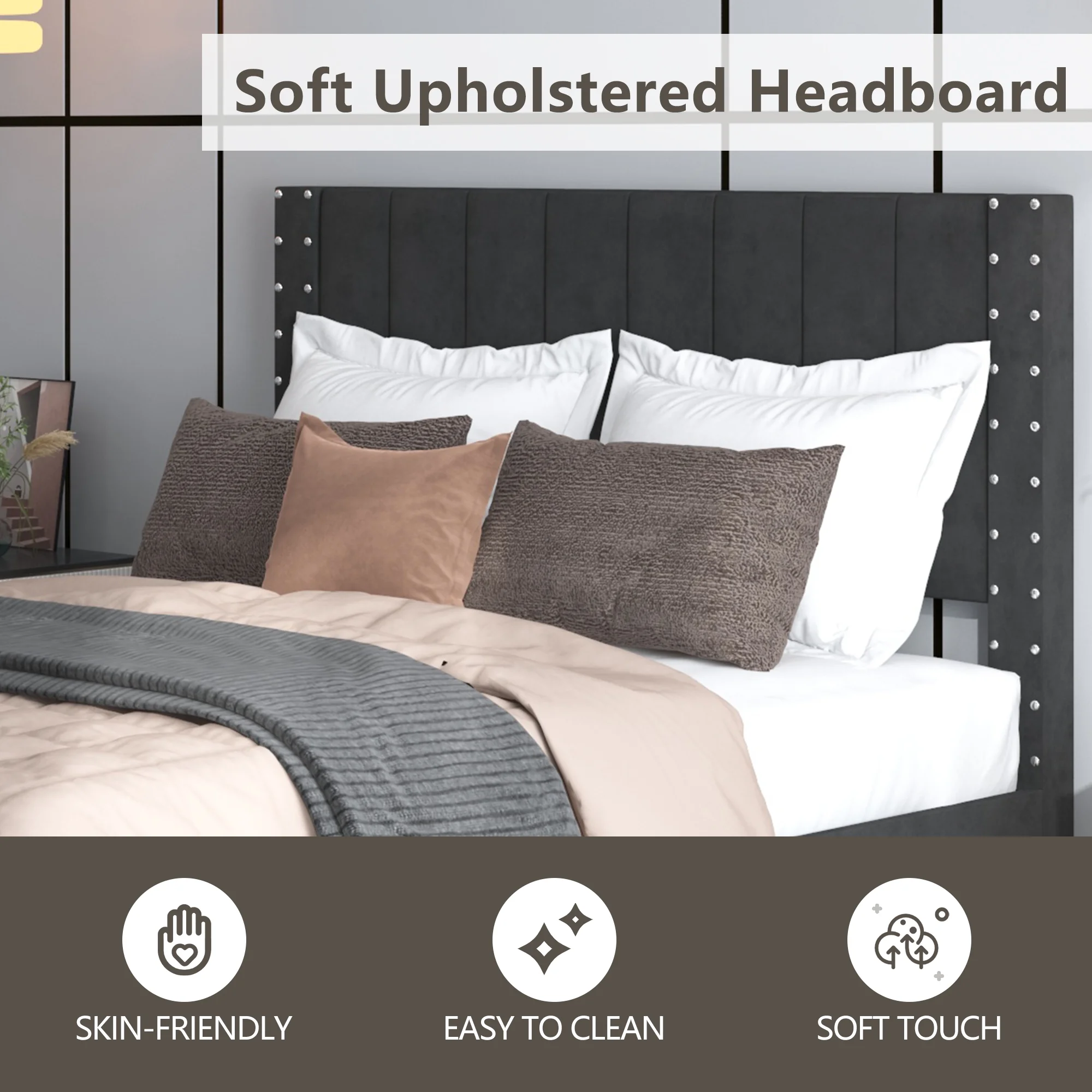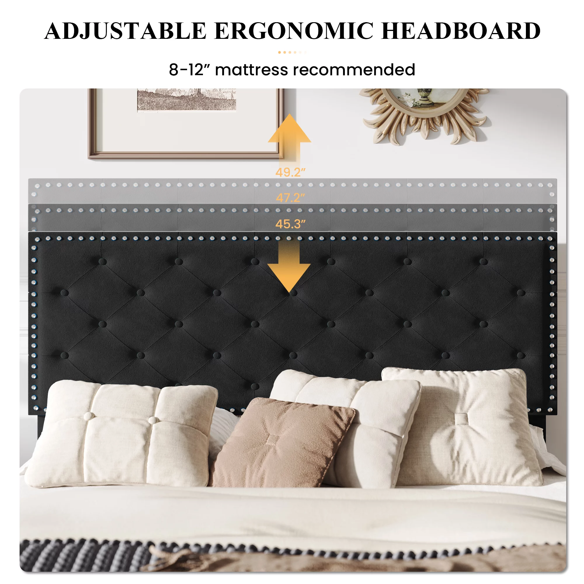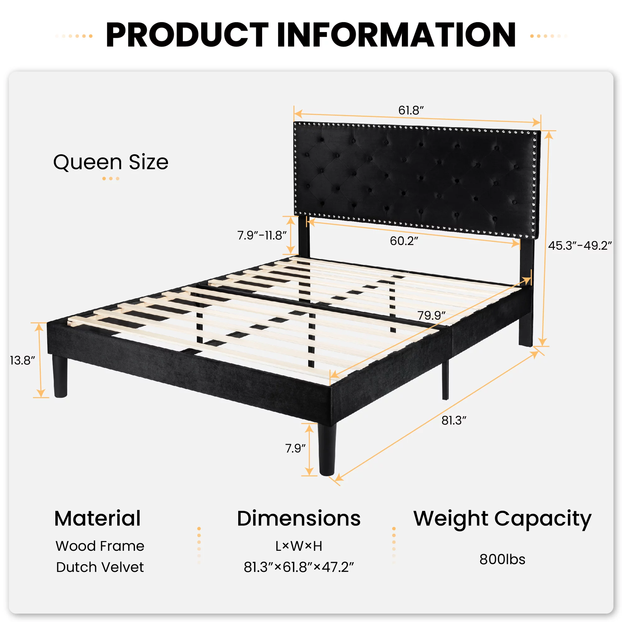 SHA CERLIN Black Queen Size Velvet Platform Bed Frame with Adjustable Headboard & Underbed Storage, Adult