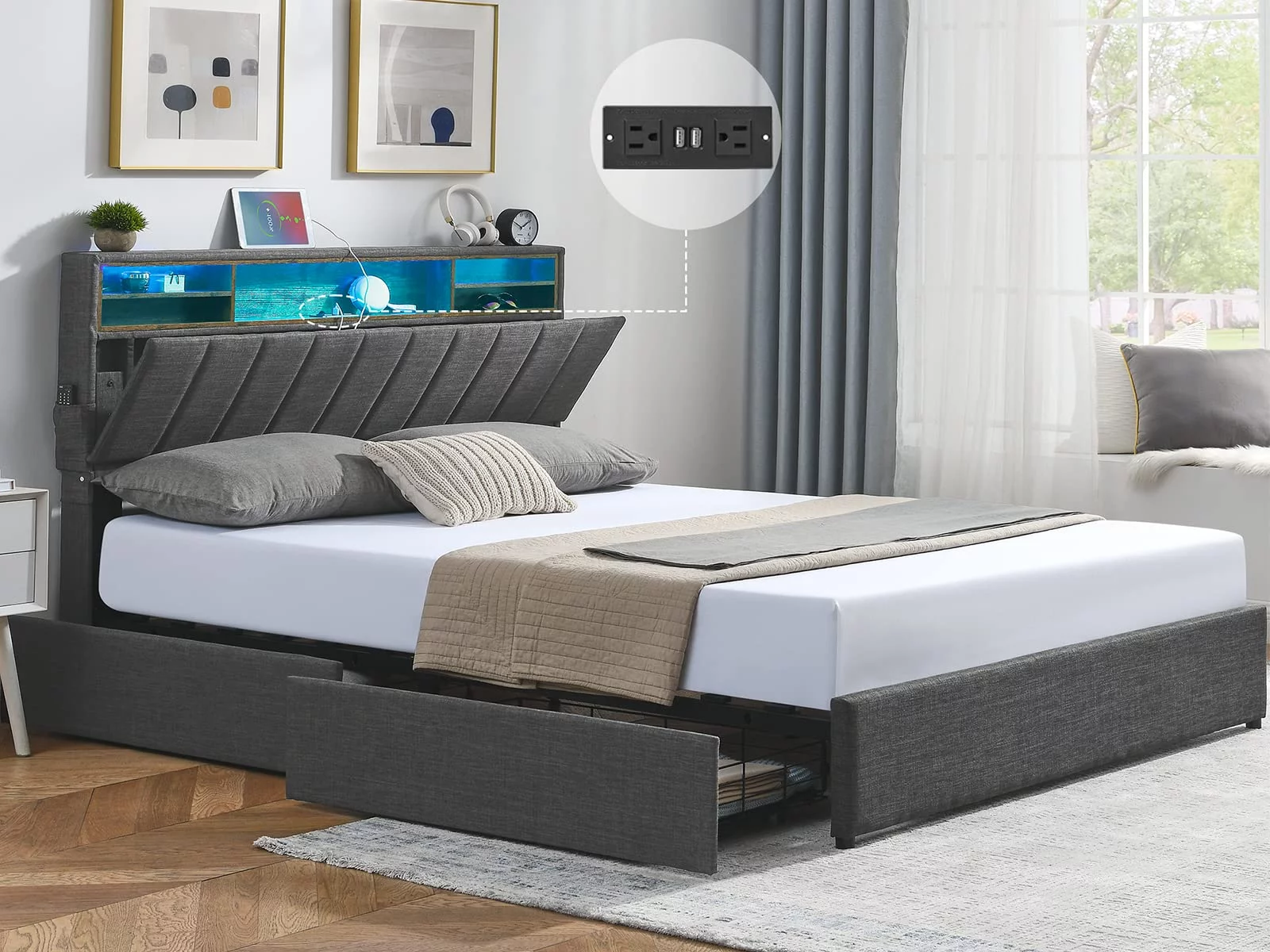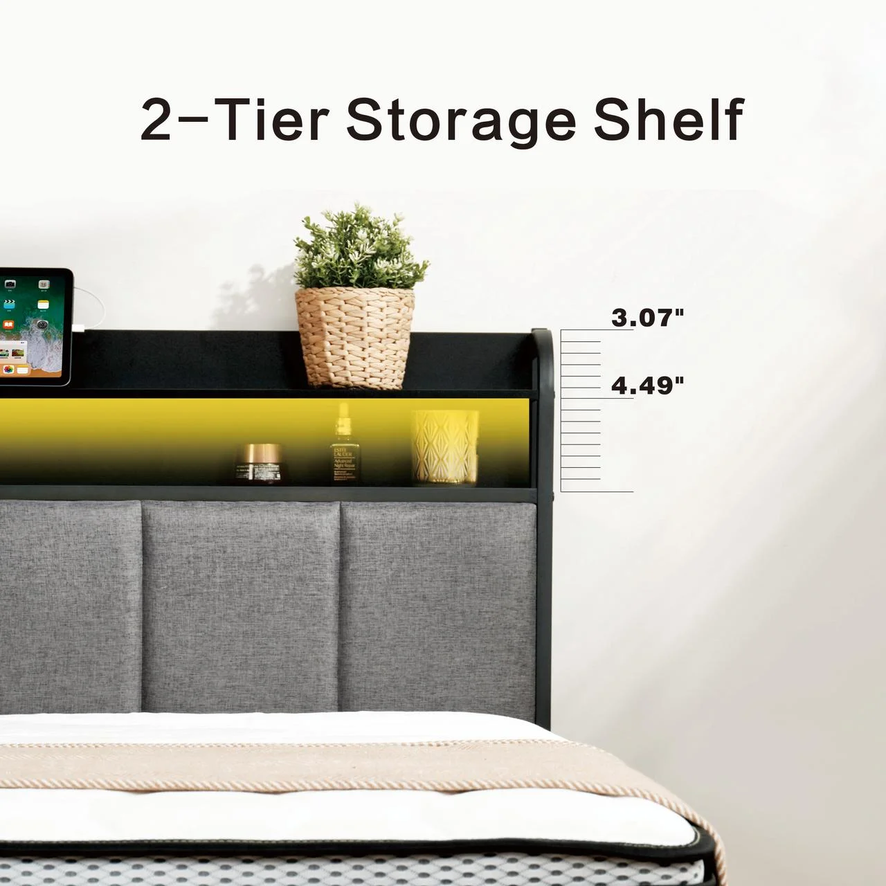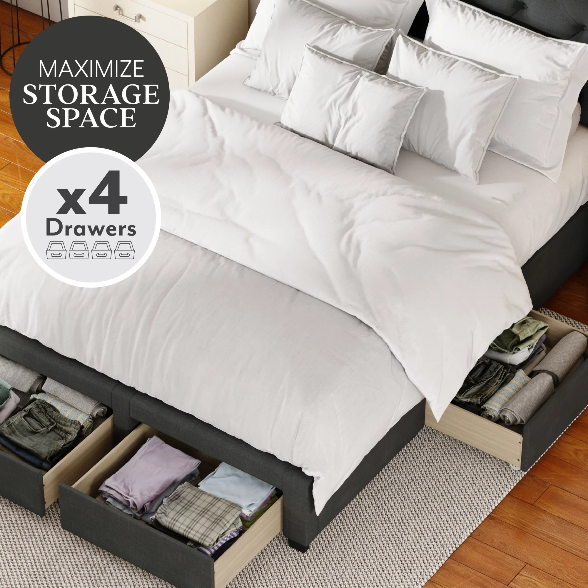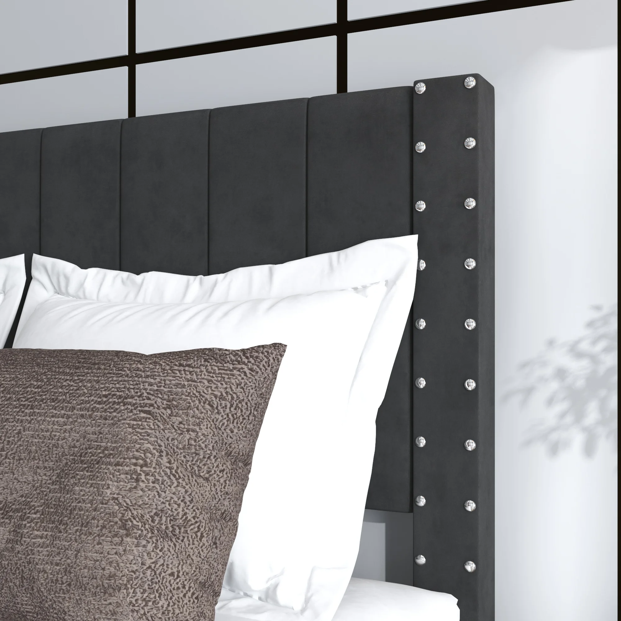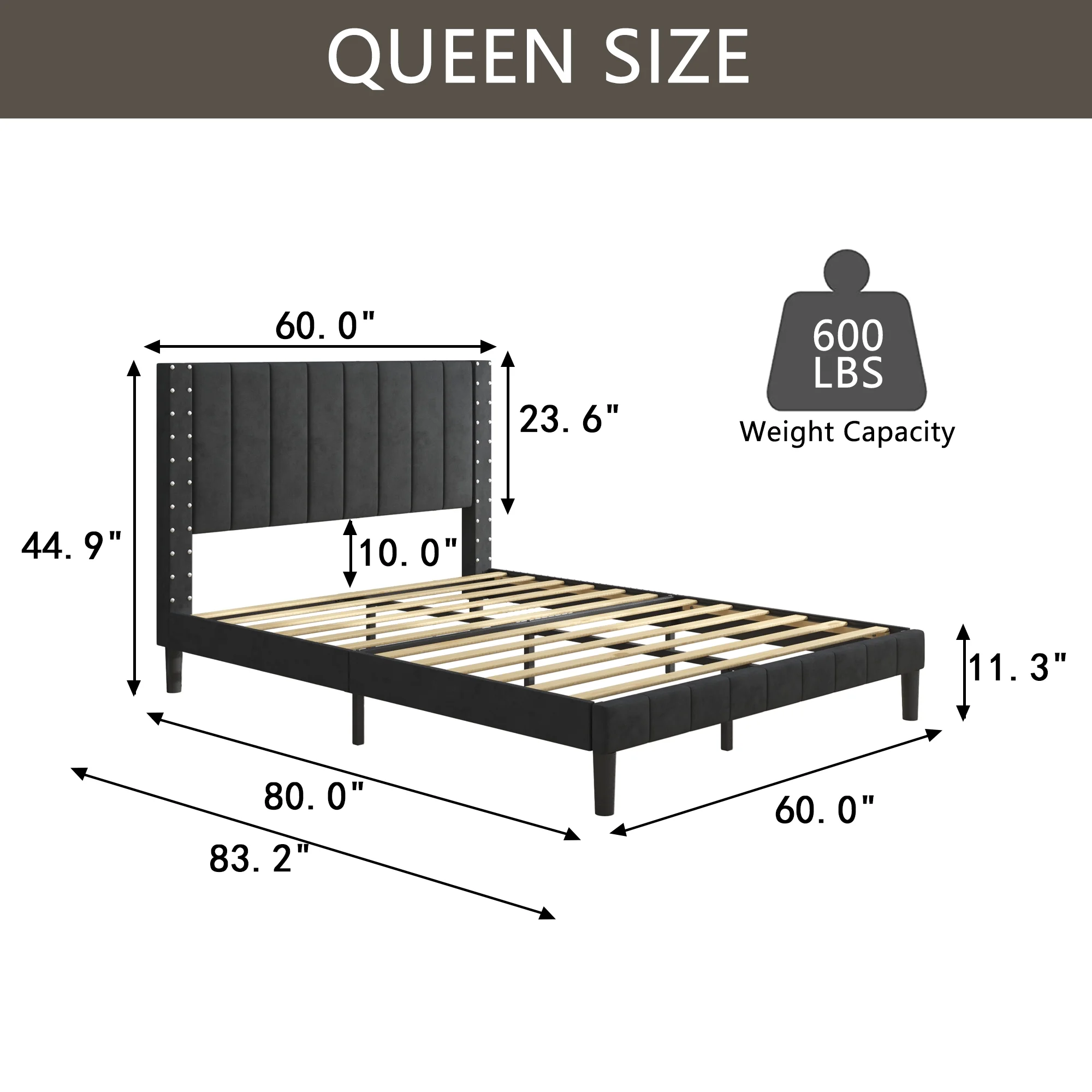 SHA CERLIN Black Queen Size Velvet Platform Bed Frame with Adjustable Headboard & Underbed Storage, Adult