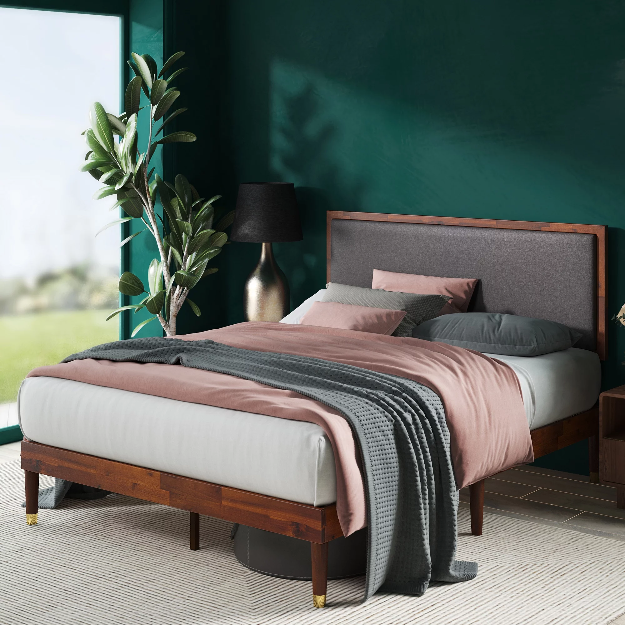 Zinus Amelia 41" Wood Platform Bed Frame with Upholstered Headboard, Queen