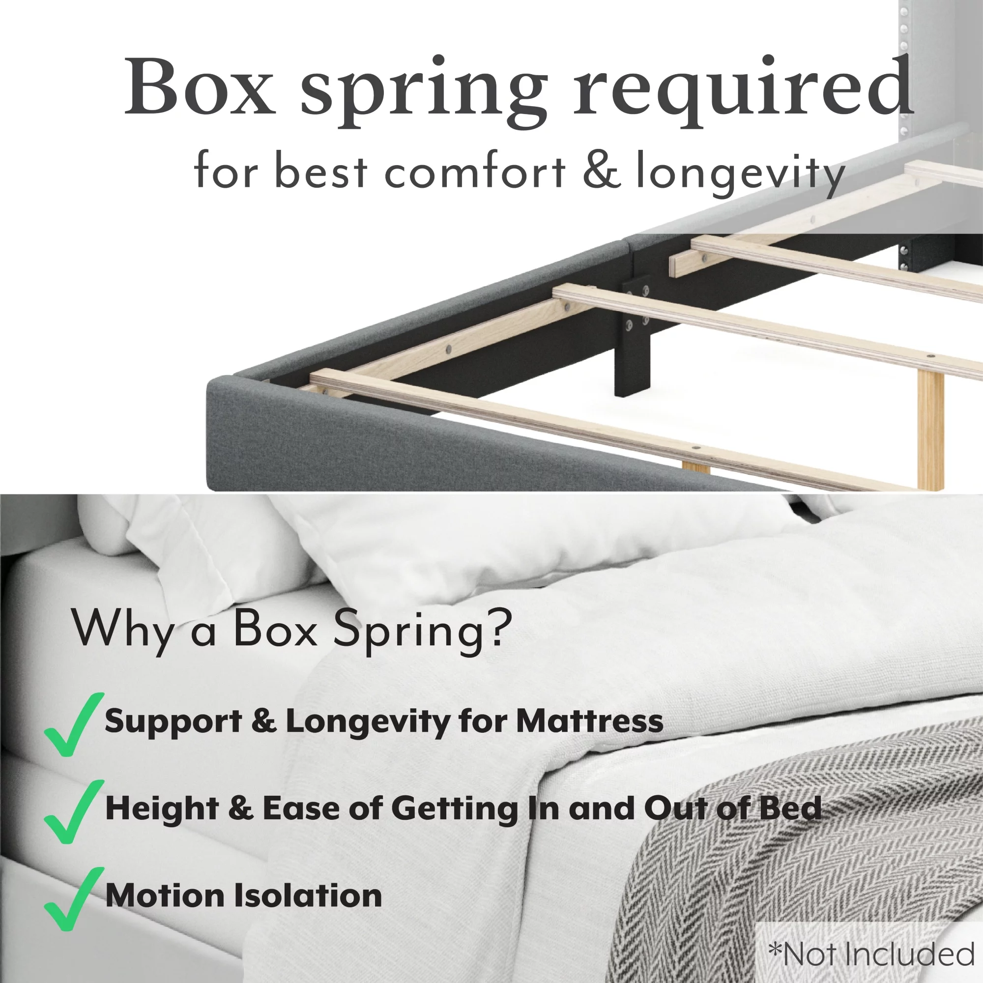 Zinus Lottie 35" Upholstered Platform Bed Frame with Short Headboard, Grey, Queen