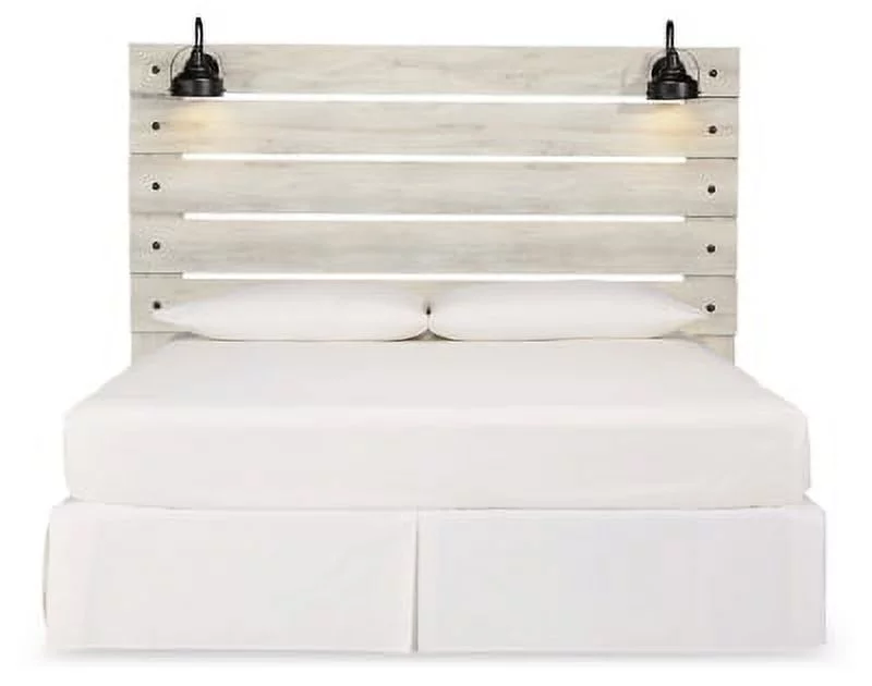 Signature Design by Ashley Cambeck Farmhouse Panel Headboard ONLY with USB Charging Stations, King, Whitewash