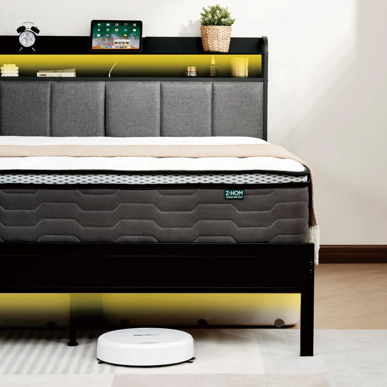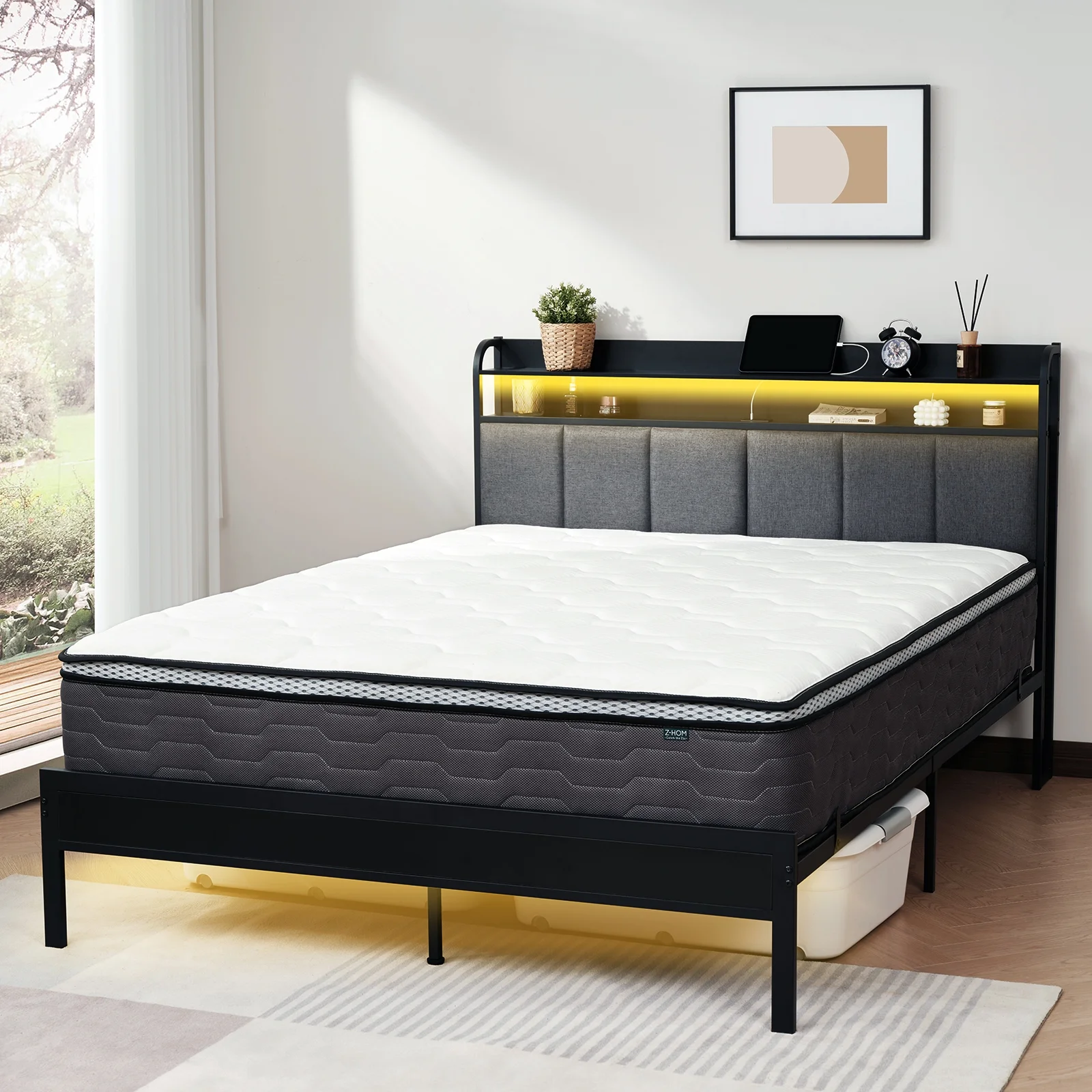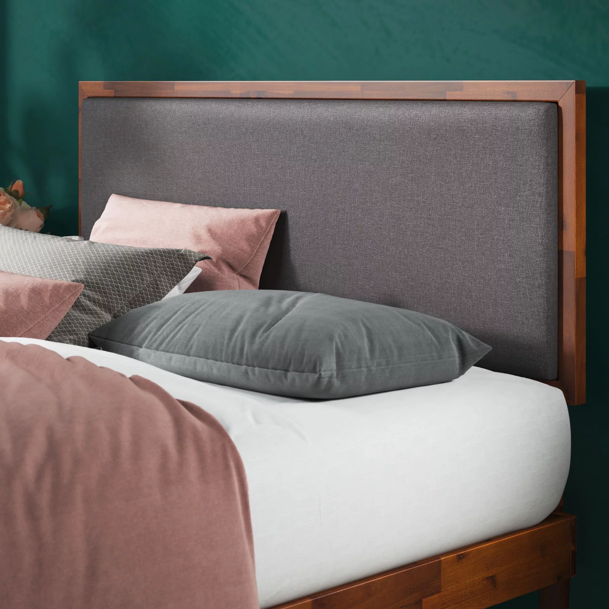 Zinus Raymond 38" Wood Platform Bed Frame with Adjustable Upholstered Headboard, Queen