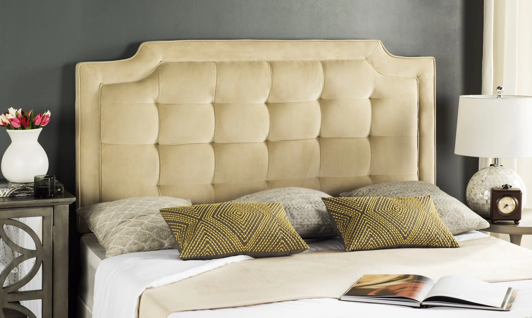 SAFAVIEH Alexia Modern Glam Upholstered Headboard with Nail Heads, King, White