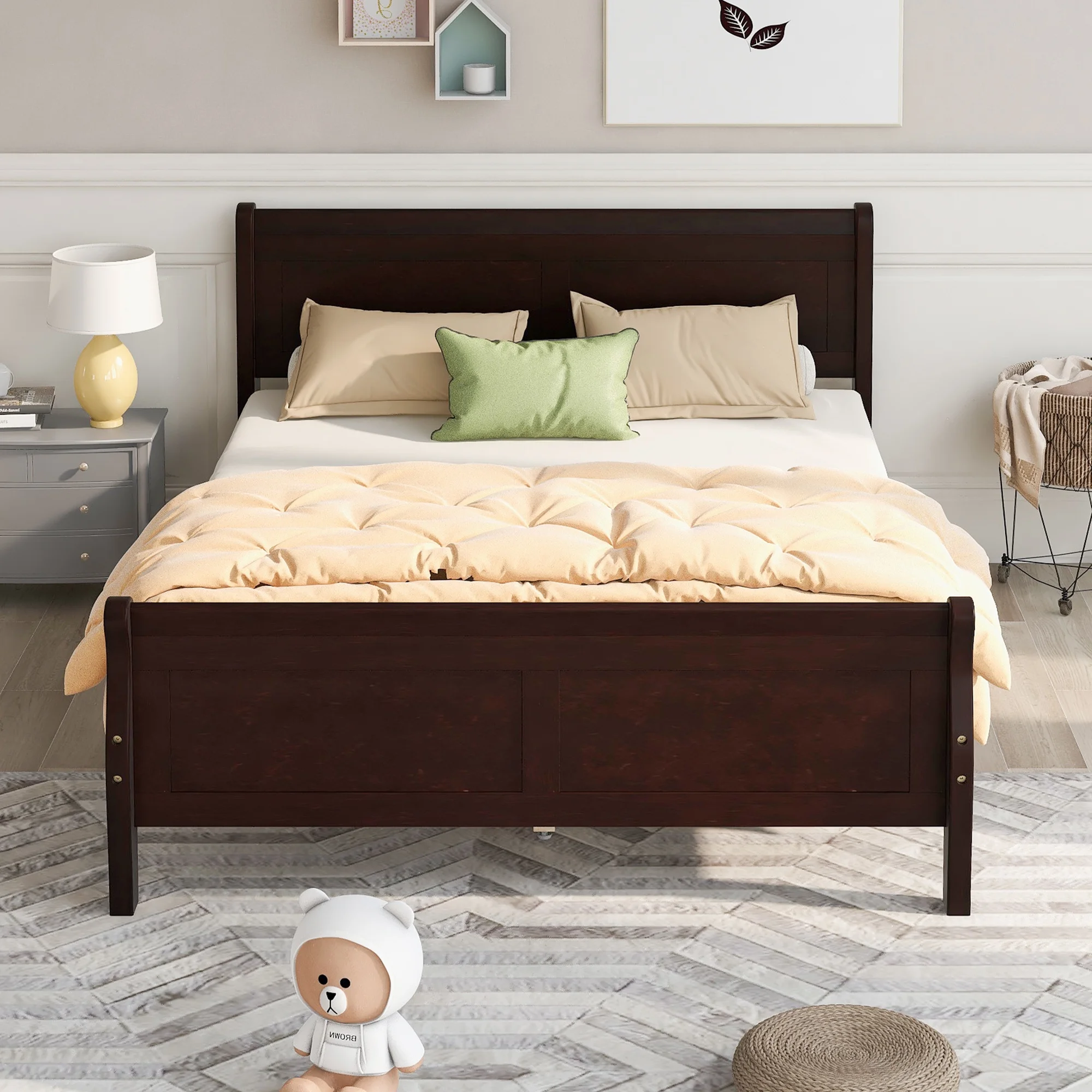 SYNGAR Espresso Solid Wood Queen Bed Frame with Headboard and Footboard, No Box Spring Needed