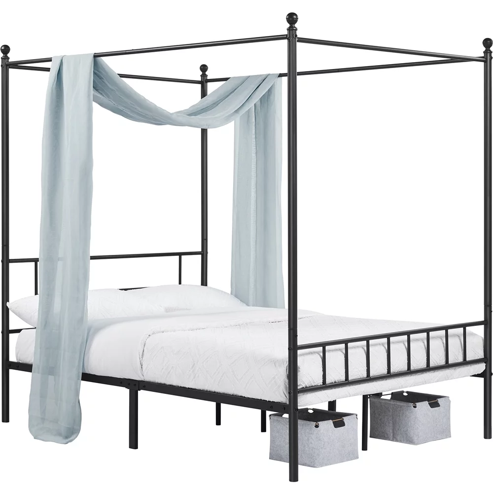 Yaheetech Metal Canopy Bed Frame, Four-poster Canopied Platform Bed with Headboard and Footboard, Queen, Black