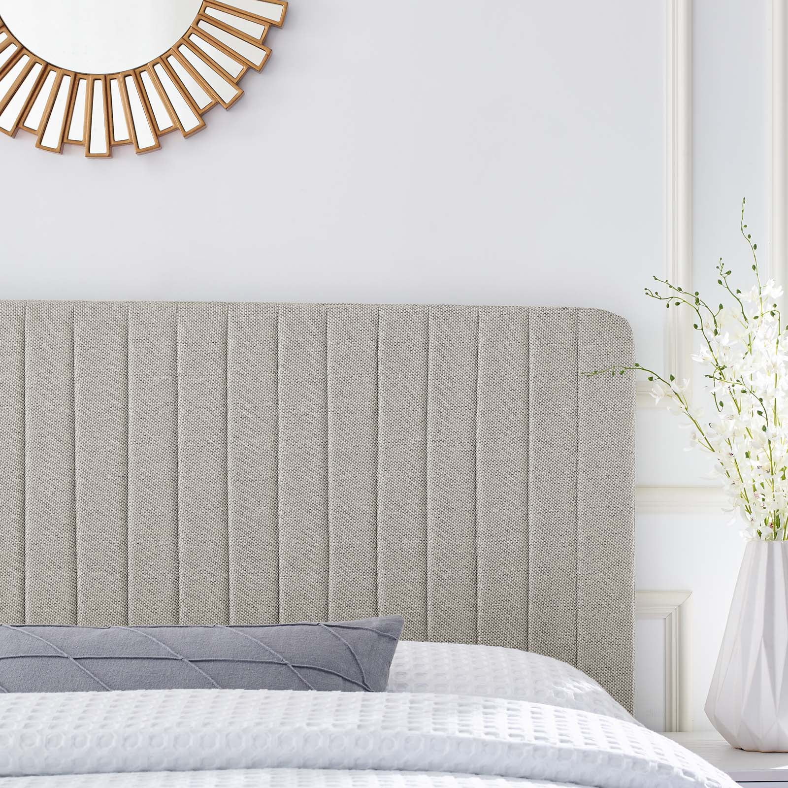 Modway Milenna Channel Tufted Upholstered Fabric King/California King Headboard in Oatmeal