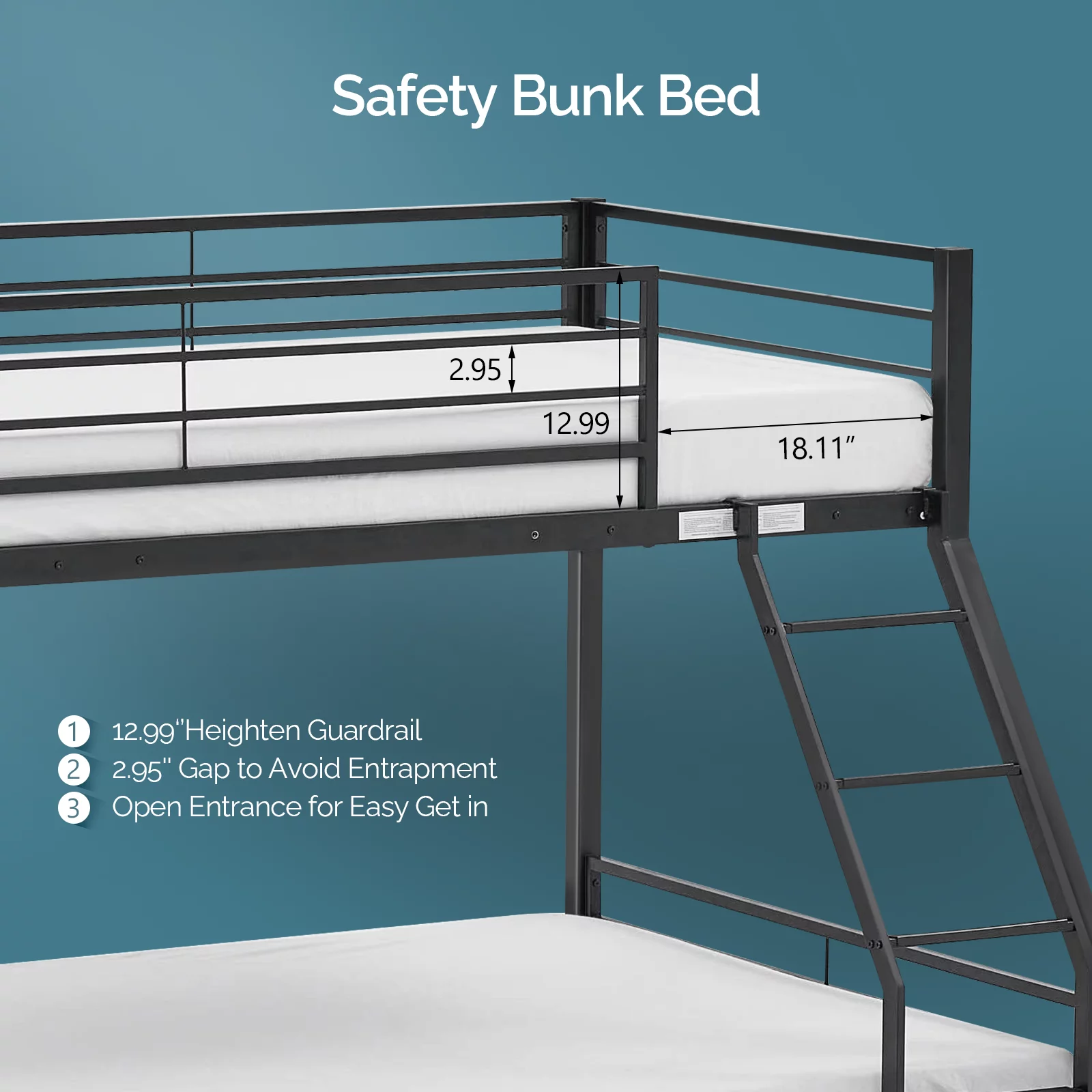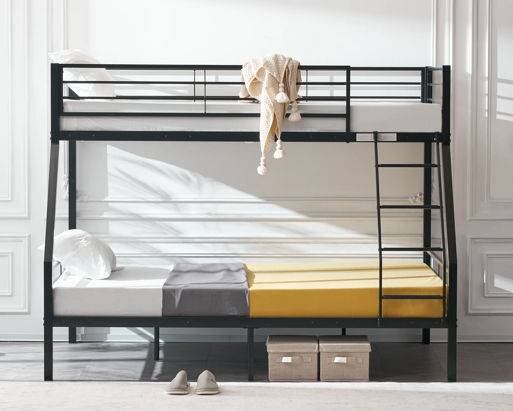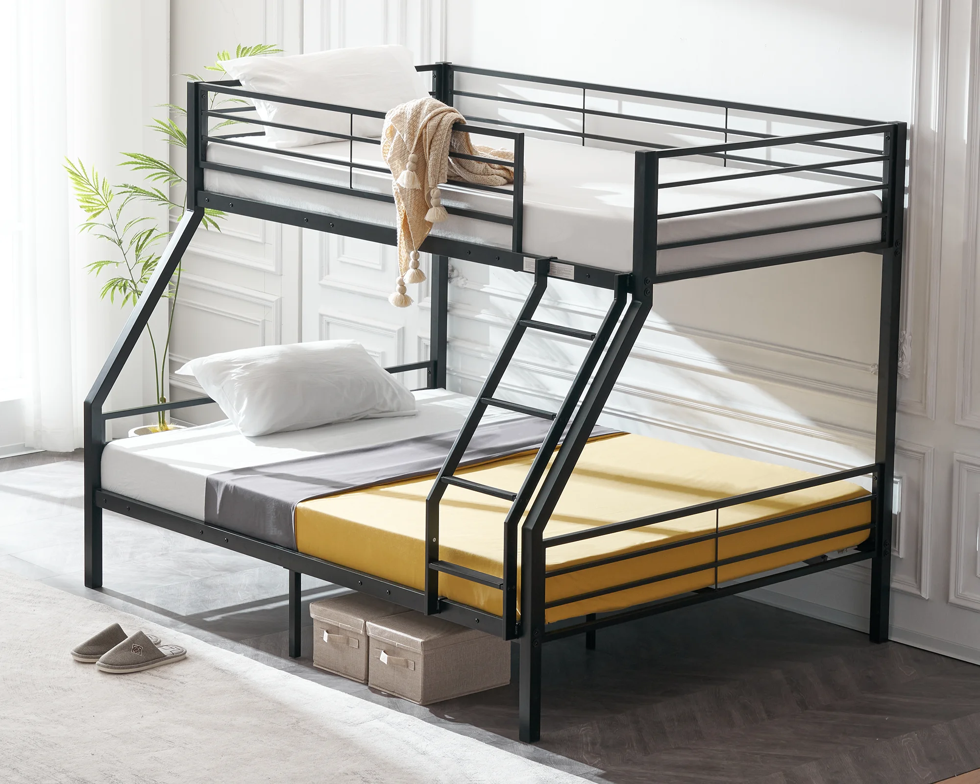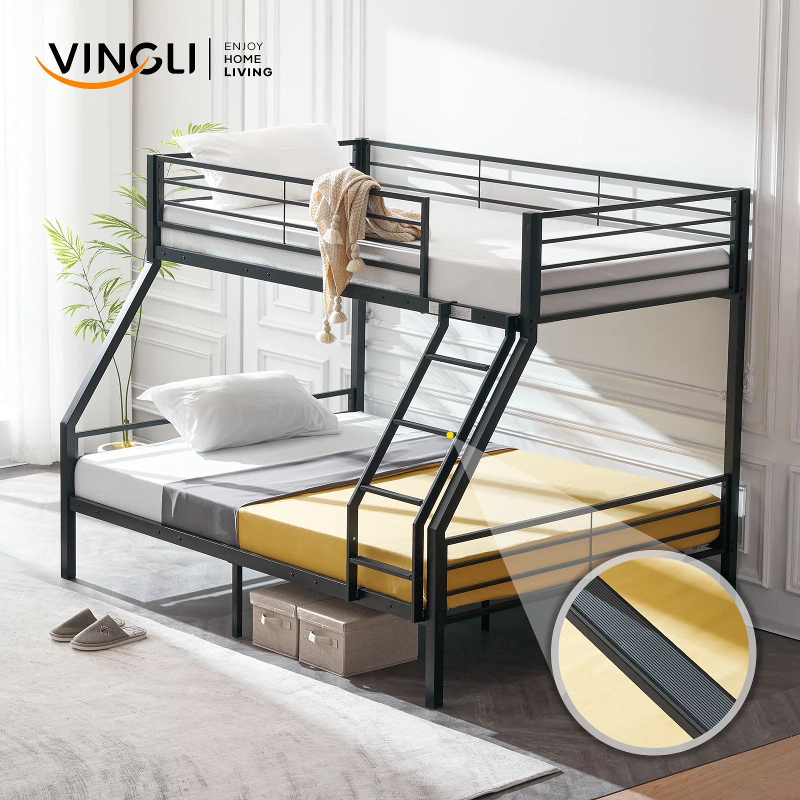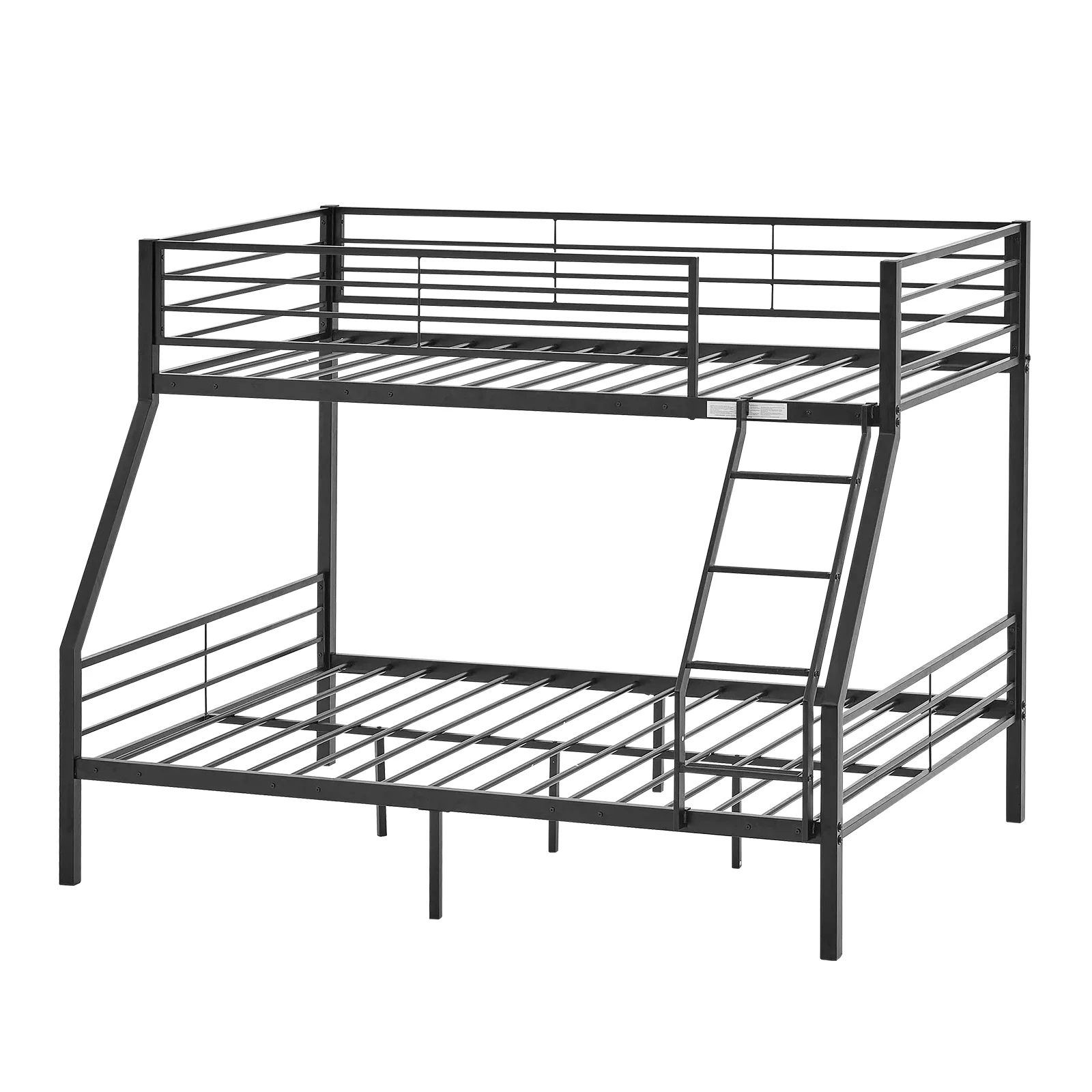 VINGLI Bunk Bed Twin over Full Sturdy Metal Bed Frame with Flat Ladder and Guardrail for Adults/ Children/Teens, Black