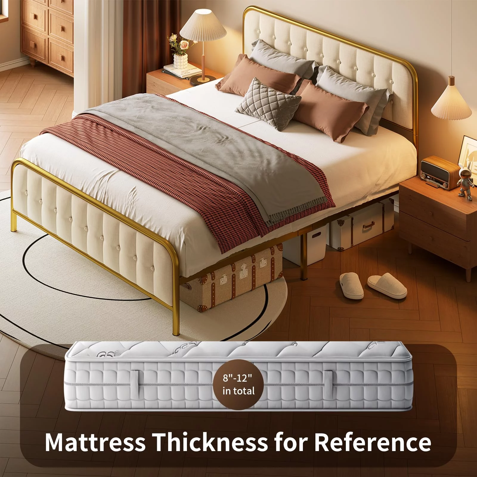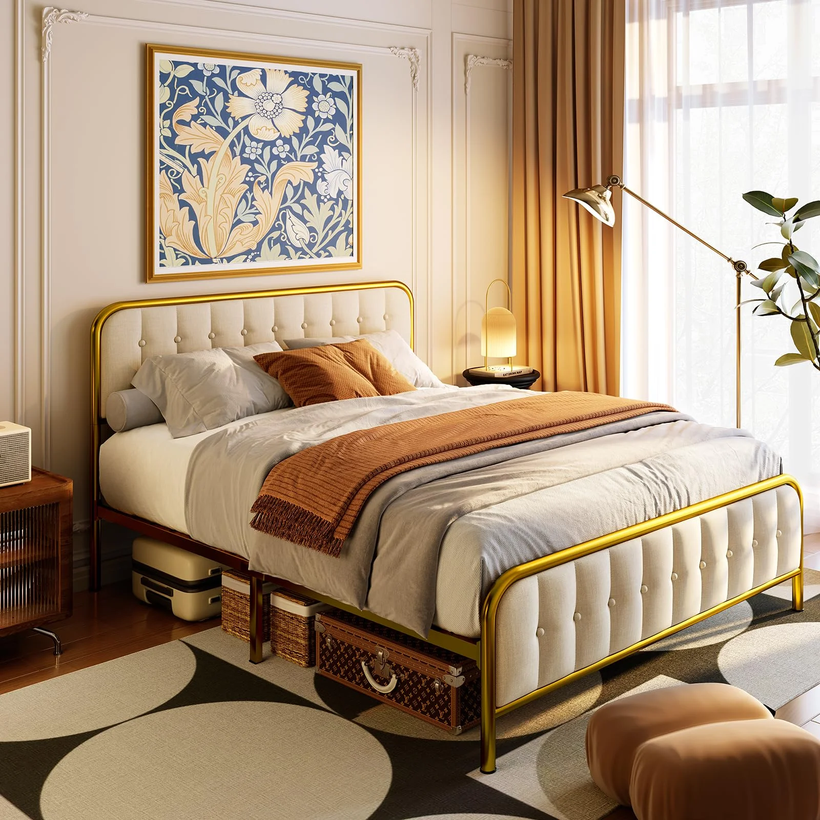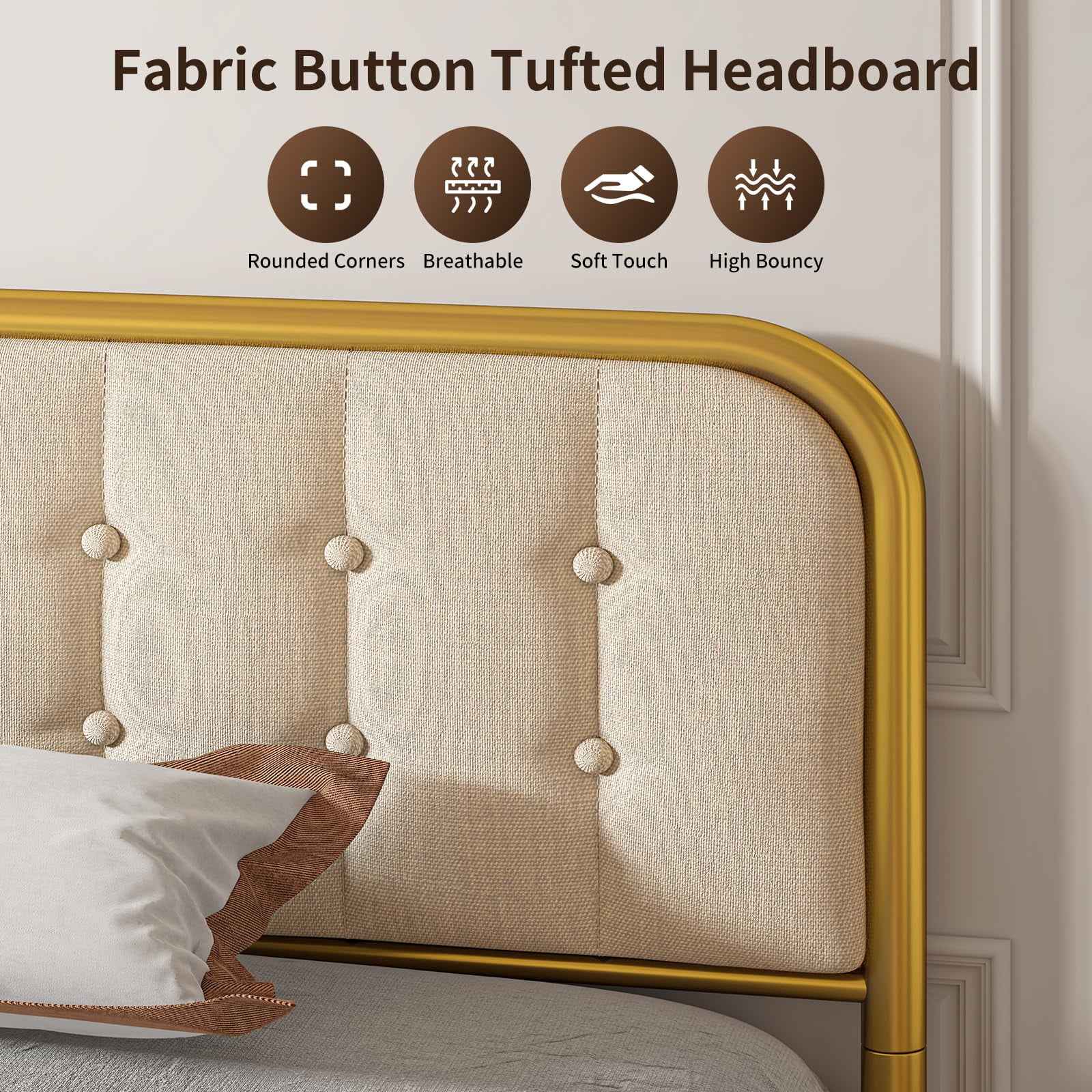 Lofka Full Size Bed Frame with Headboard and Metal Frame, Noise-Free Design, Beige