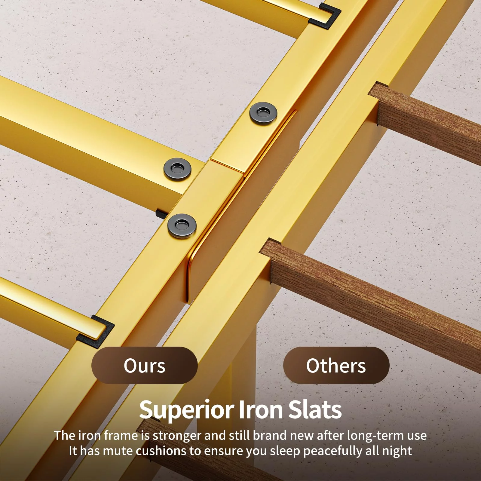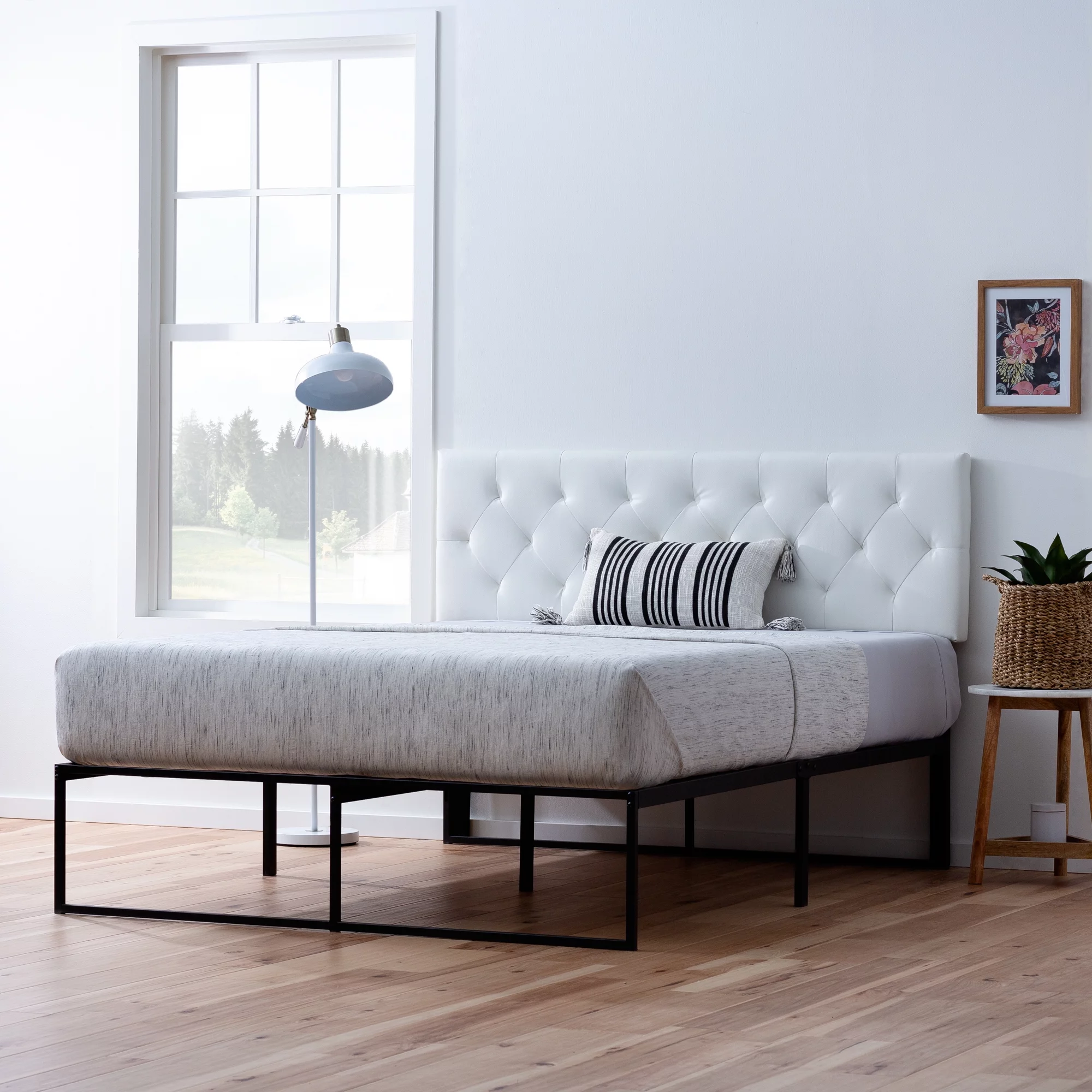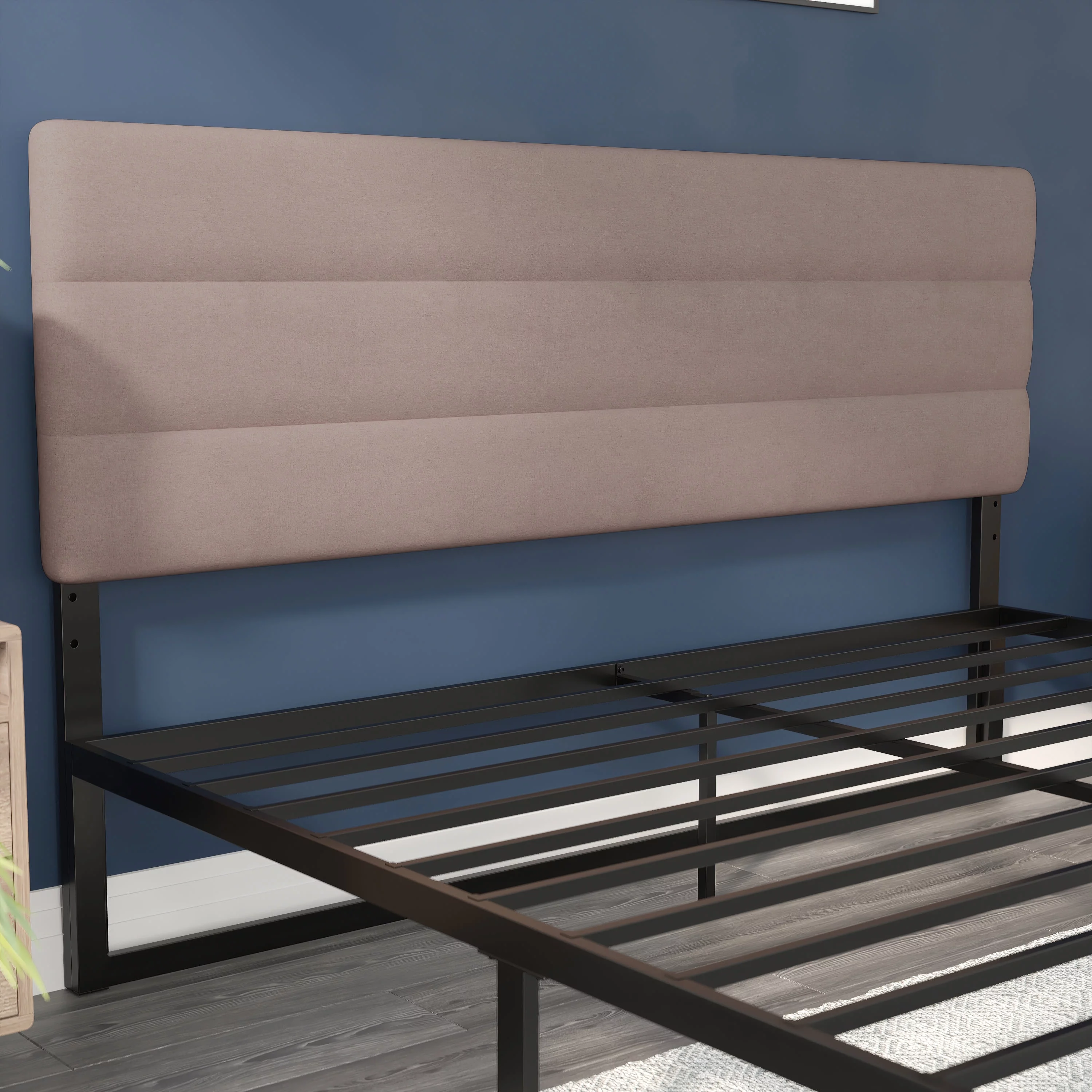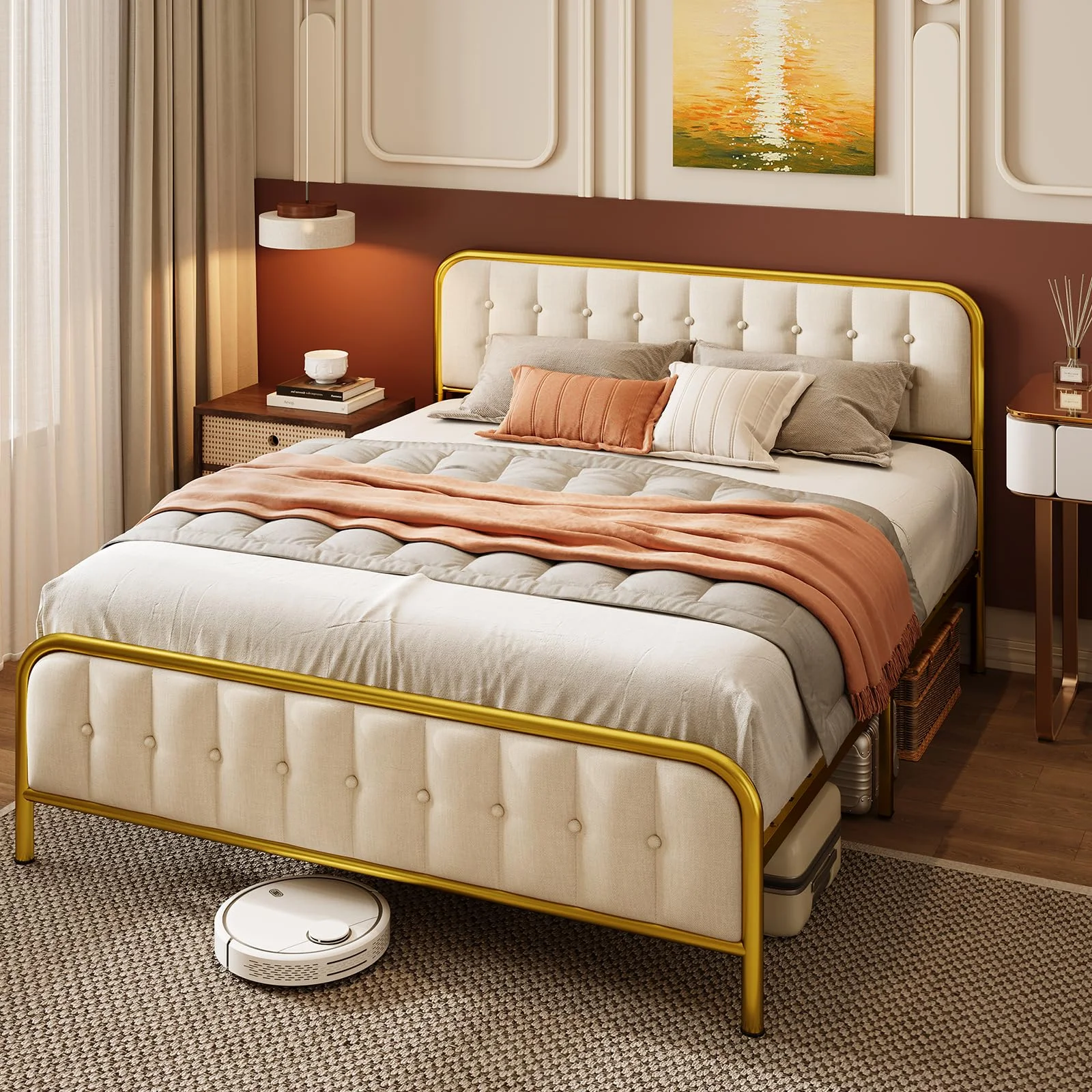 Lofka Full Size Bed Frame with Headboard and Metal Frame, Noise-Free Design, Beige
