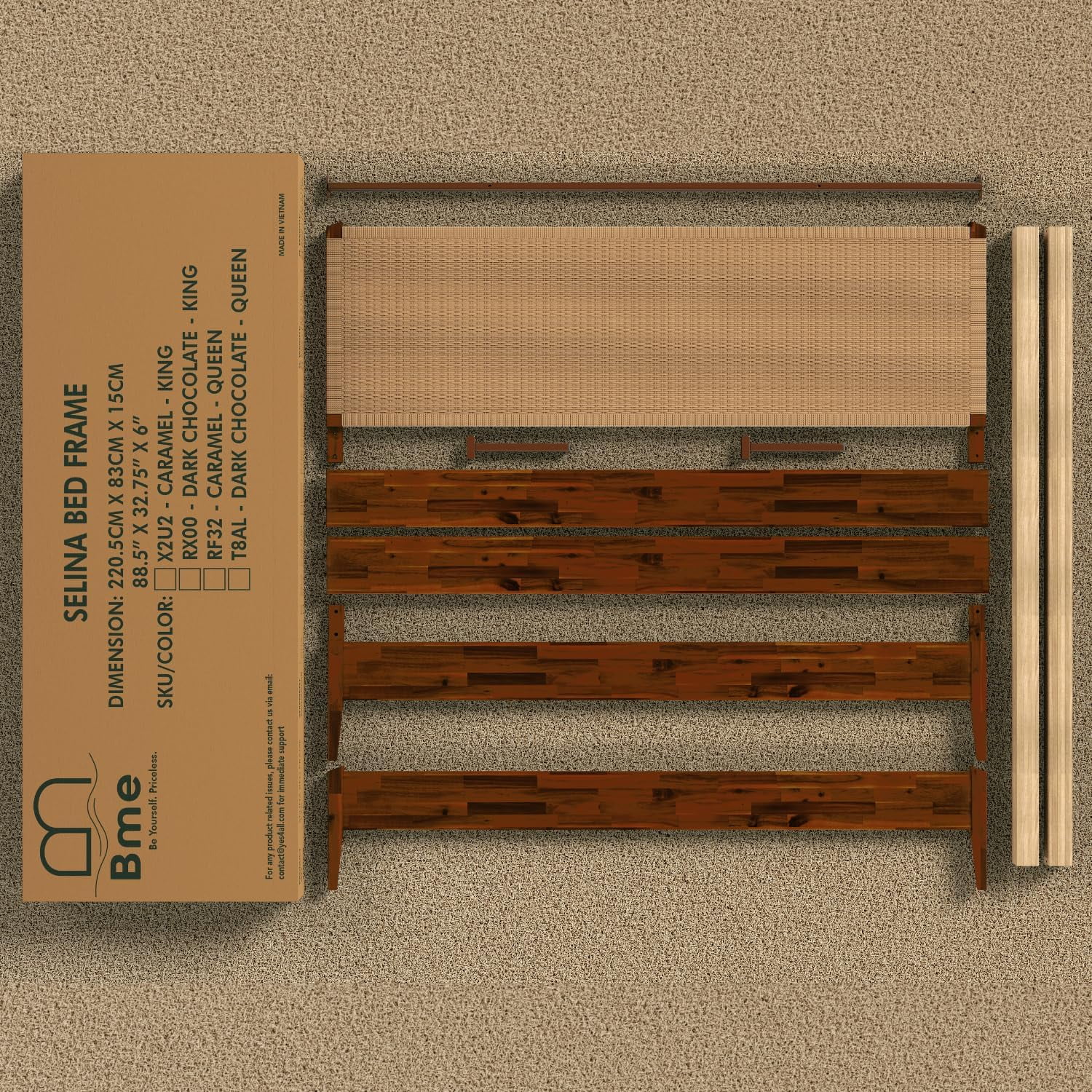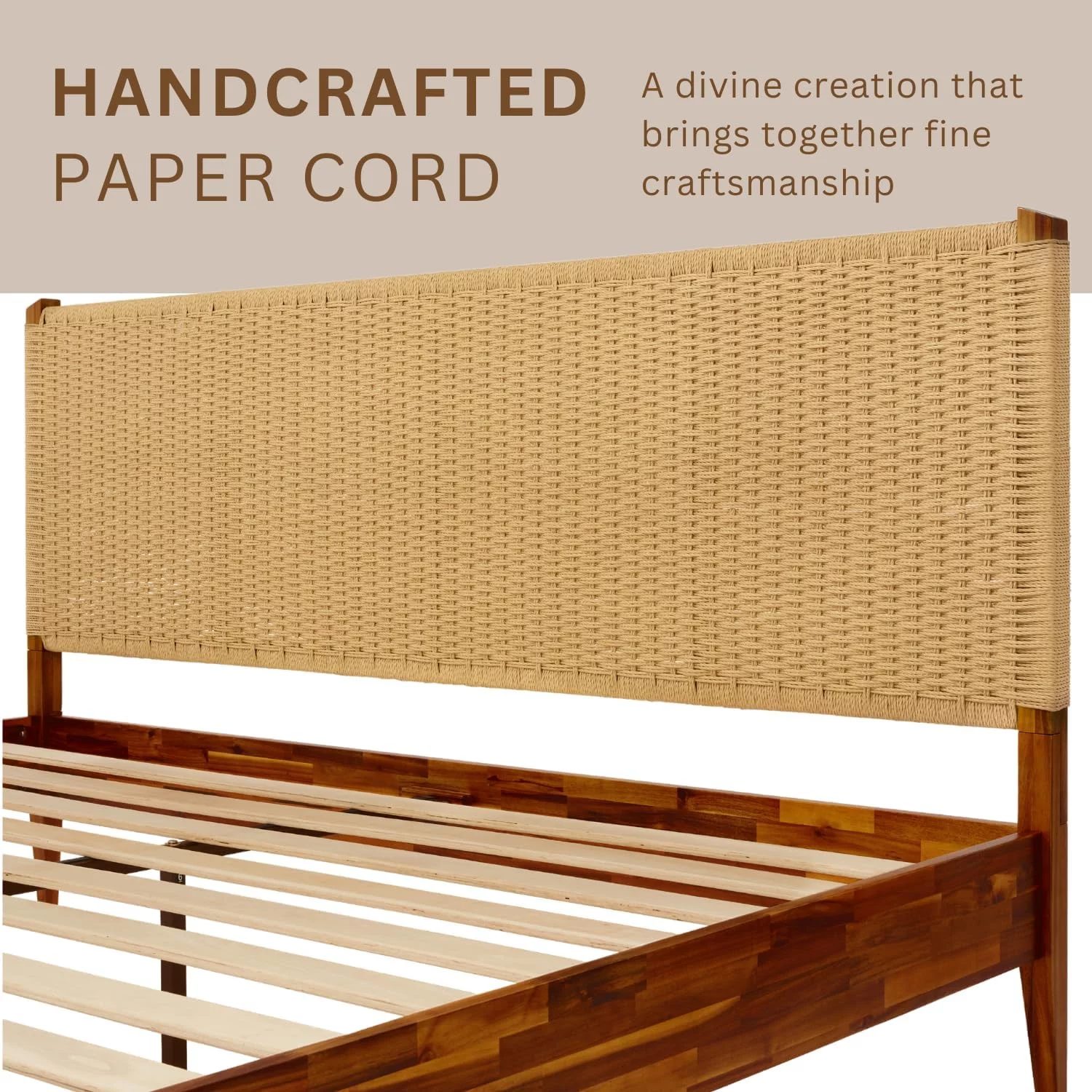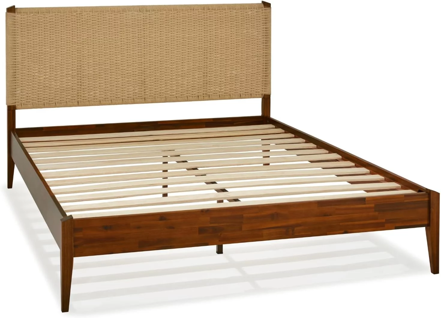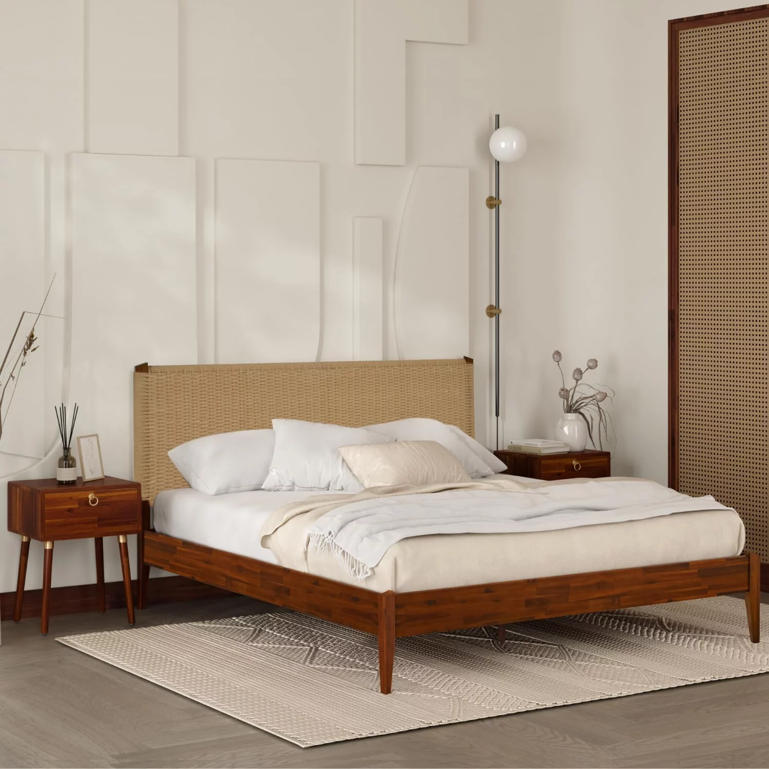 Baxton Studio Gilbert Mid-Century Wood Back Support Rattan Headboard, King, Ash Walnut