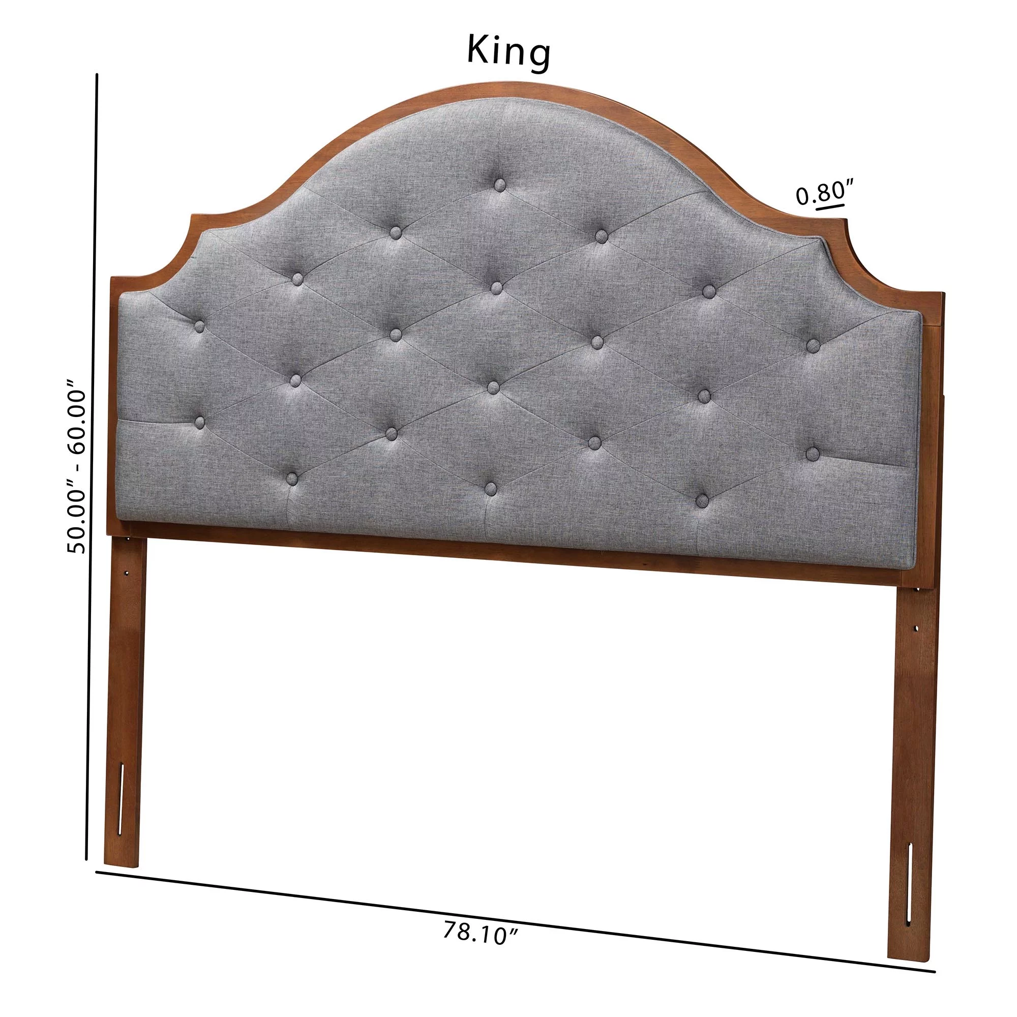 Baxton Studio Premala Classic and Traditional Grey Fabric and Walnut Brown Finished Wood King Size Headboard