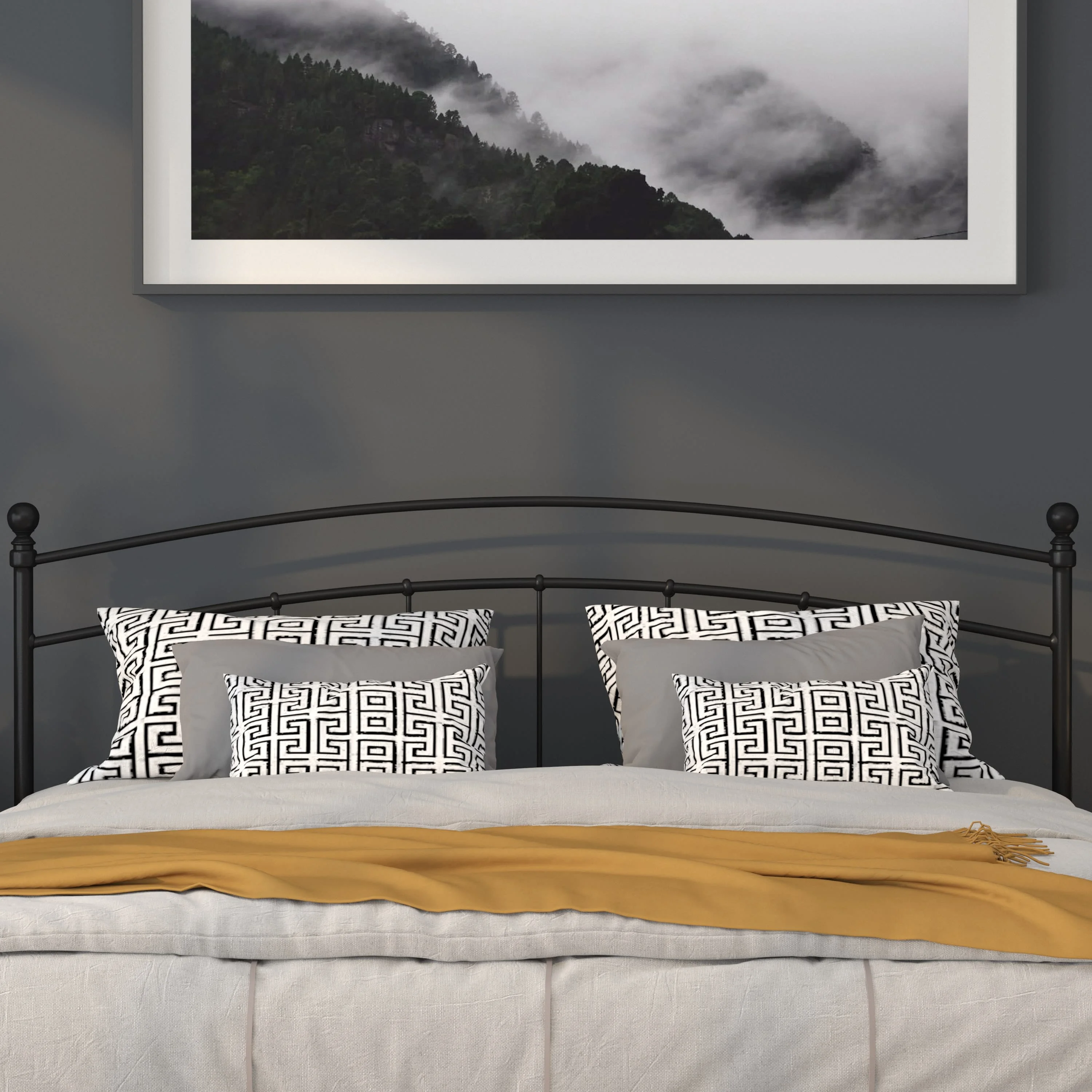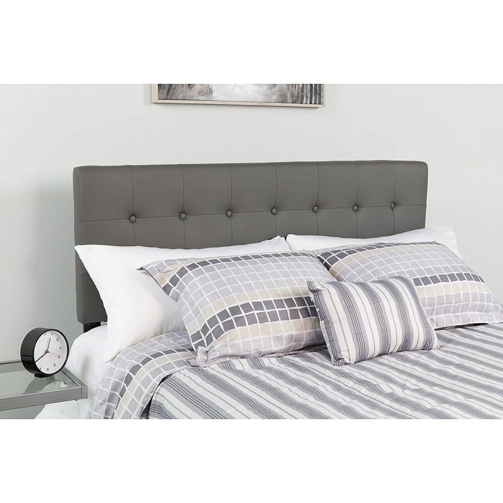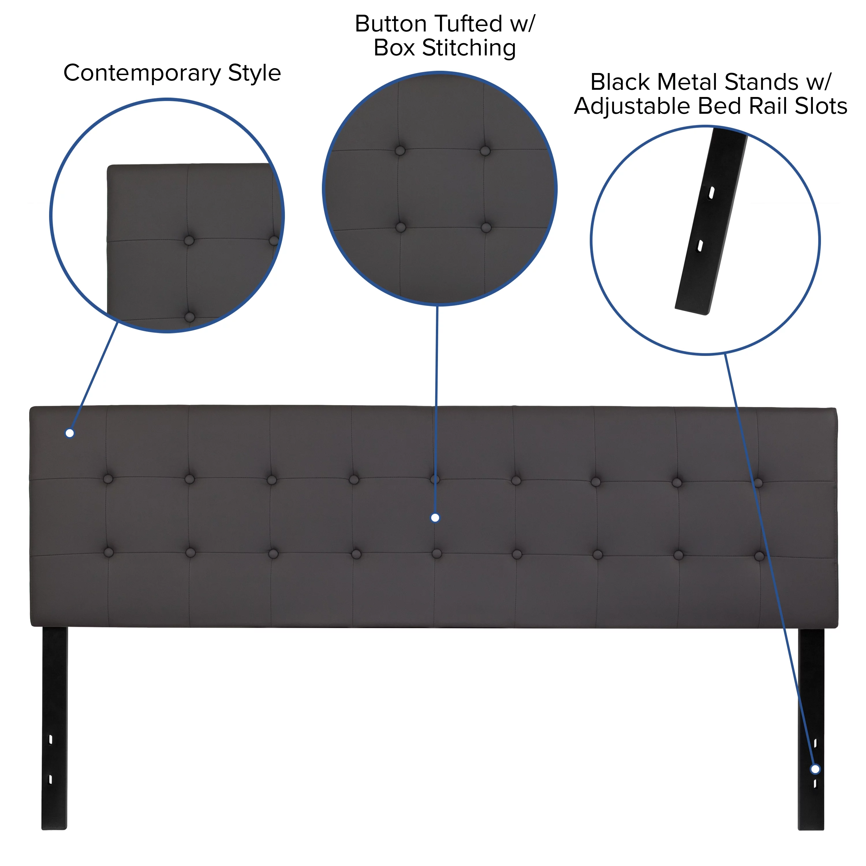 EMMA + OLIVER Contemporary Metal Tufted Upholstered Headboard, King, Gray
