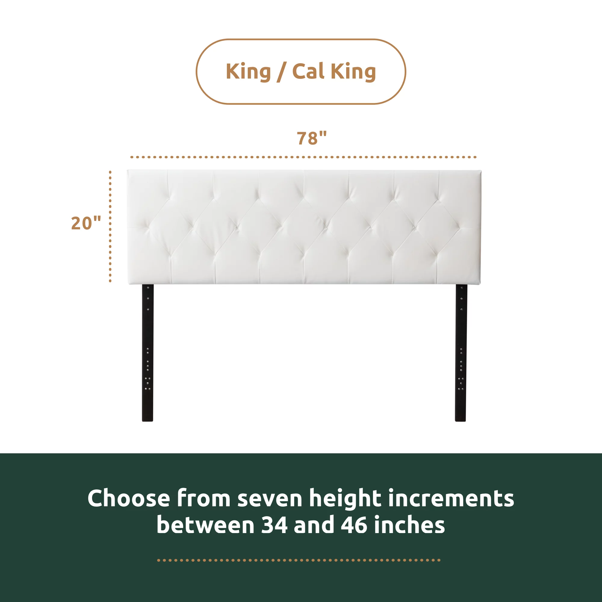 Rest Haven Harrington Faux Leather Upholstered Headboard, California King, White