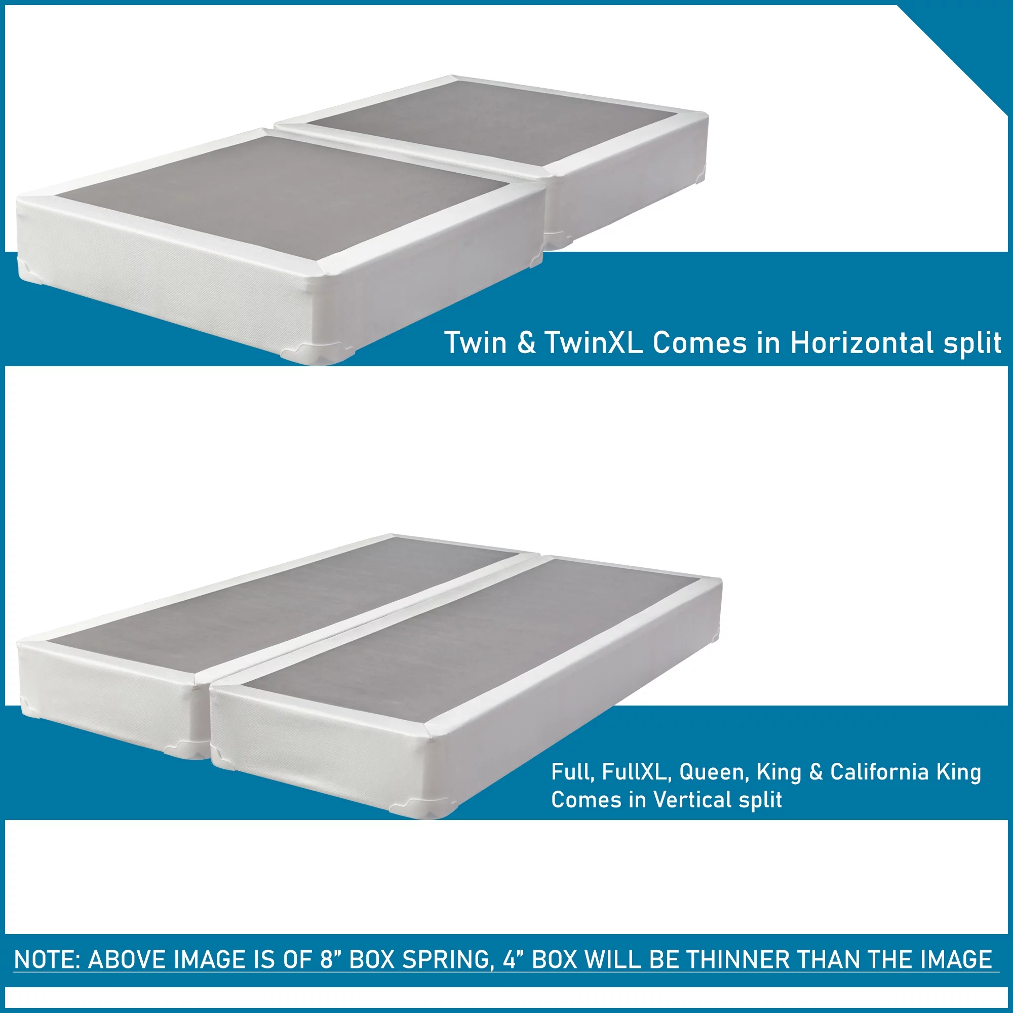 Continental Sleep, 4" Split Sturdy Fully Assembled Wood Box Spring for Mattress, Twin, White