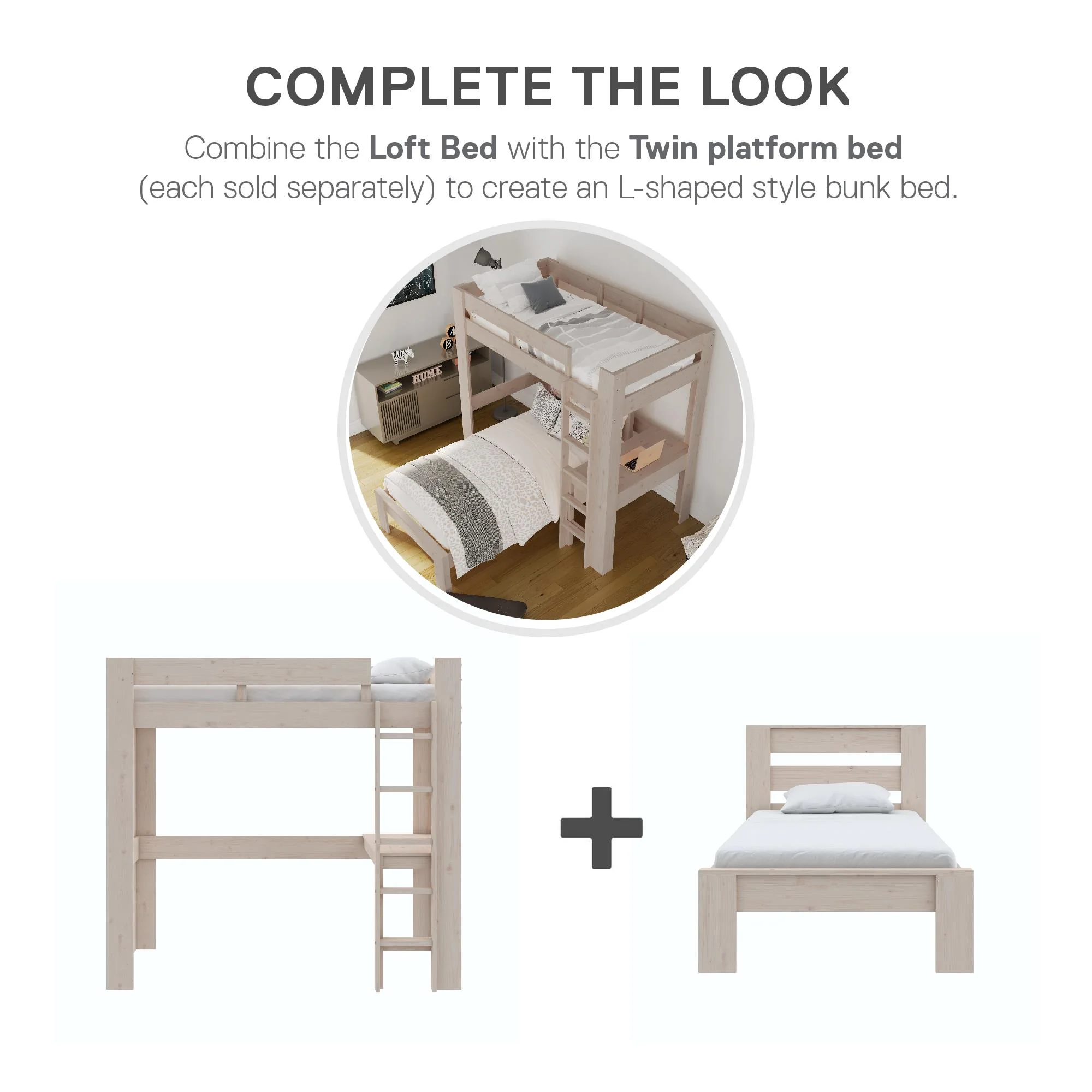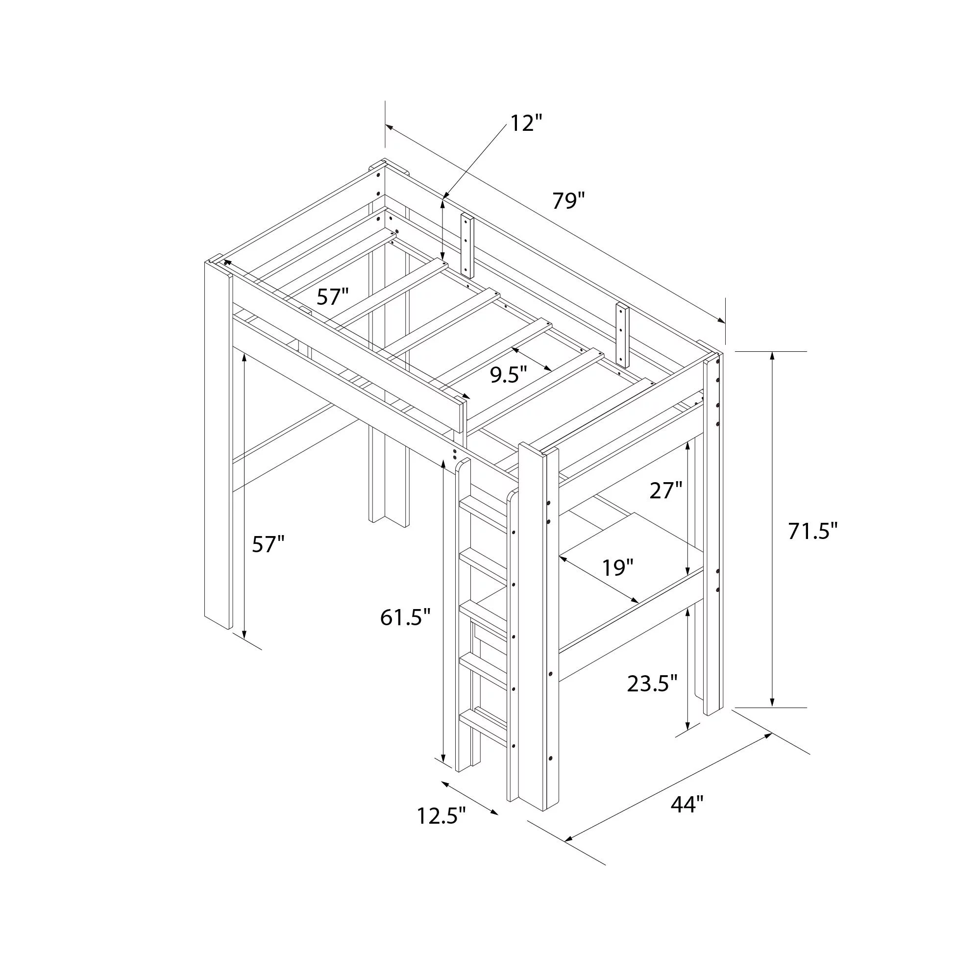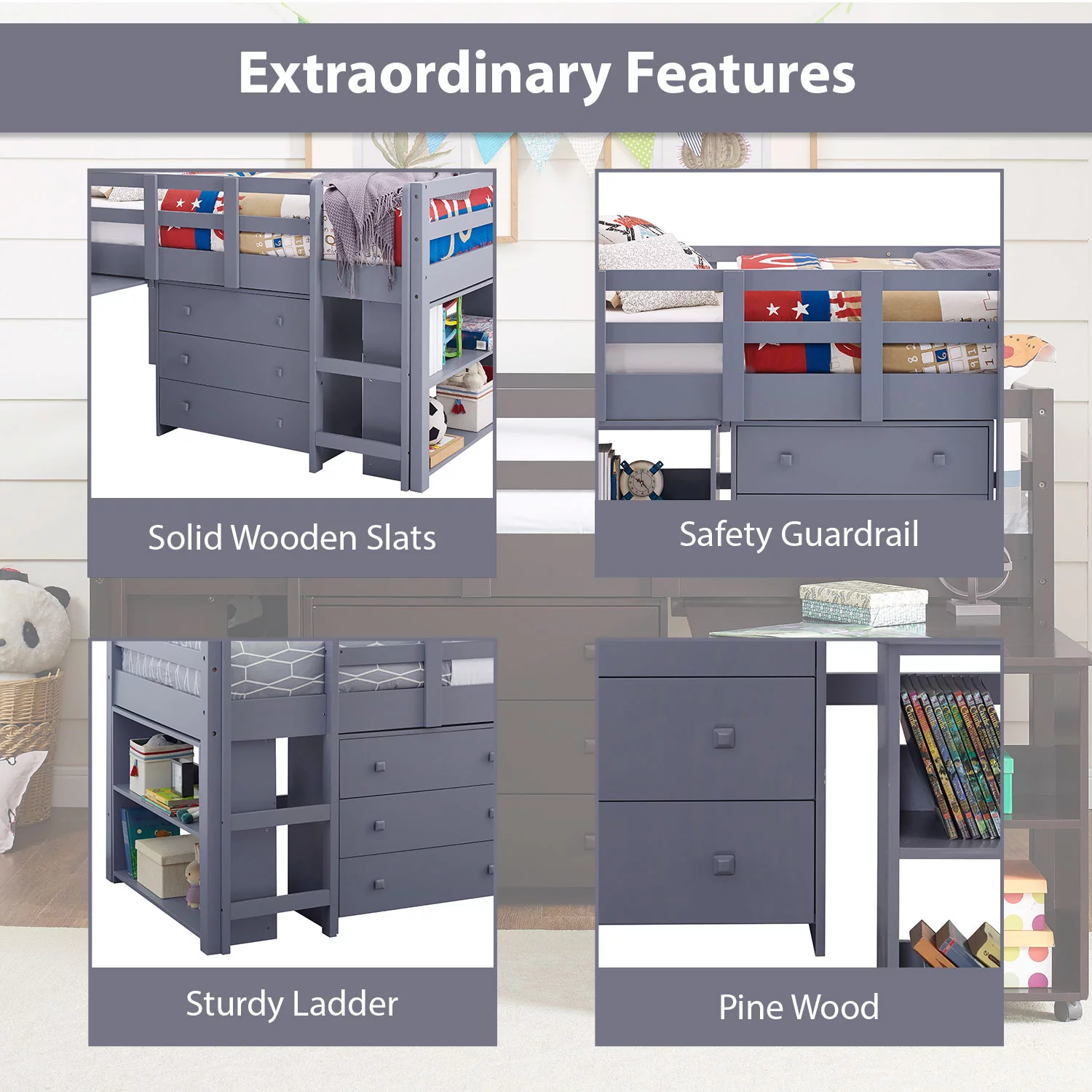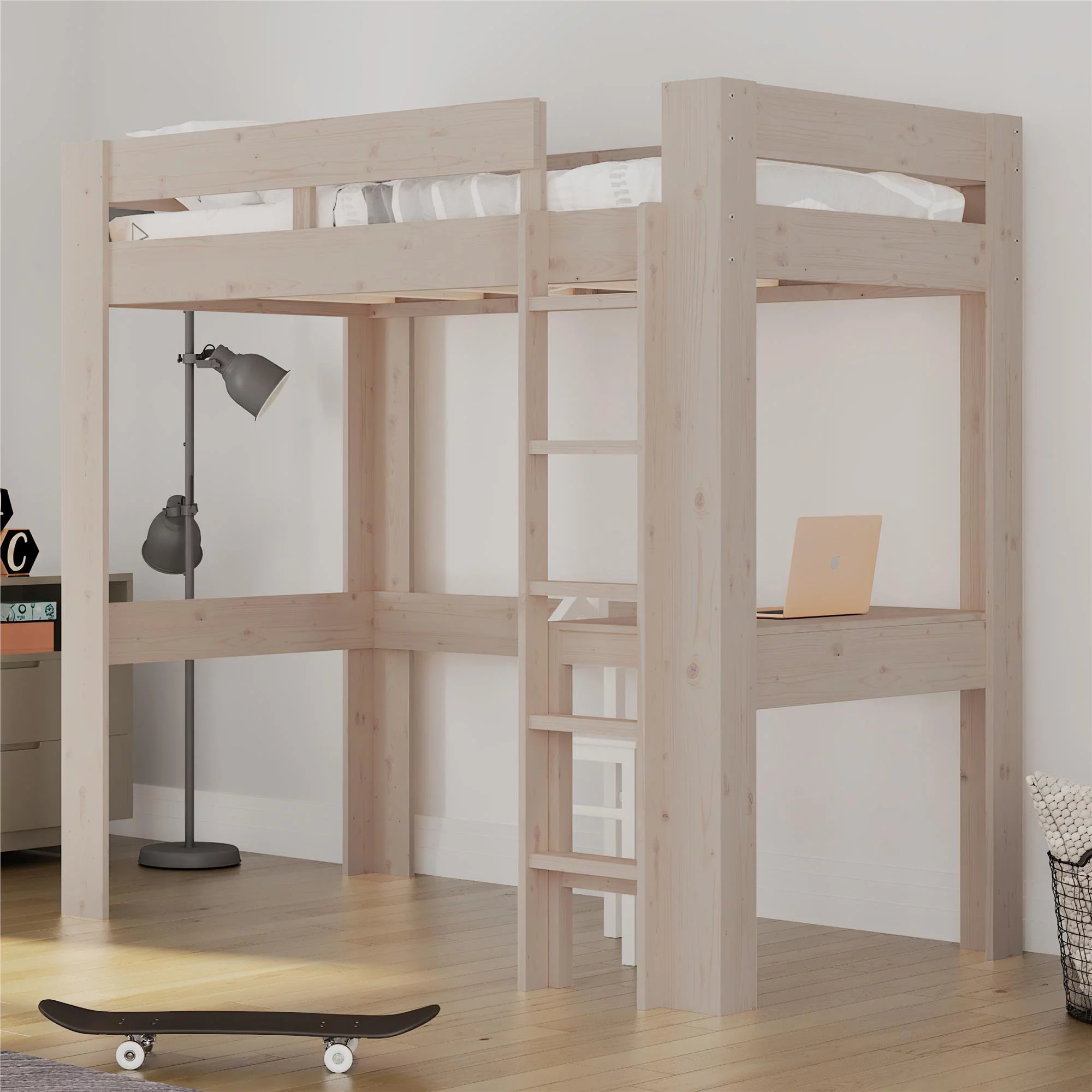 DHP Jaymee Kids Loft Bed with Desk in Solid Wood, Twin, Sandwashed Gray