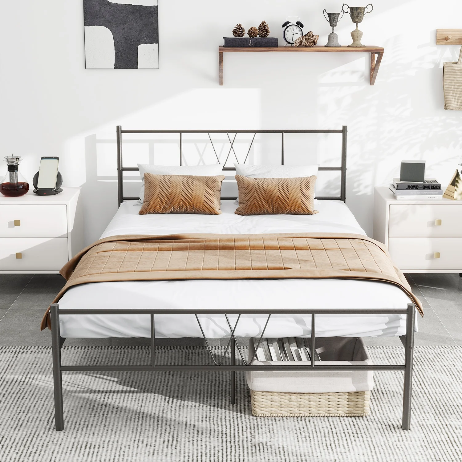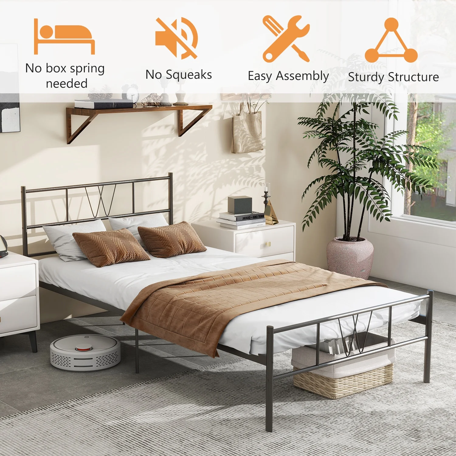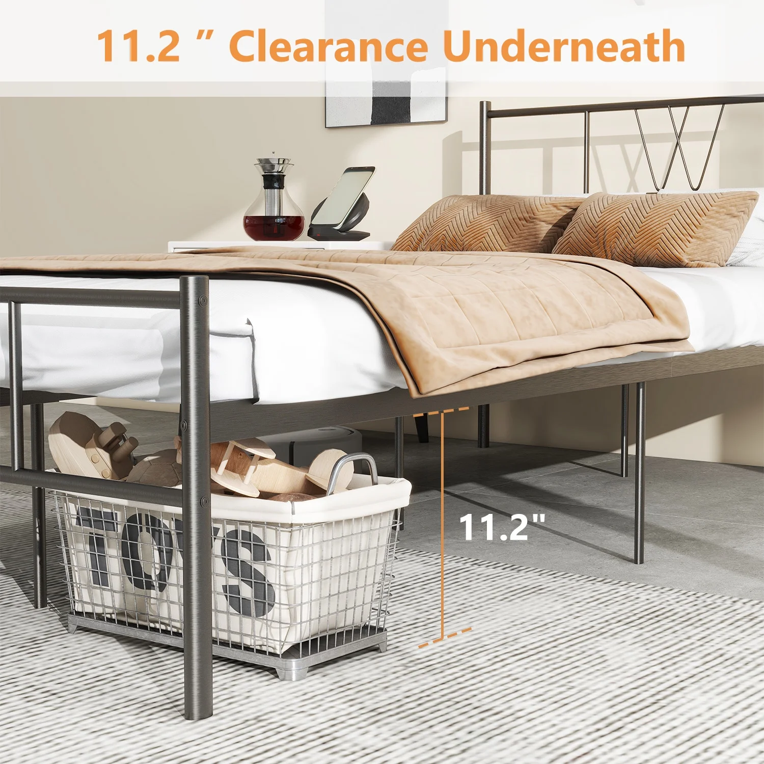 Smiaoer King Size Metal Platform Bed Frame with Headboard and Footboard, No Box Spring Needed